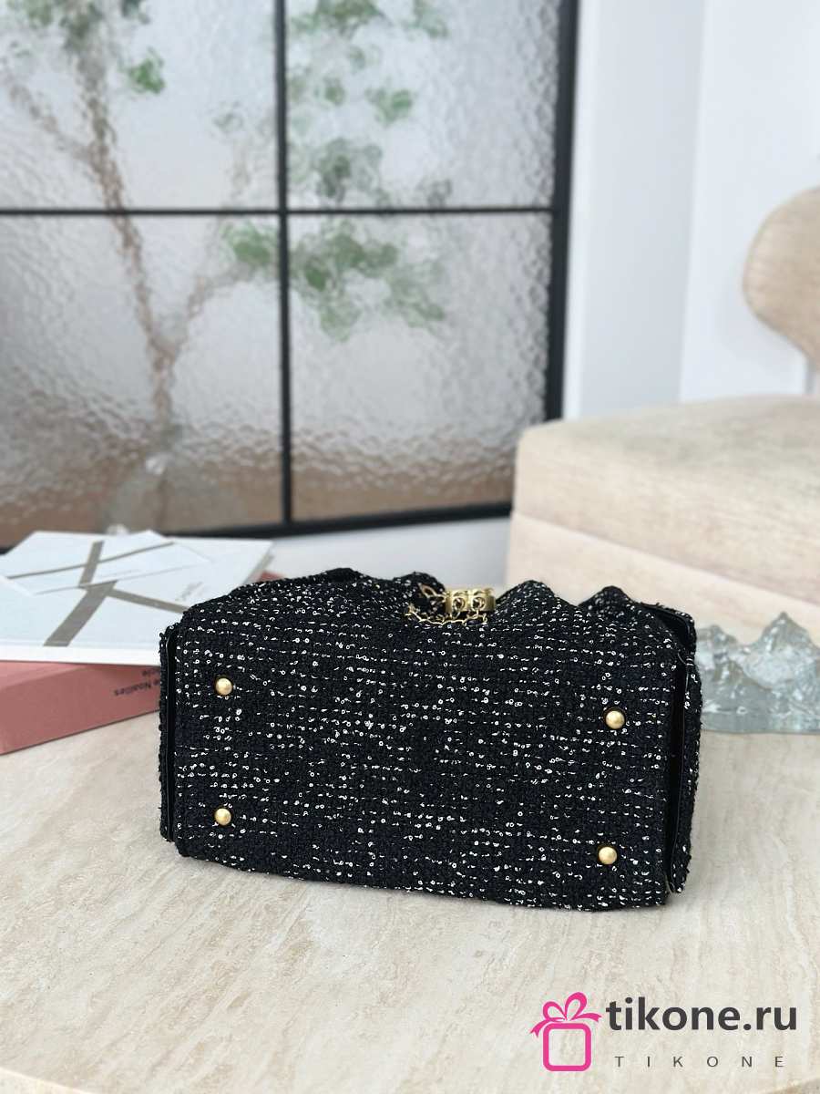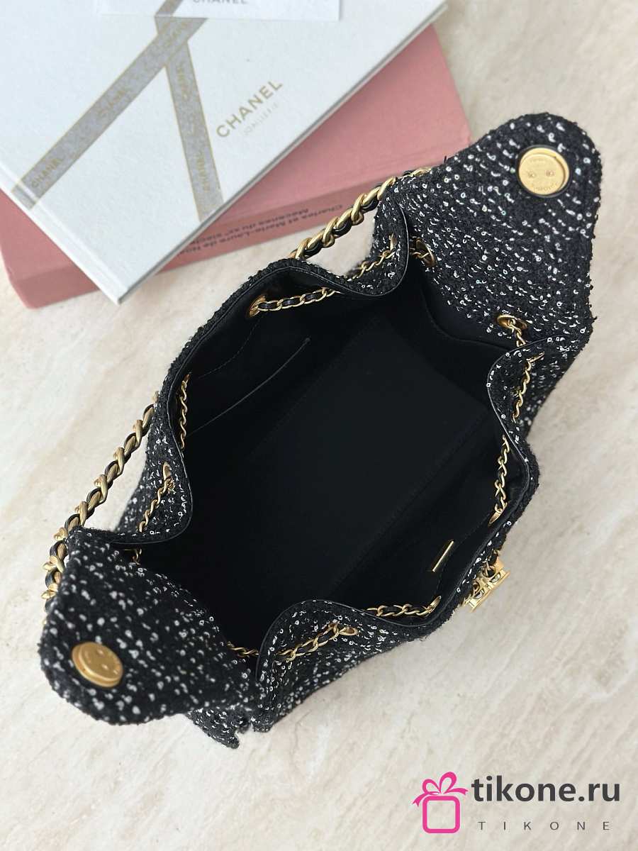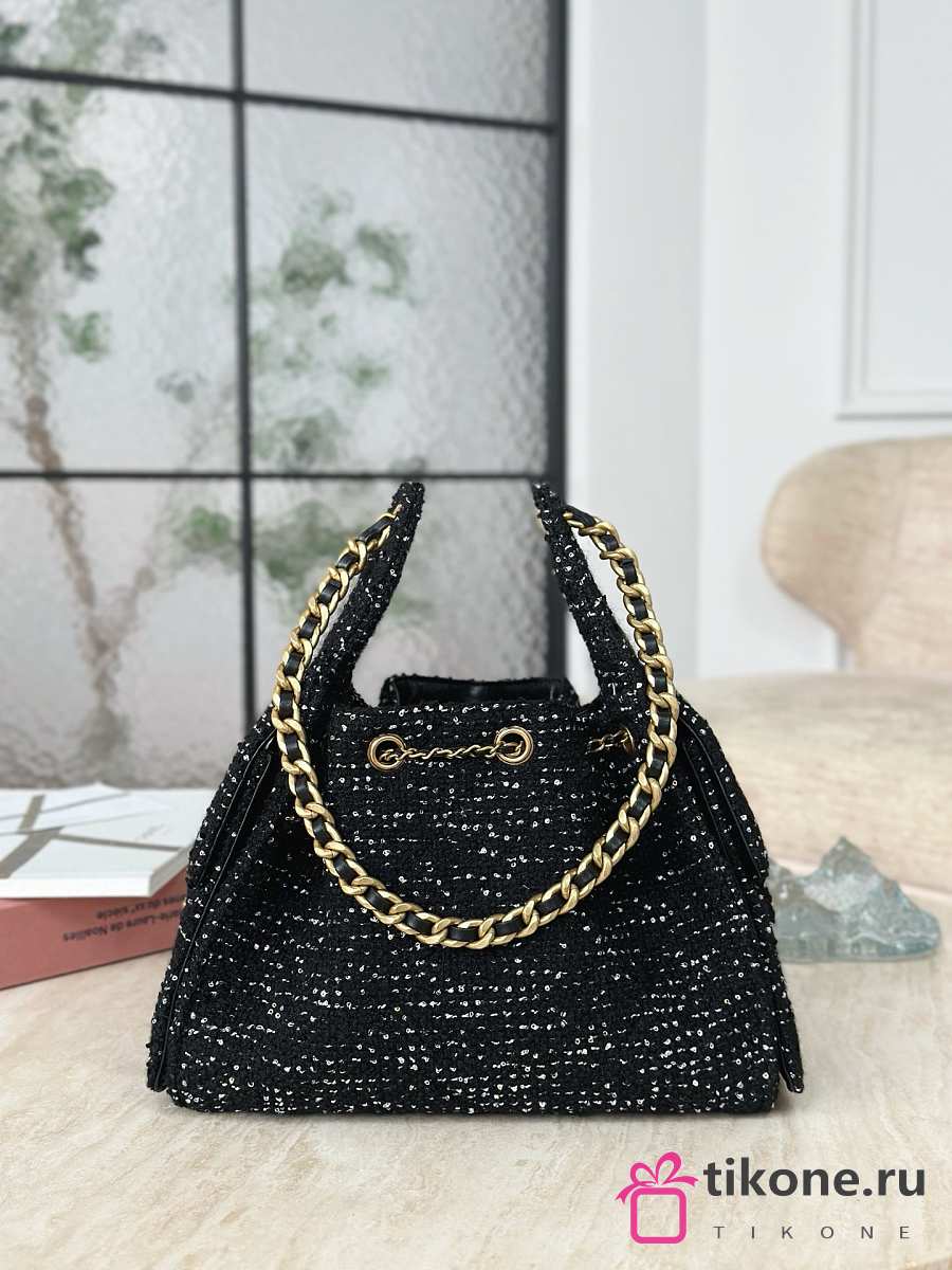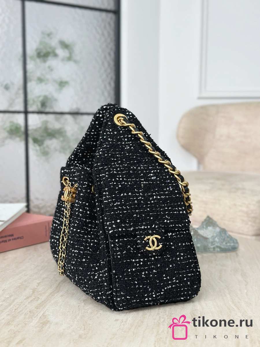 Chanel 25 Handbag Small Tweed Sequins Gold Tone Metal Black - 30x26x14cm