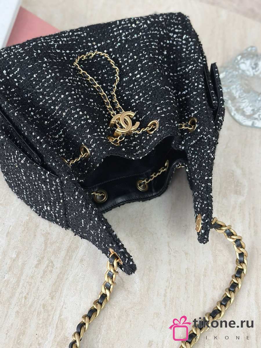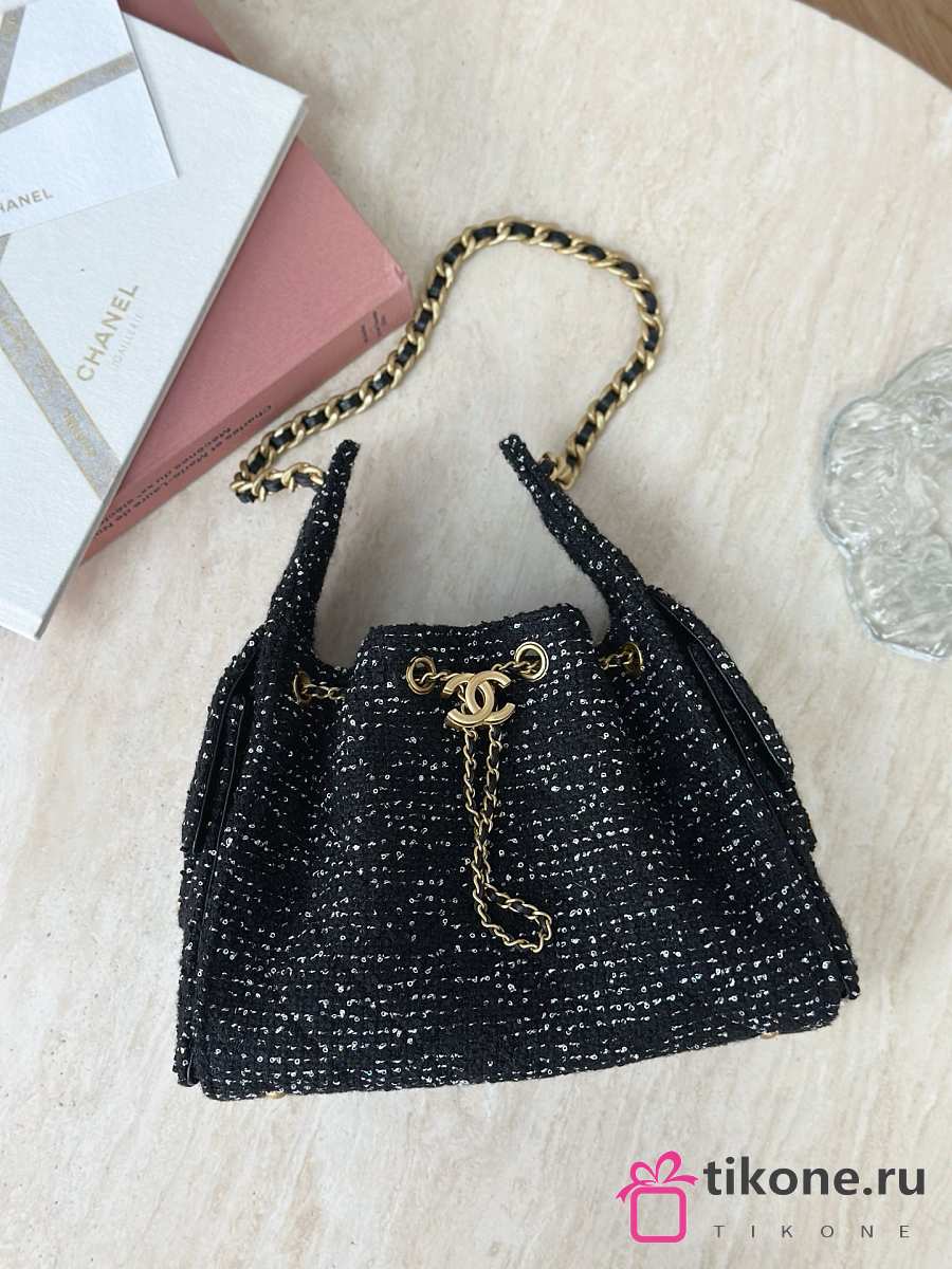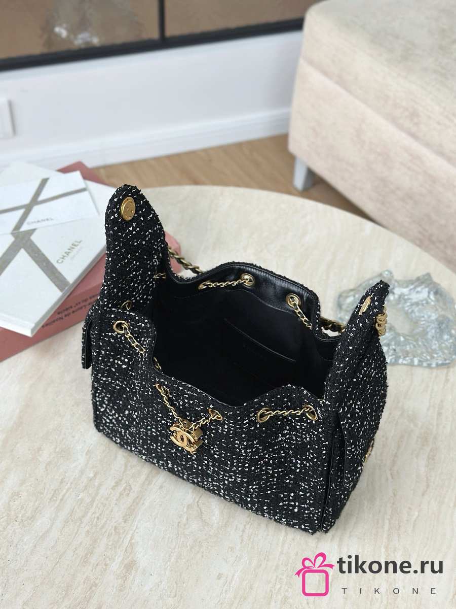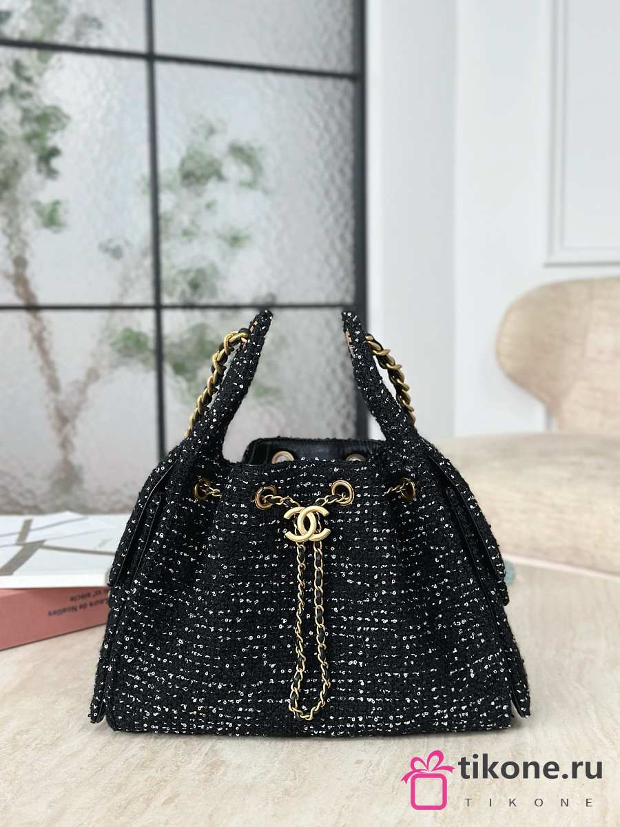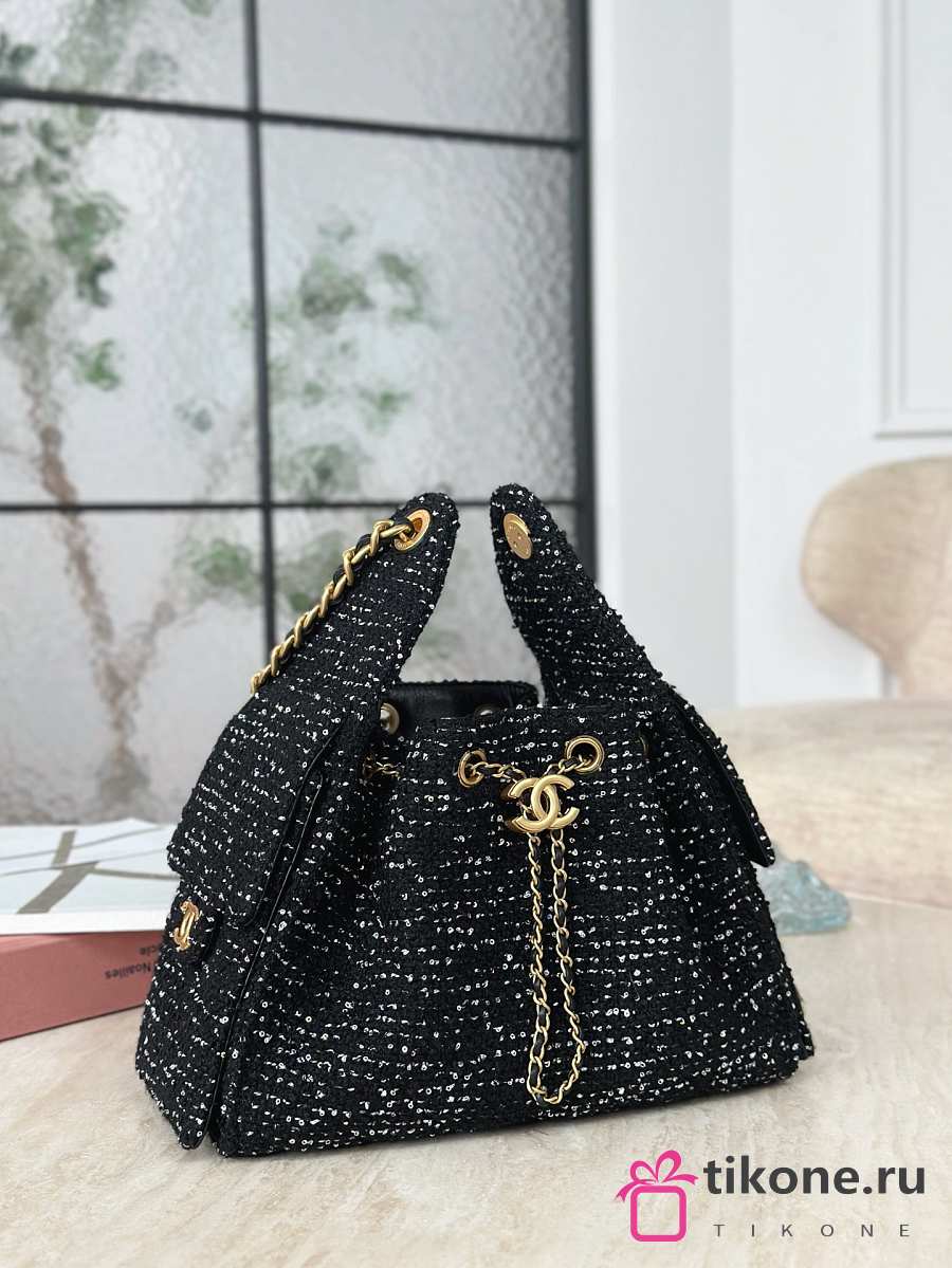Chanel 25 Handbag Small Tweed Sequins Gold Tone Metal Black - 30x26x14cm
