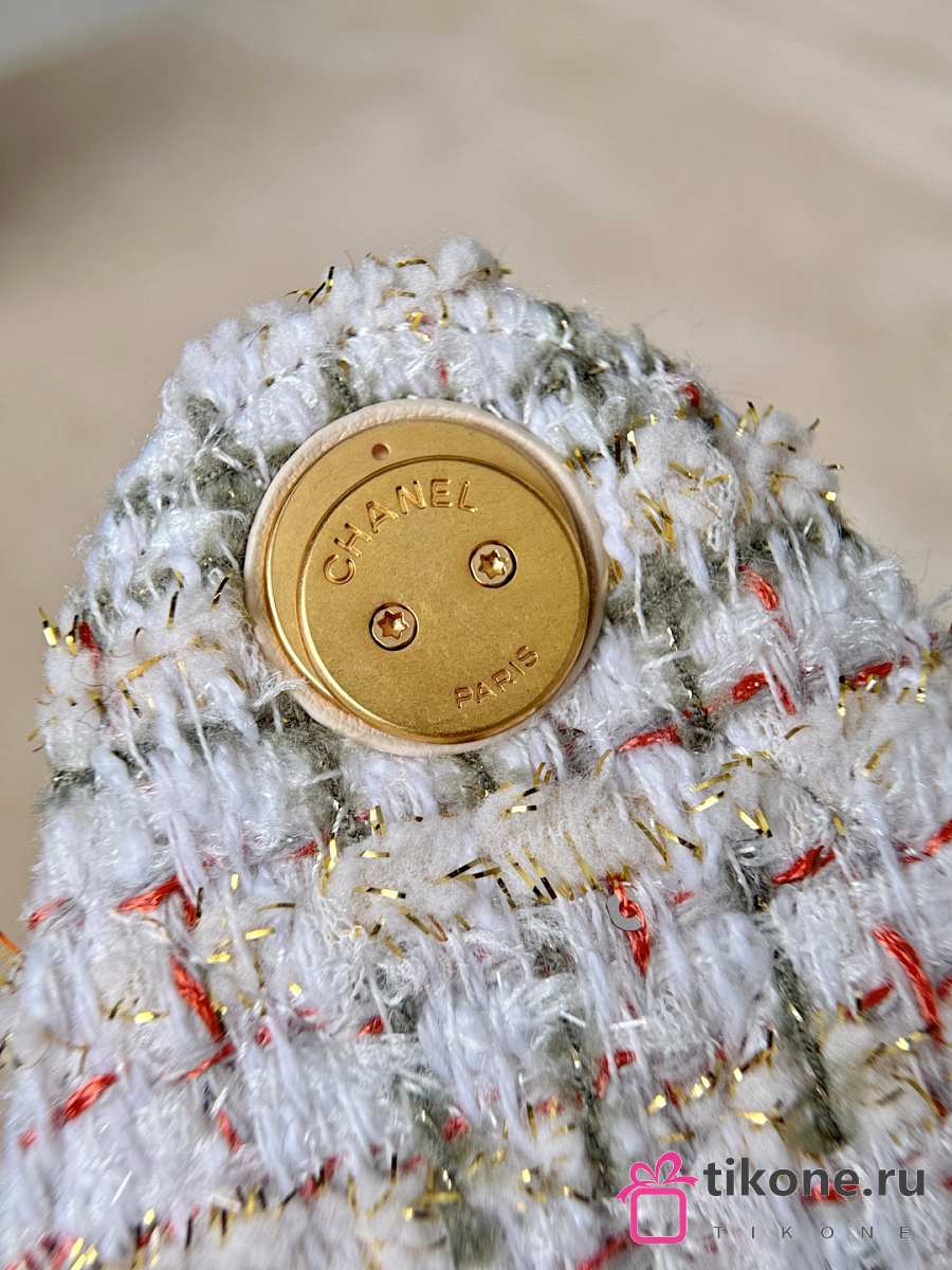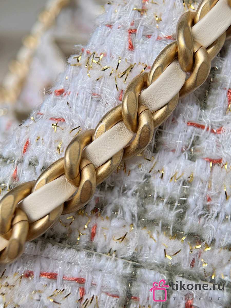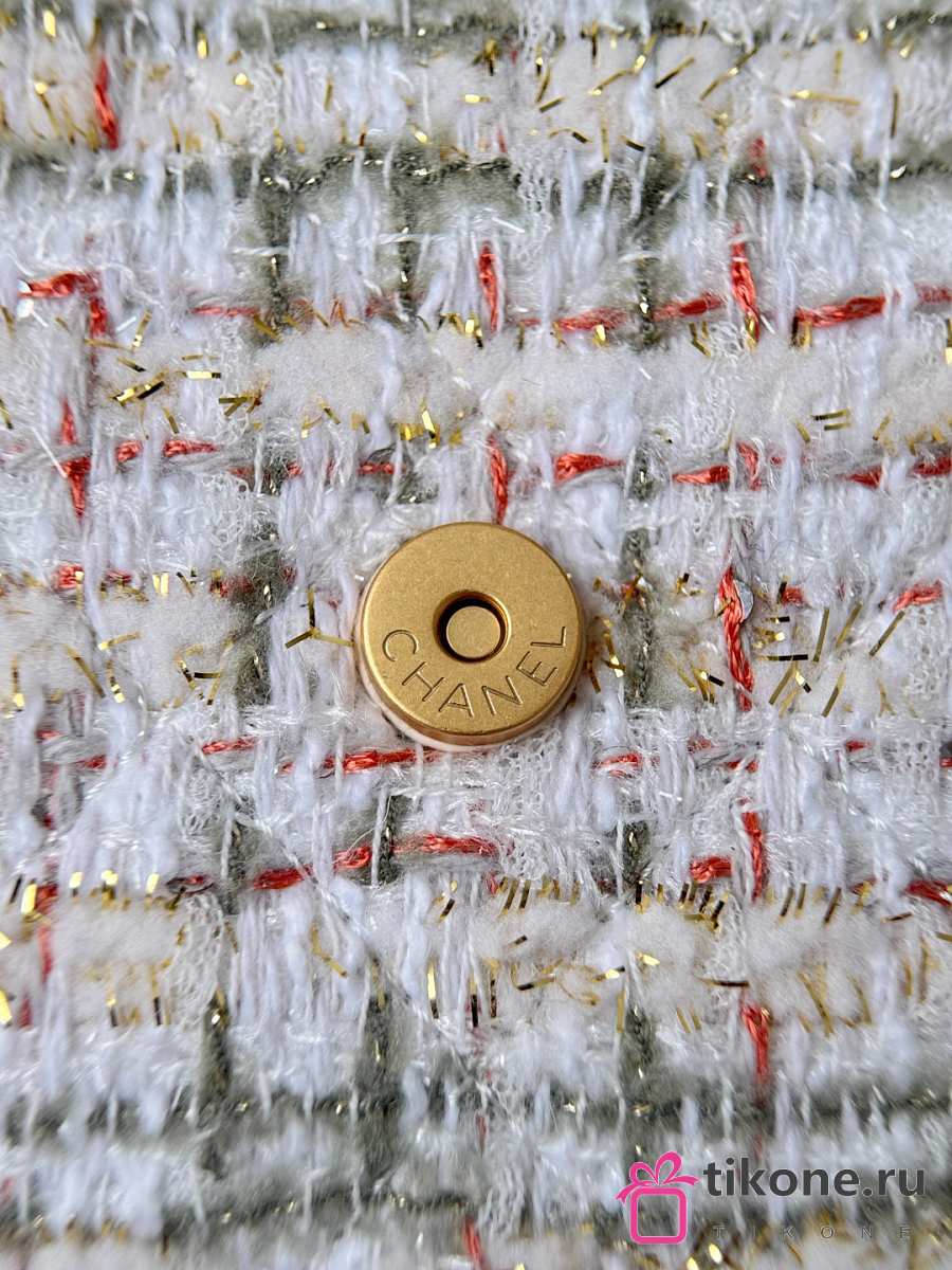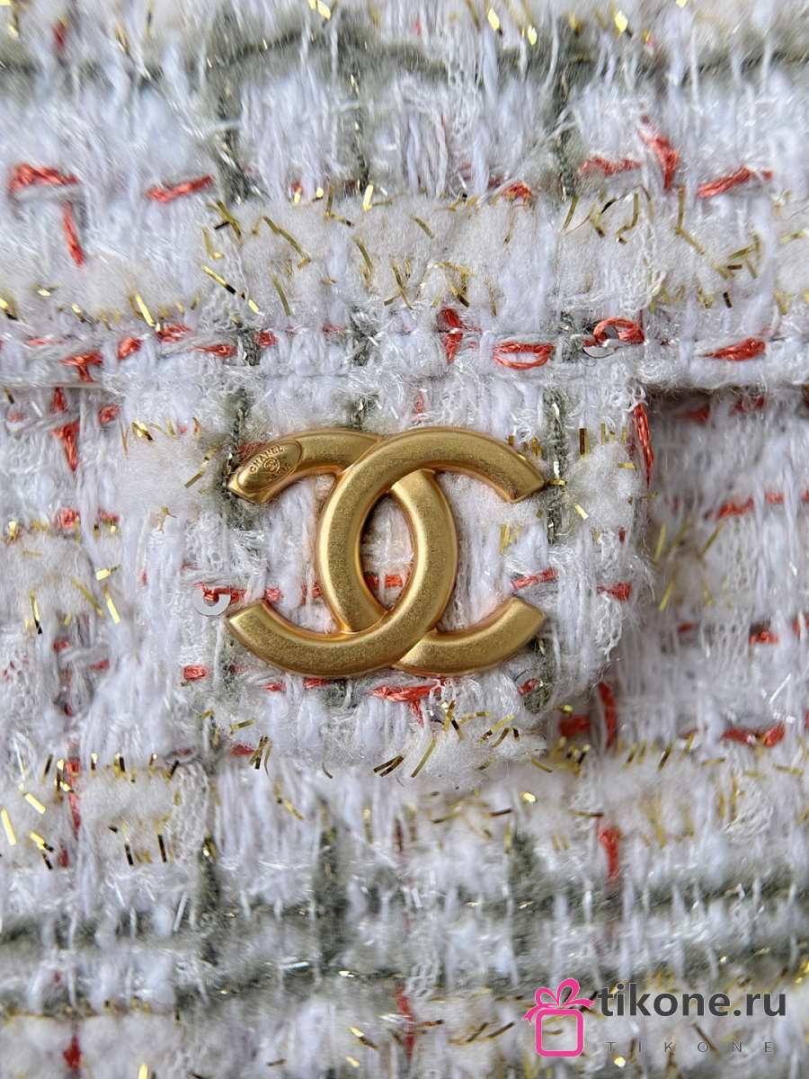 Chanel 25 Handbag Small Wool Tweed & Gold Tone Metal Ecru Khaki Gold & Red - 30x26x14cm