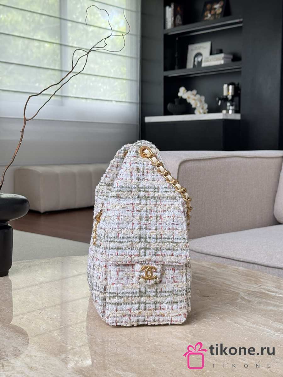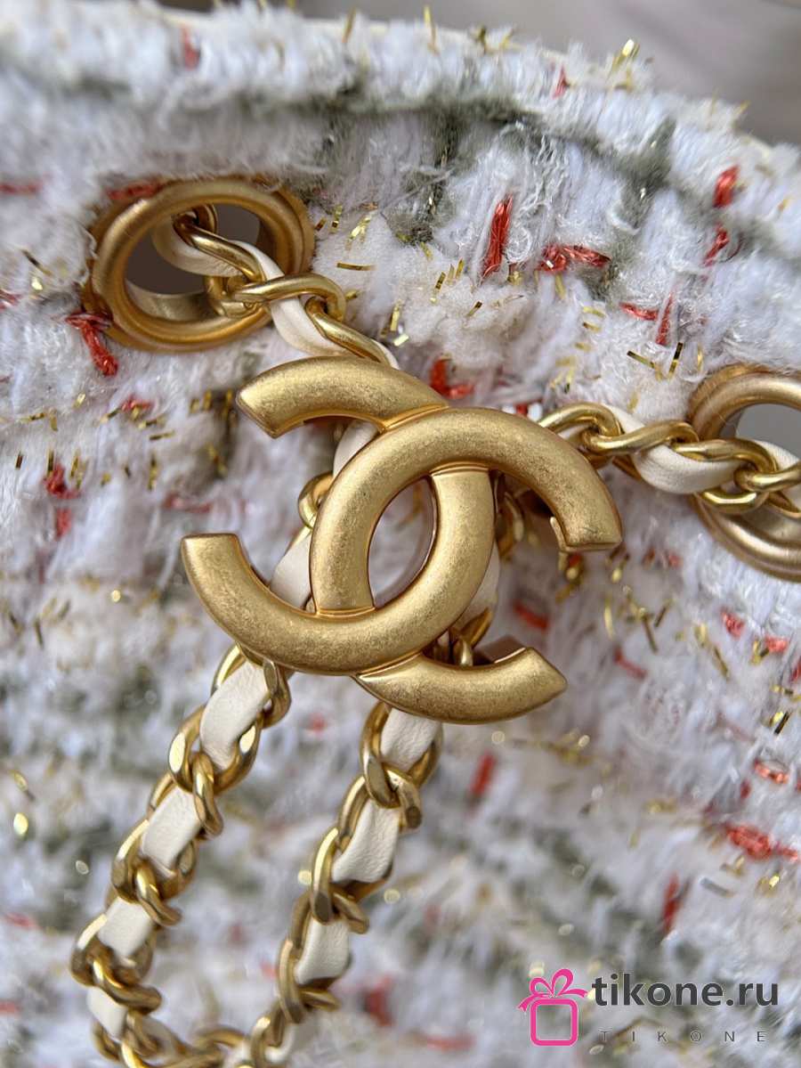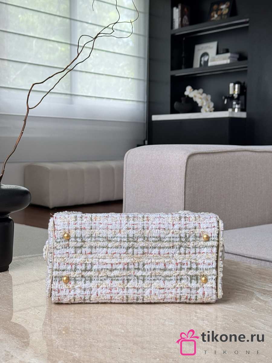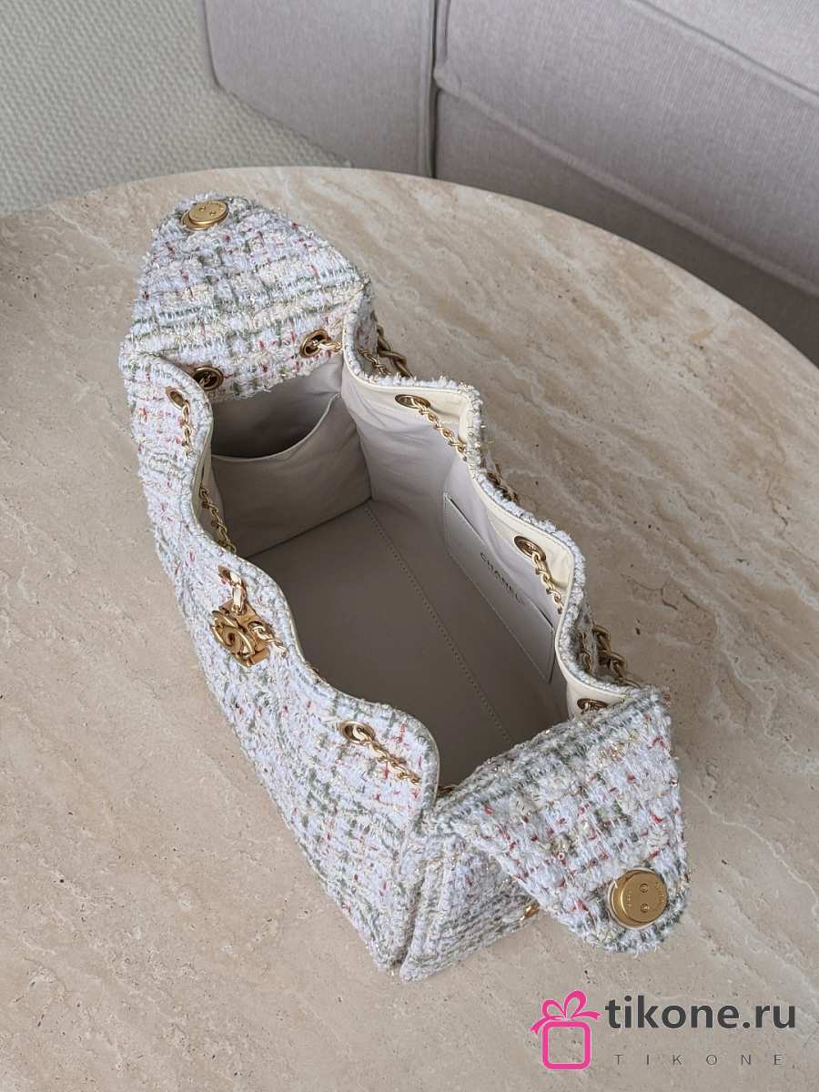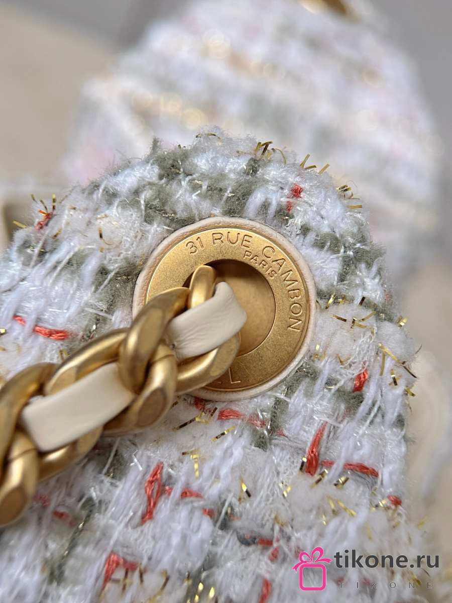 Chanel 25 Handbag Small Wool Tweed & Gold Tone Metal Ecru Khaki Gold & Red - 30x26x14cm