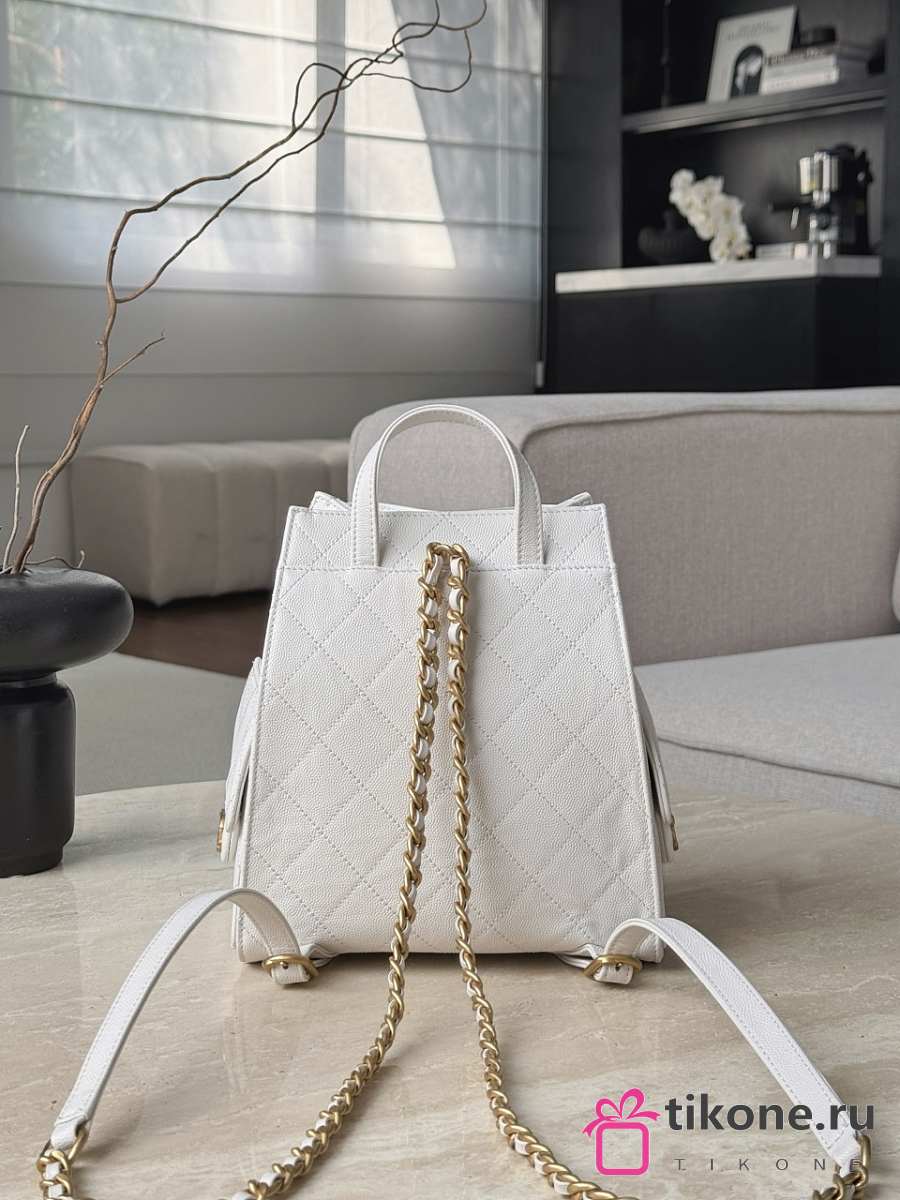 Chanel 25 Medium Backpack Grained Calfskin & Gold Tone Metal White - 23x23x14cm