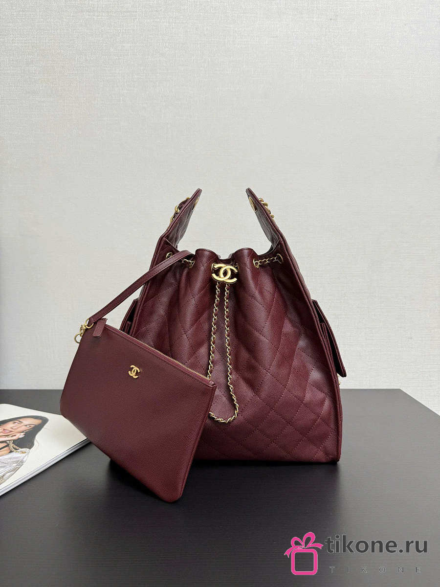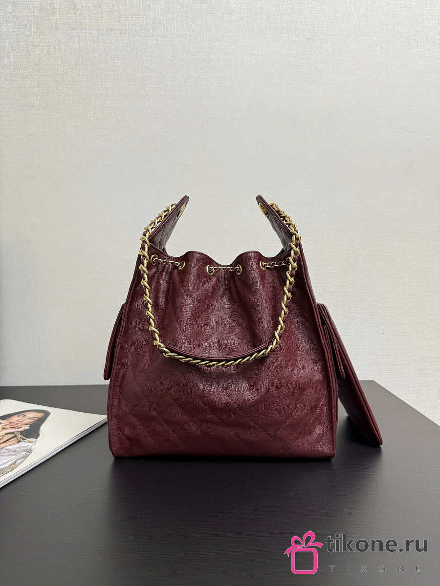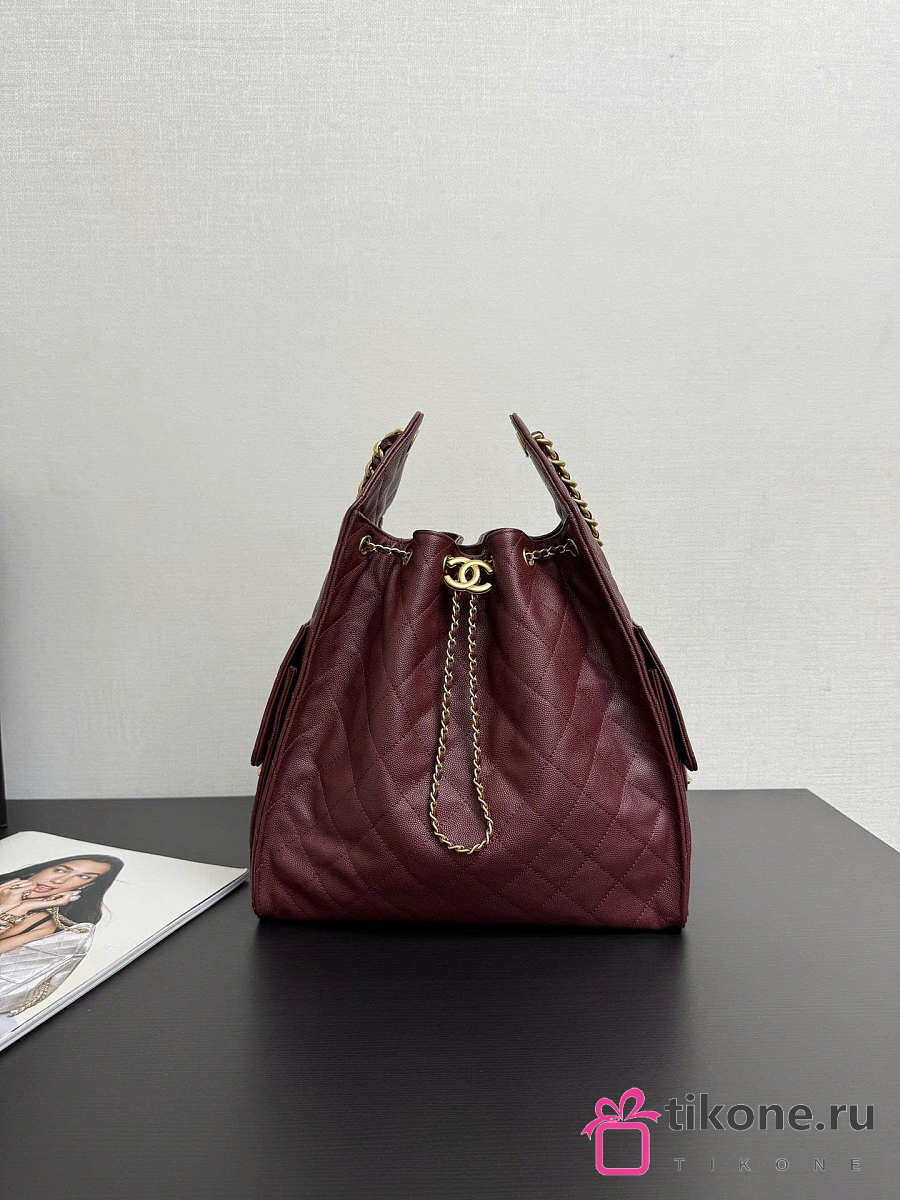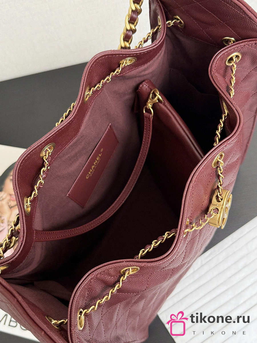 Chanel 25 Medium Handbag Grained Calfskin Gold Tone Metal Burgundy - 40x30x15cm