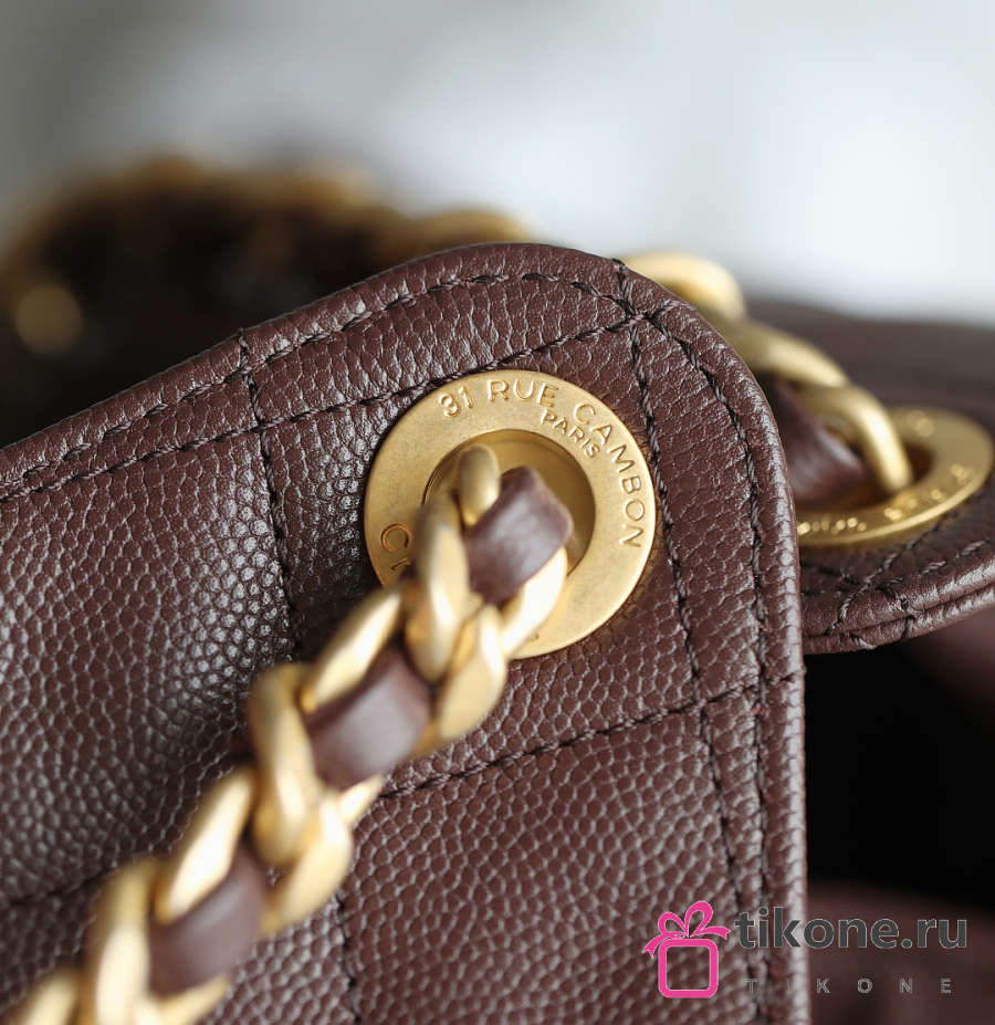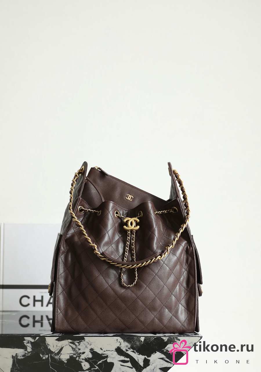 Chanel 25 Medium Handbag Grained Calfskin Gold Tone Metal Dark Brown - 40x30x15cm