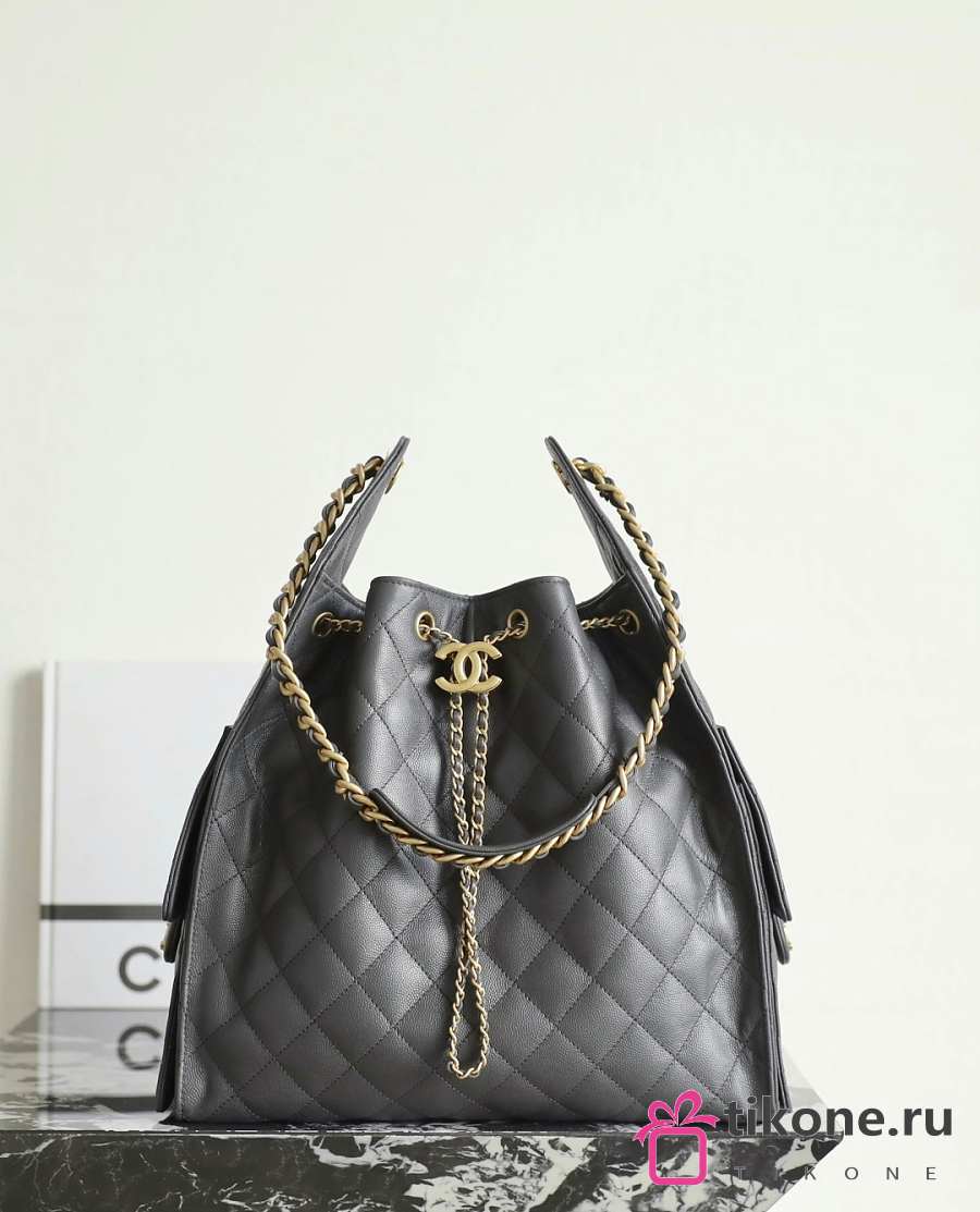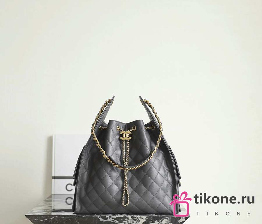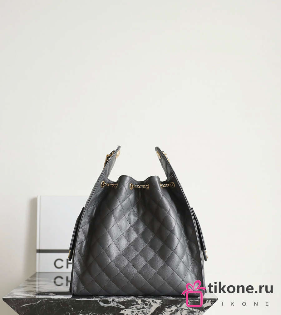 Chanel 25 Medium Handbag Grained Calfskin Gold Tone Metal Dark Gray - 40x30x15cm