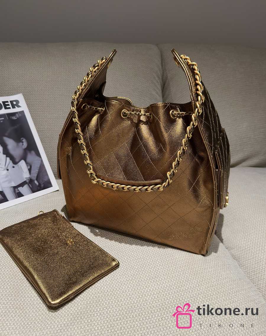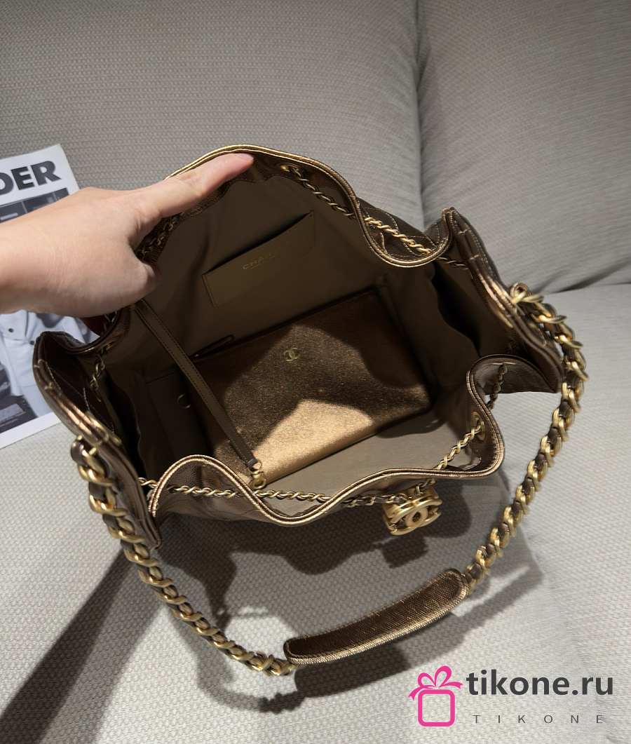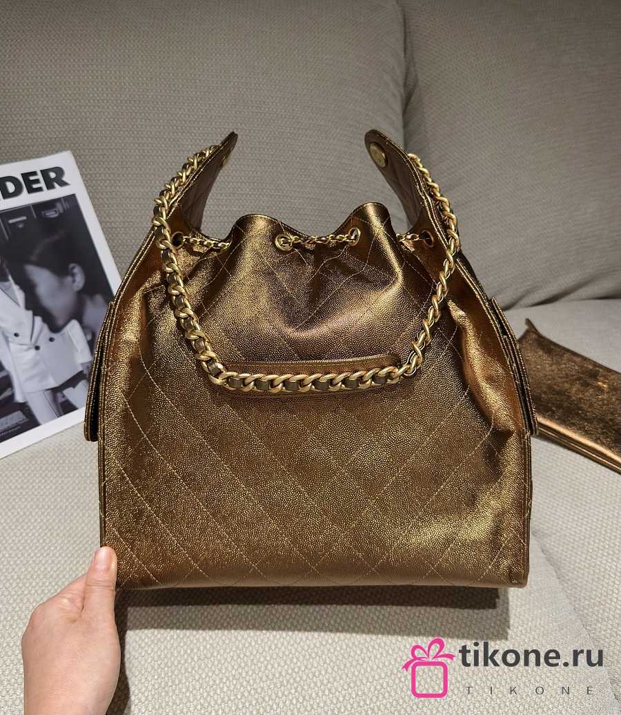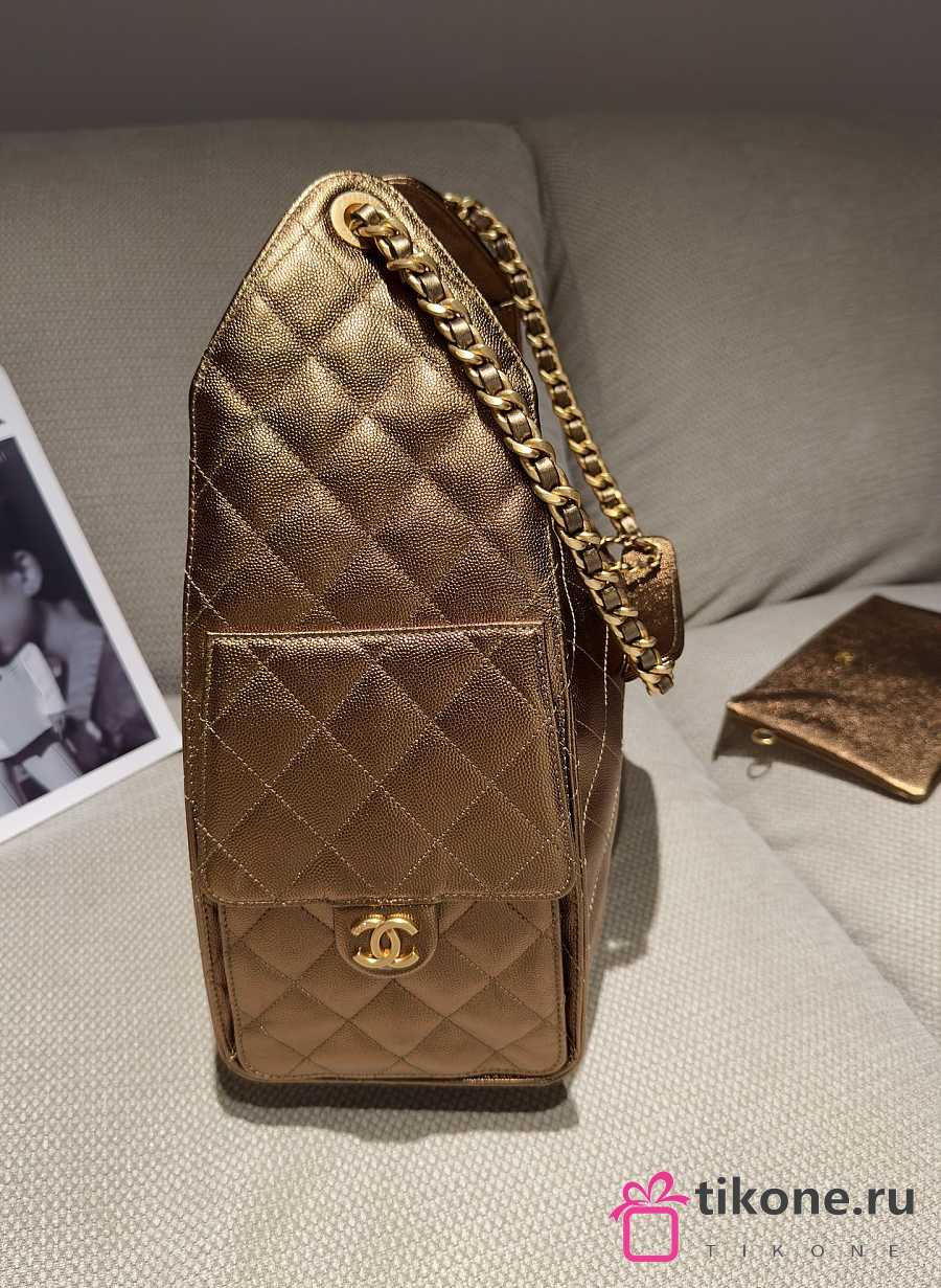 Chanel 25 Medium Handbag Metallic Grained Calfskin & Gold Metal Bronze - 40x30x15cm