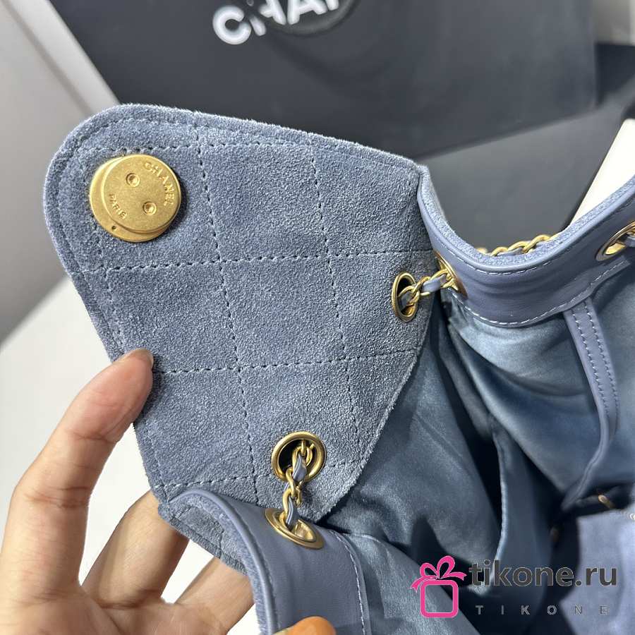 Chanel 22 Blue Grey Lambskin Leather Handbag 20cm