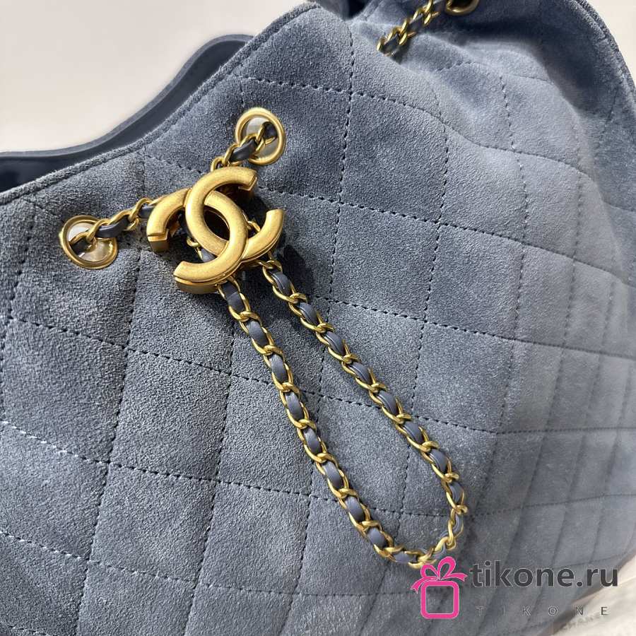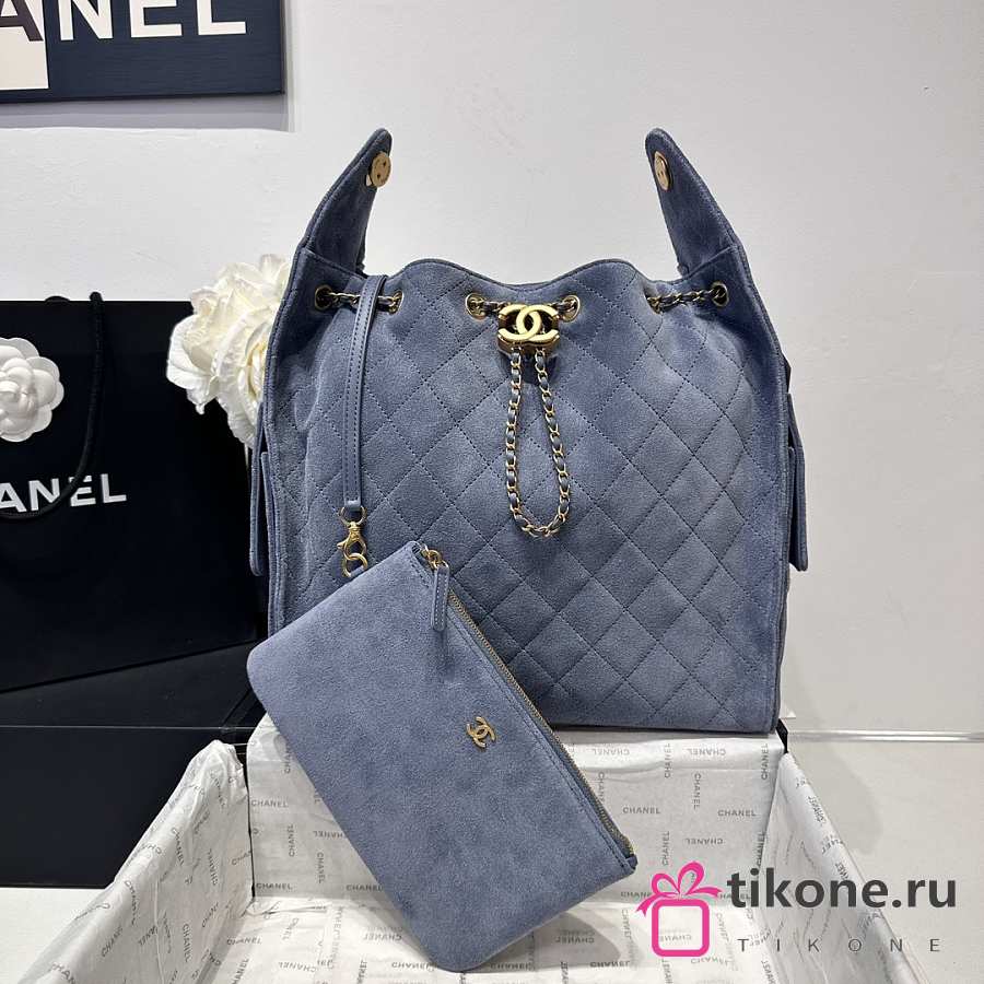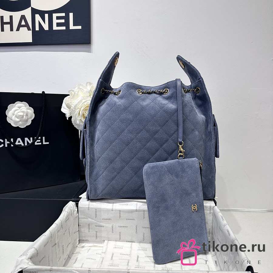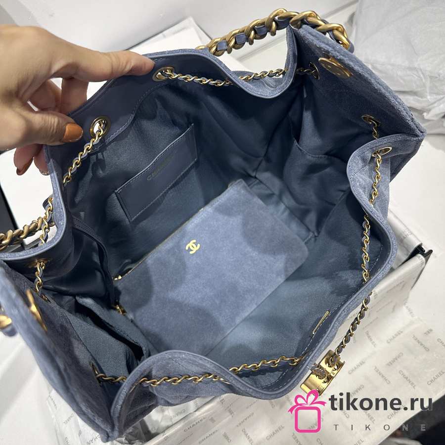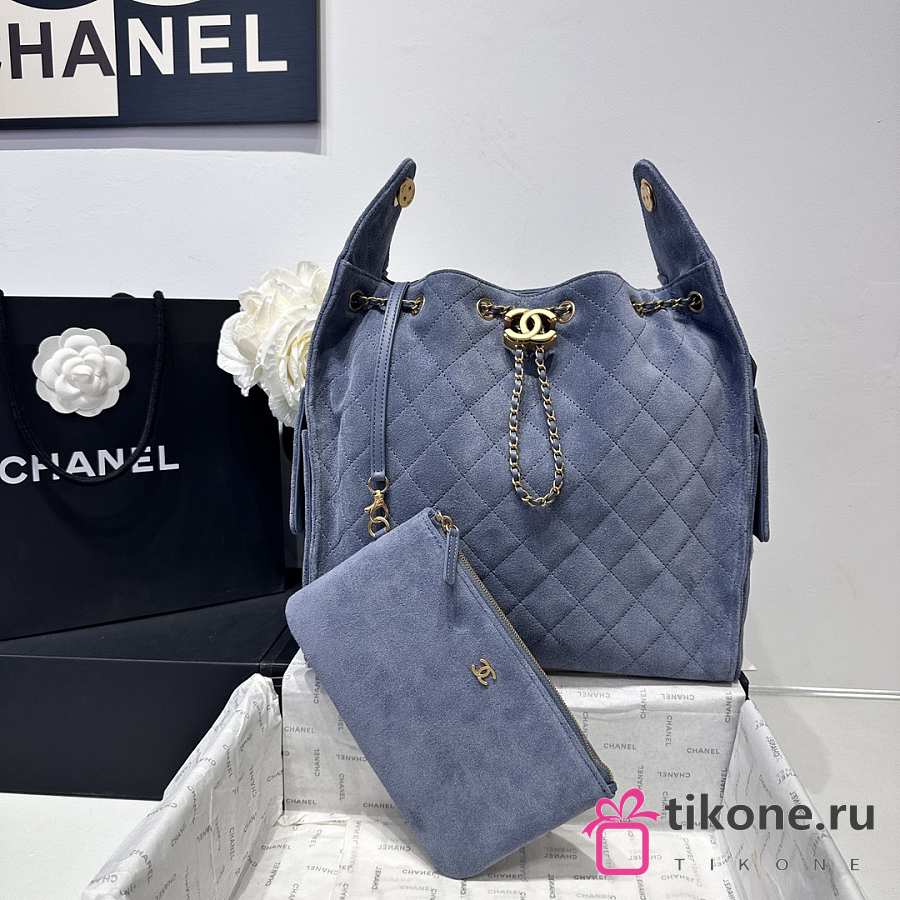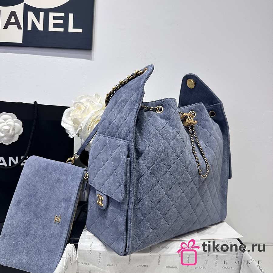 Chanel 25 Medium Handbag Suede Gold Tone Metal Blue - 40x30x15cm