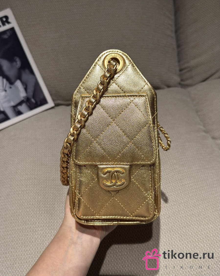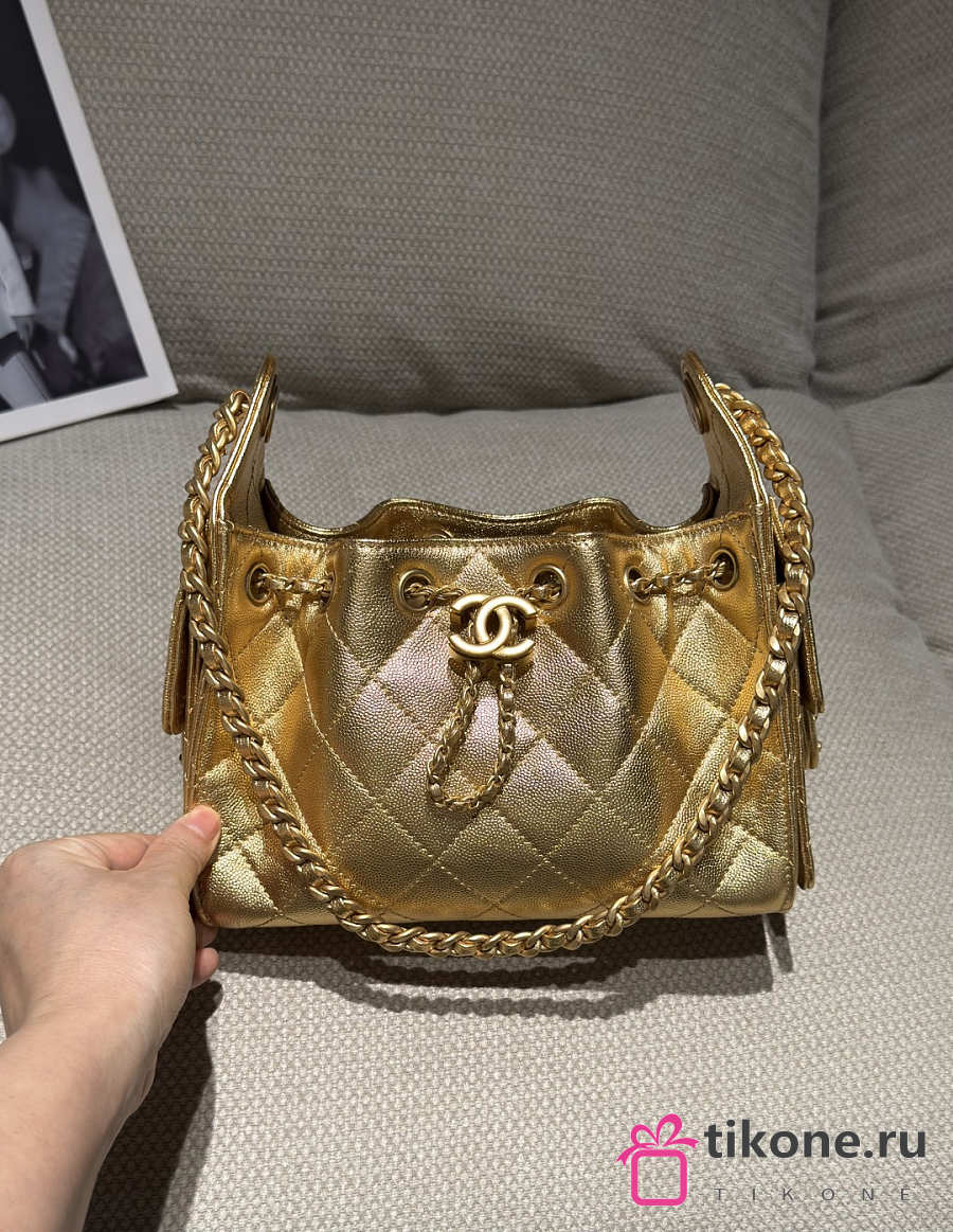 Chanel 25 Mini Handbag Metallic Grained Calfskin & Gold Metal Gold - 22x20x12.5cm