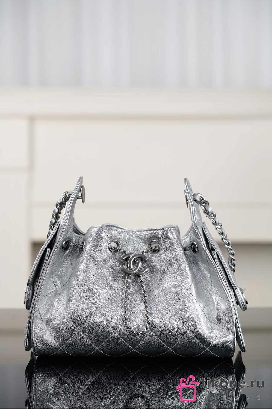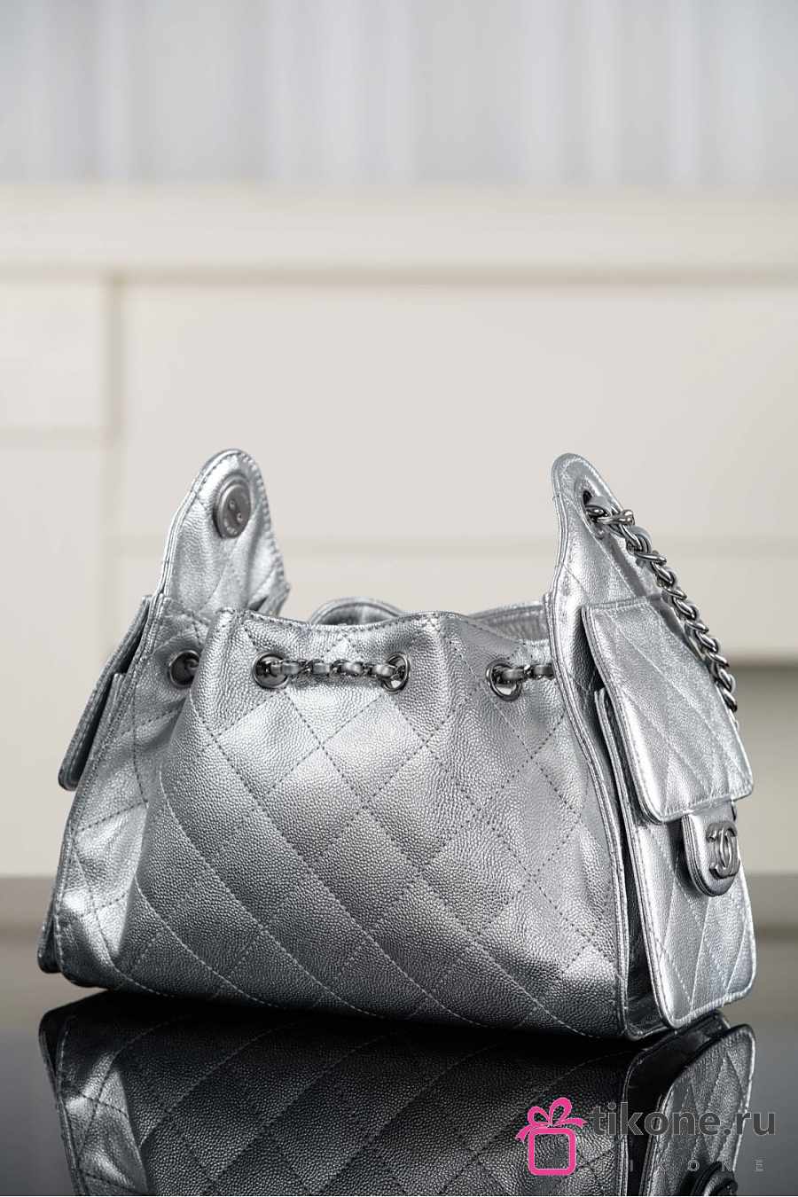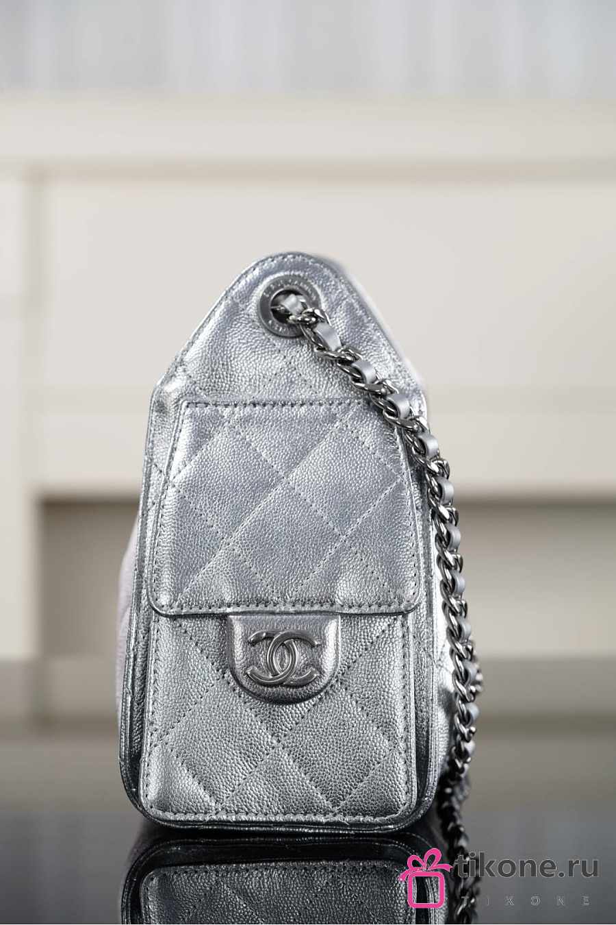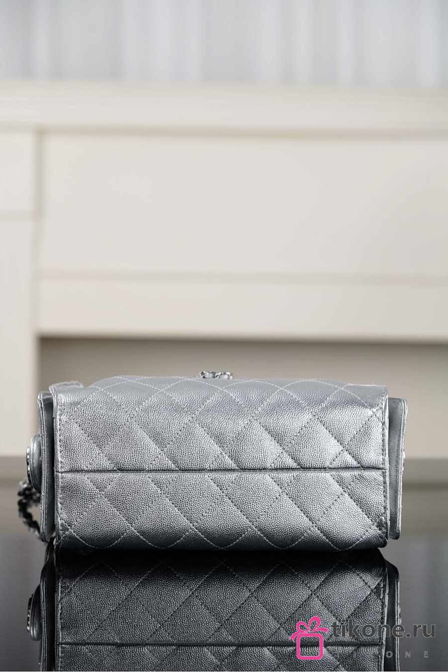 Chanel Mini Flap Top Handle Silver Caviar Silver Hardware - 12x20x6.5cm