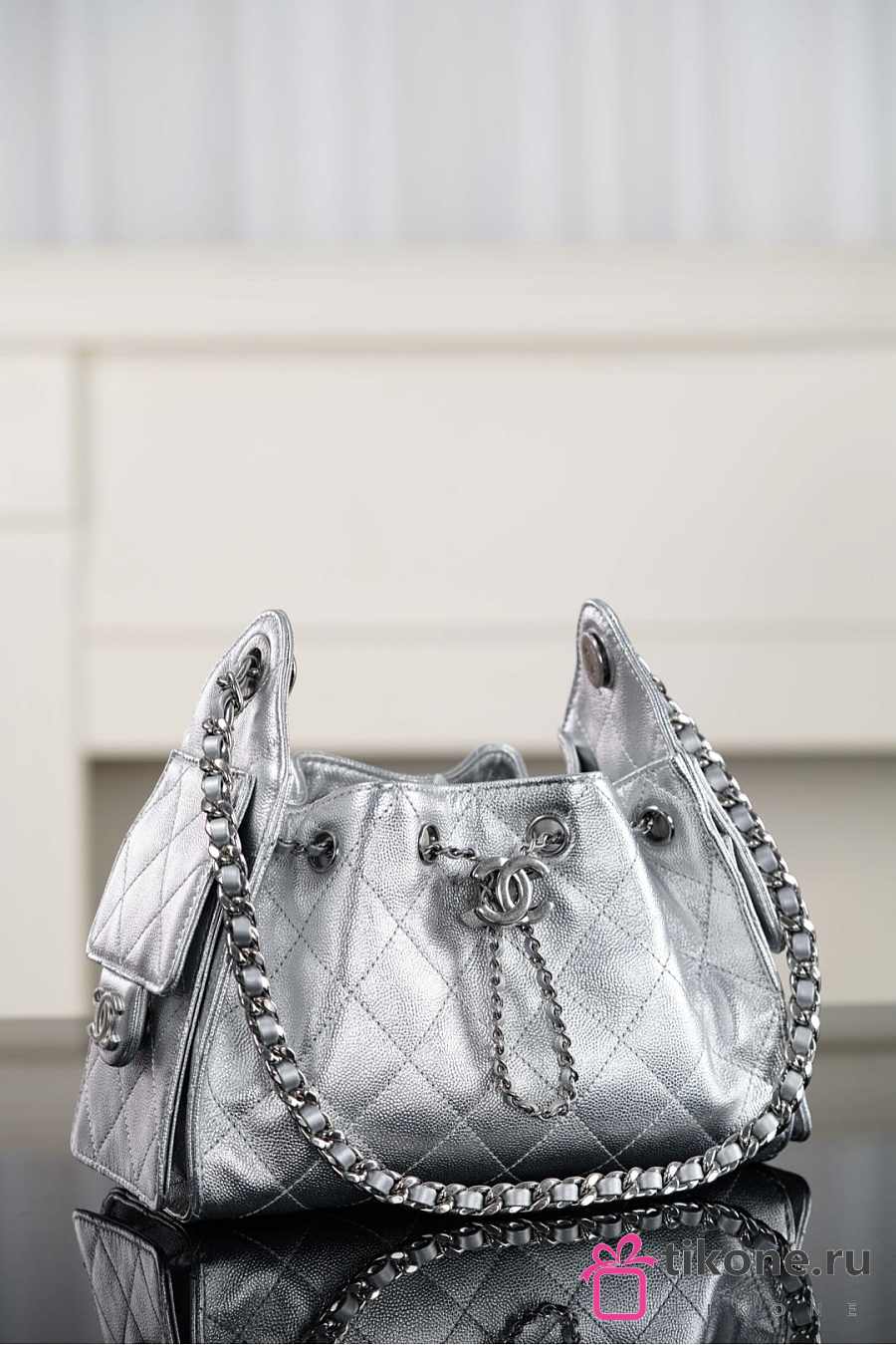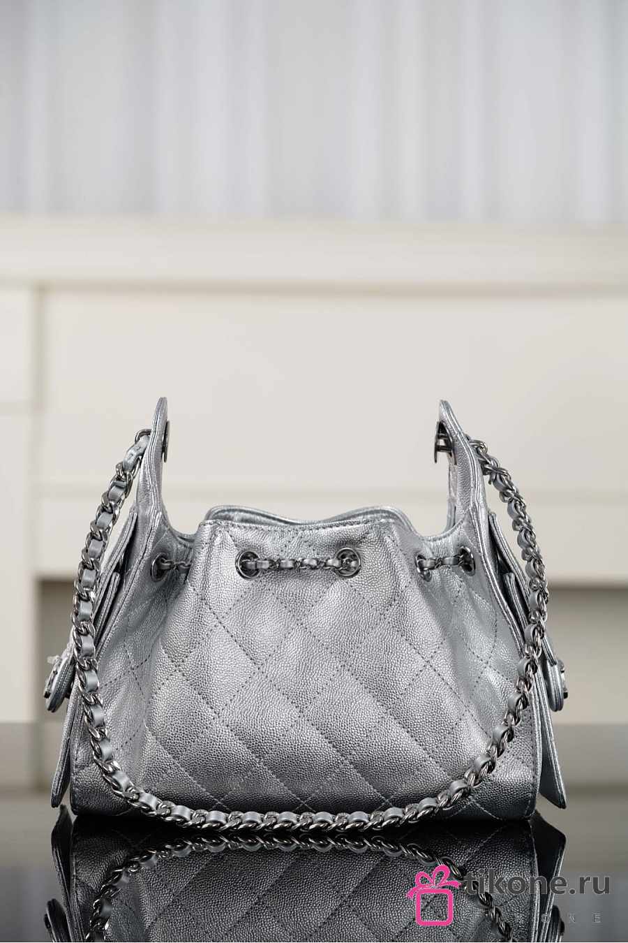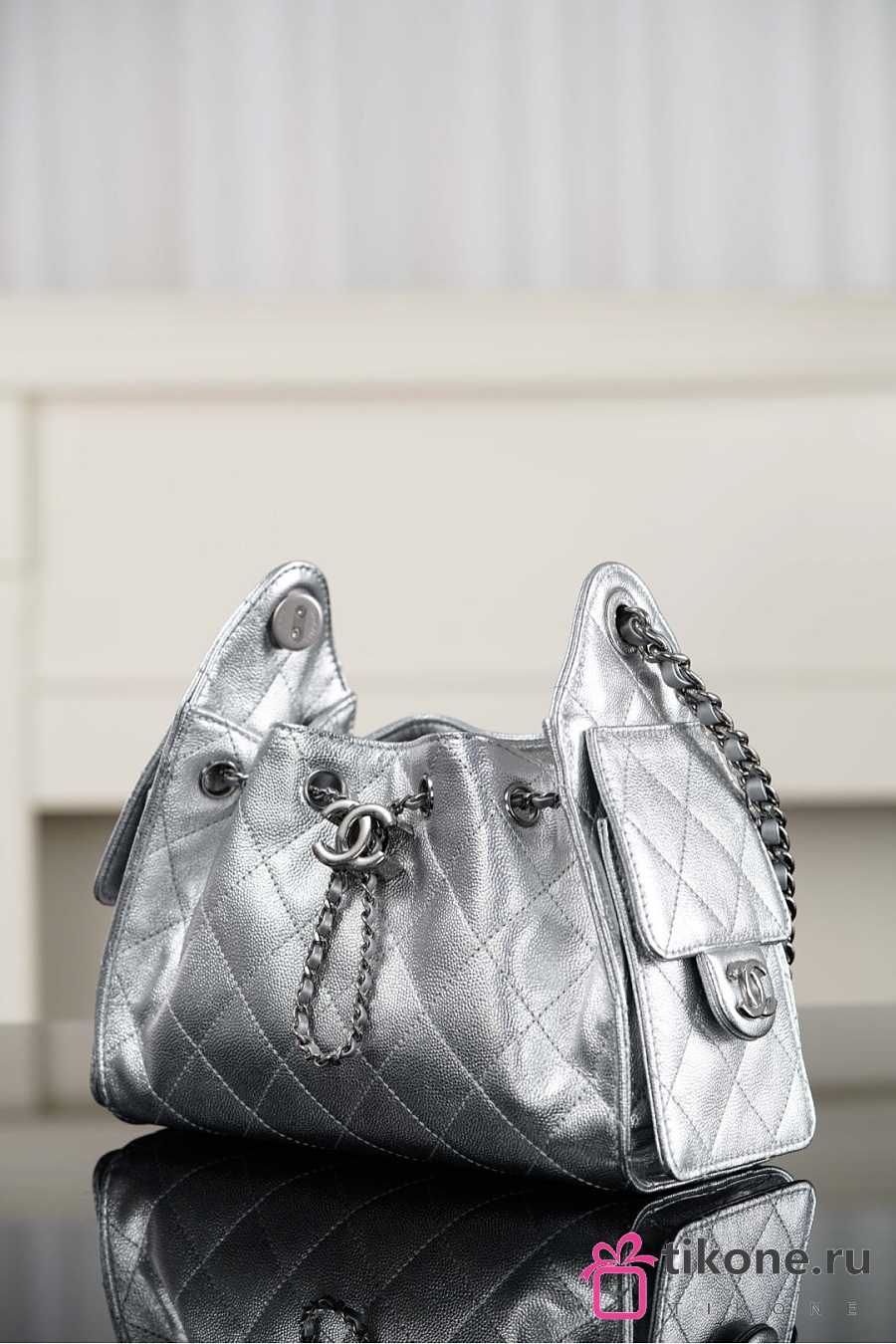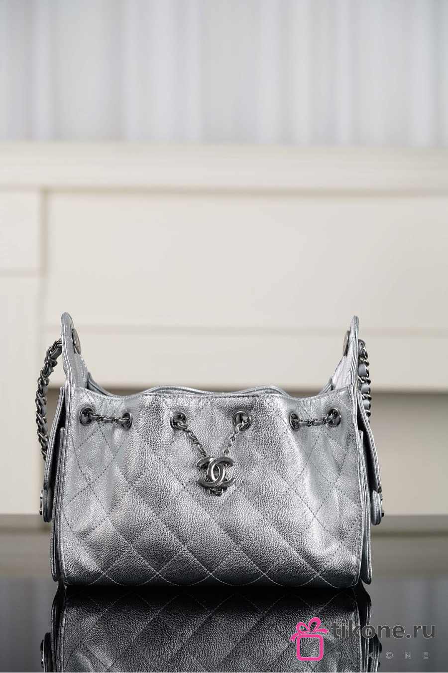 Chanel 25 Mini Handbag Metallic Grained Calfskin & Silver Tone Metal Silvery - 22x20x12.5cm