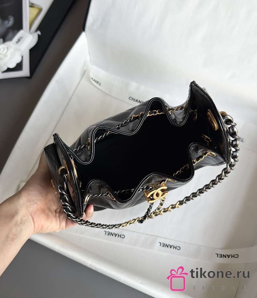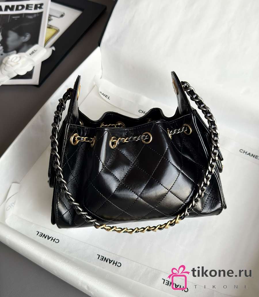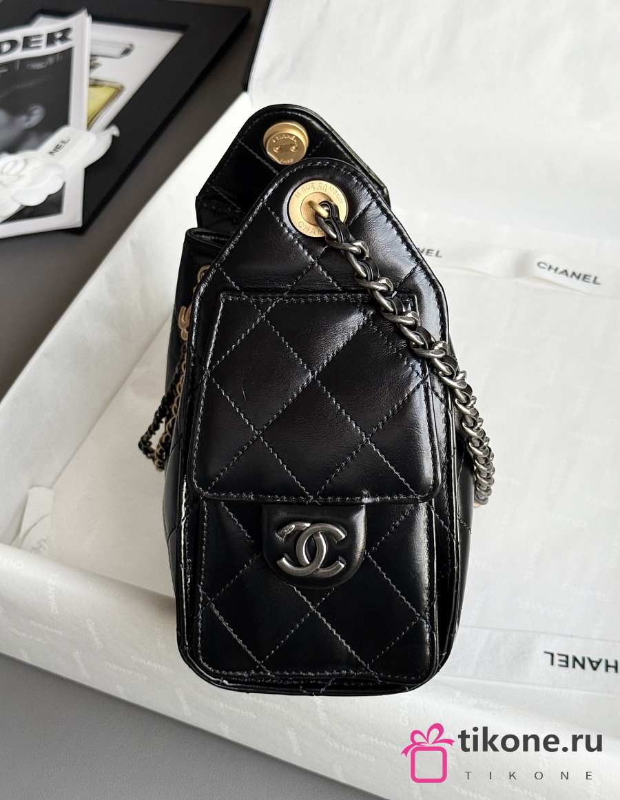 Chanel 25 Mini Handbag Shiny Crumpled Calfskin Gold-Tone & Ruthenium-Finish Metal Black - 22x20x12.5cm