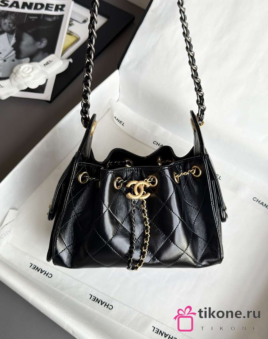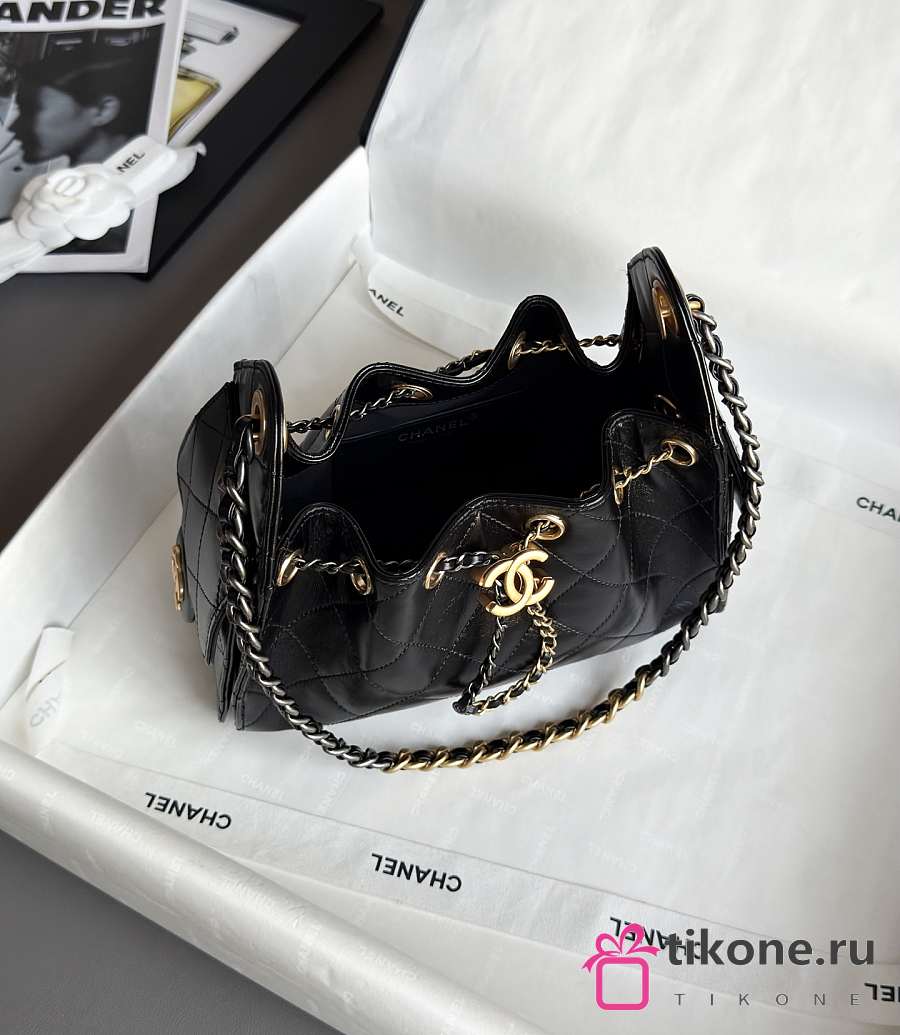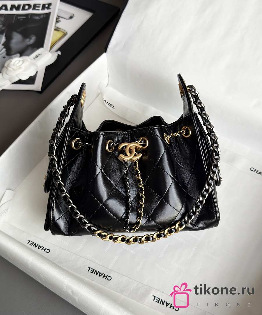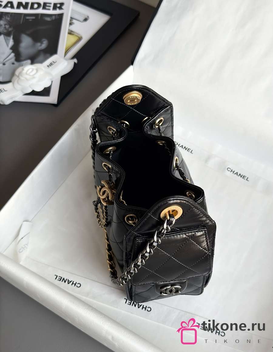 Chanel 25 Mini Handbag Shiny Crumpled Calfskin Gold-Tone & Ruthenium-Finish Metal Black - 22x20x12.5cm