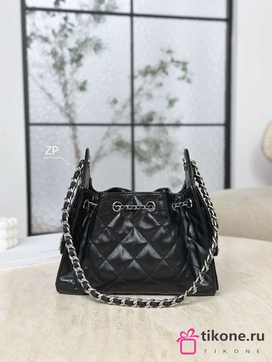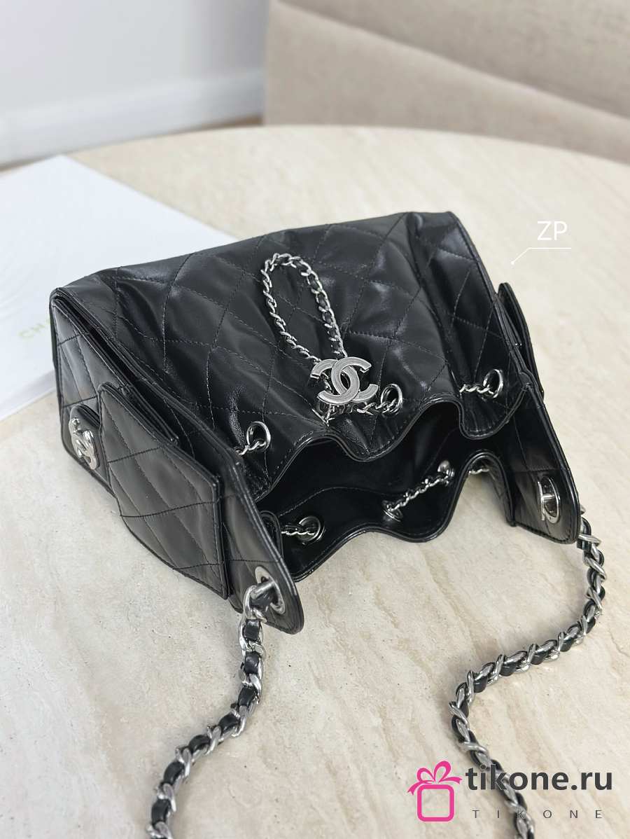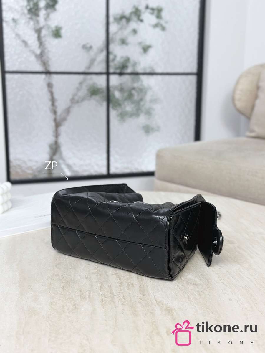 Chanel 25 Mini Handbag Shiny Crumpled Calfskin & Silver-Tone Metal Black - 20x22x12.5cm