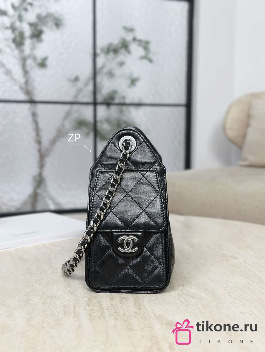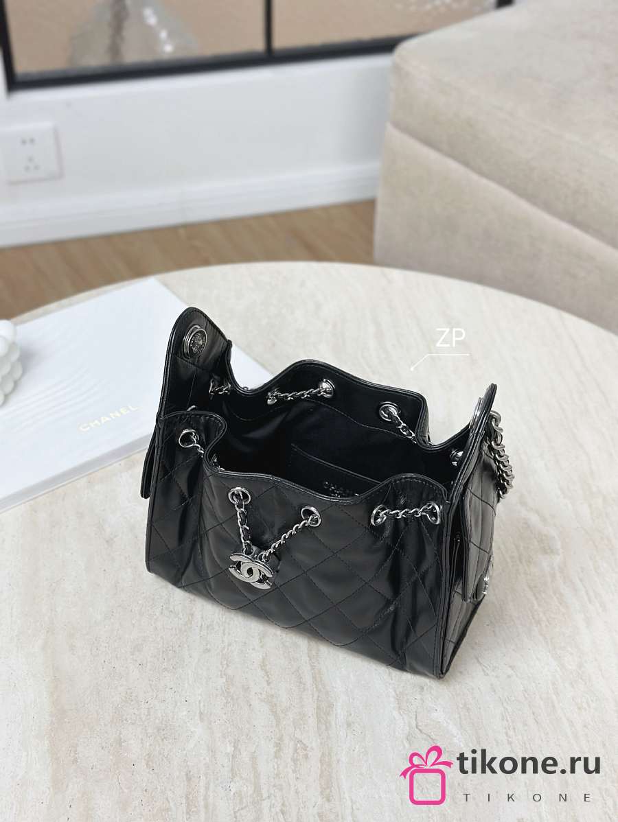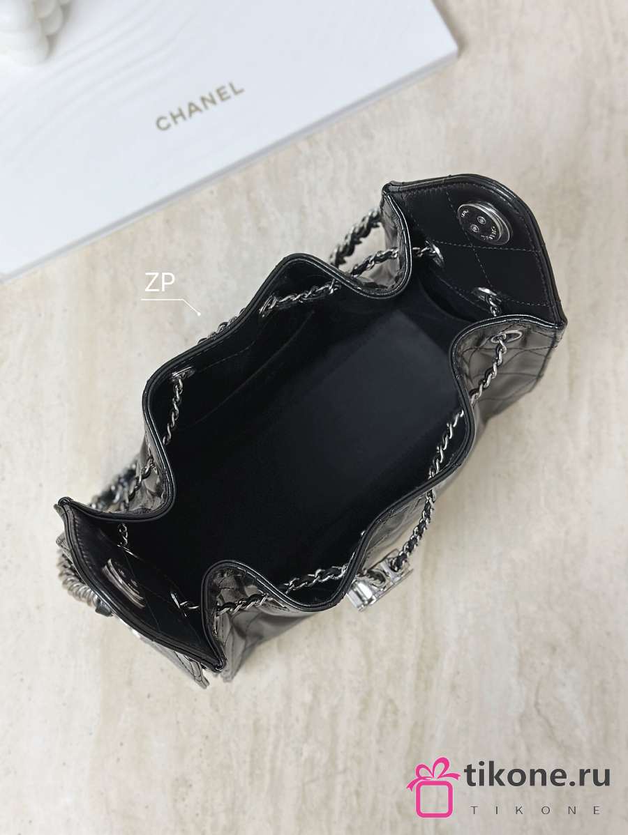 Chanel 25 Mini Handbag Shiny Crumpled Calfskin & Silver-Tone Metal Black - 20x22x12.5cm