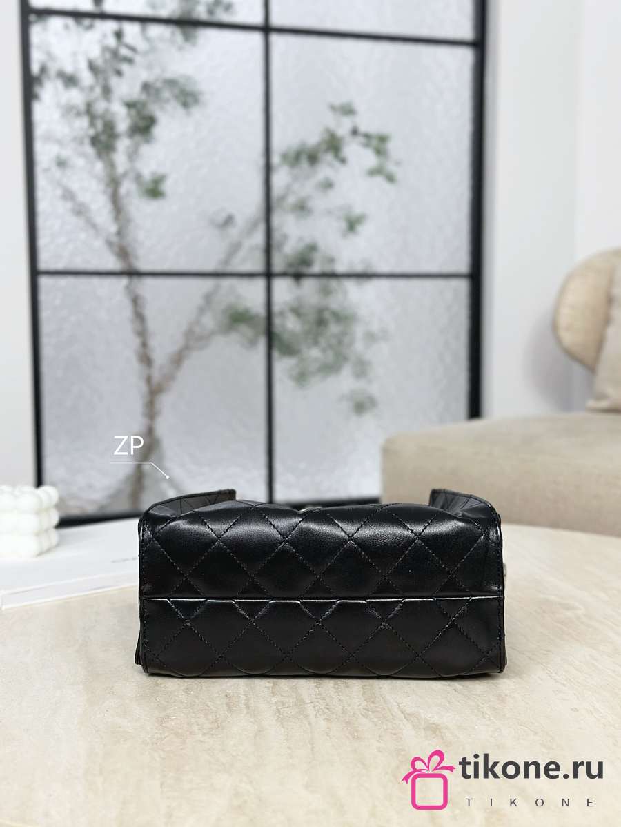 Chanel Rigid Black Quilted Leather Handle Flap Bag - 31x25x8cm