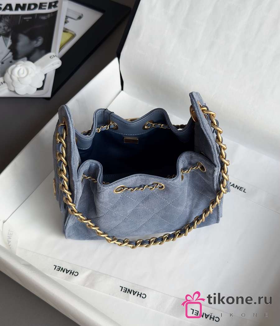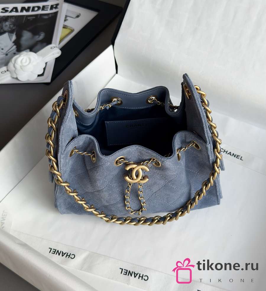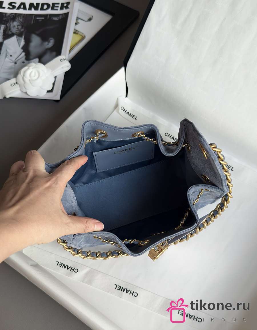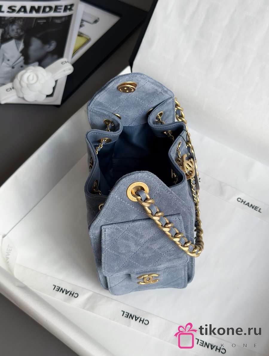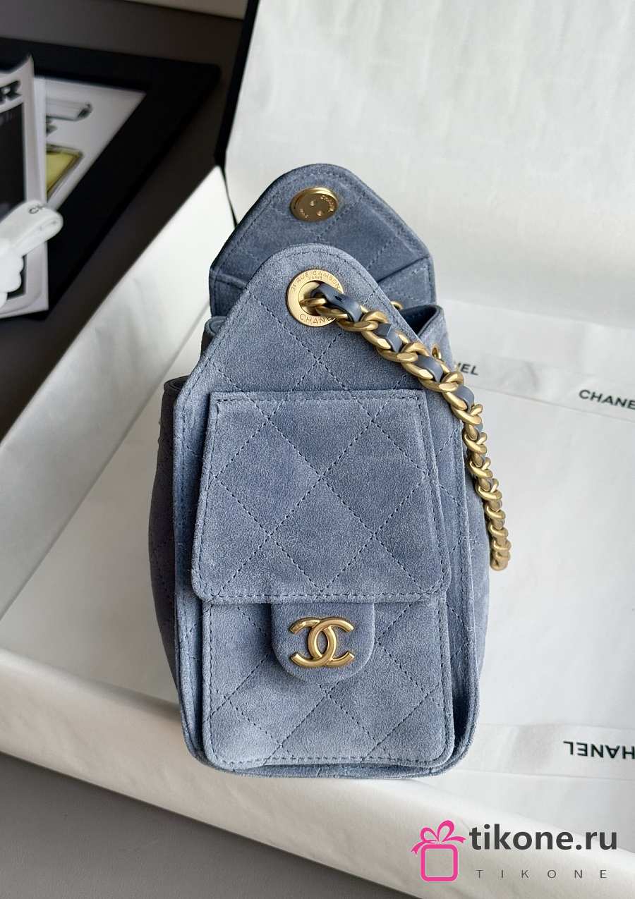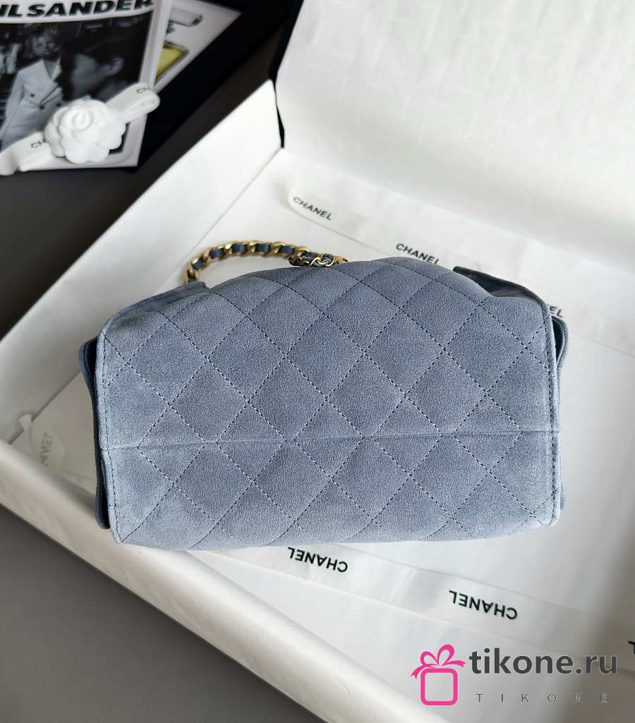 Chanel 25 Mini Handbag Suede Calfskin & Gold Tone Metal Blue - 22x20x12.5cm