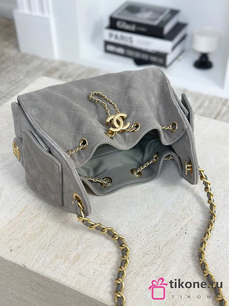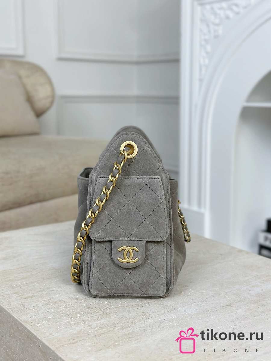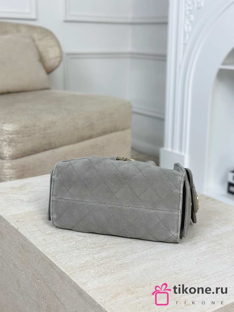 Chanel 25 Mini Handbag Suede Calfskin & Gold Tone Metal Gray - 22x20x12.5cm