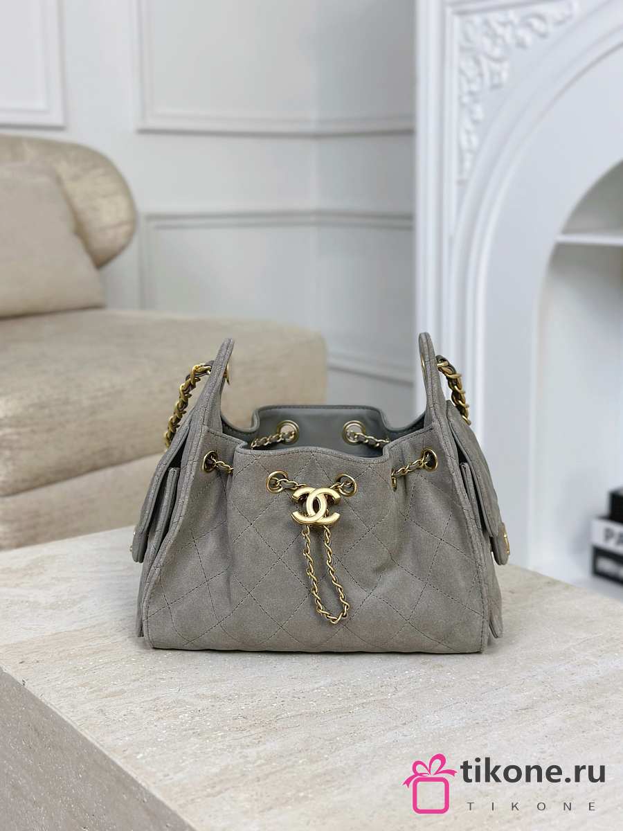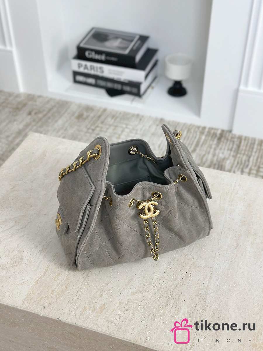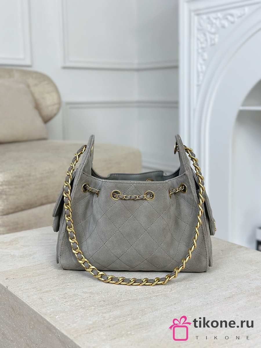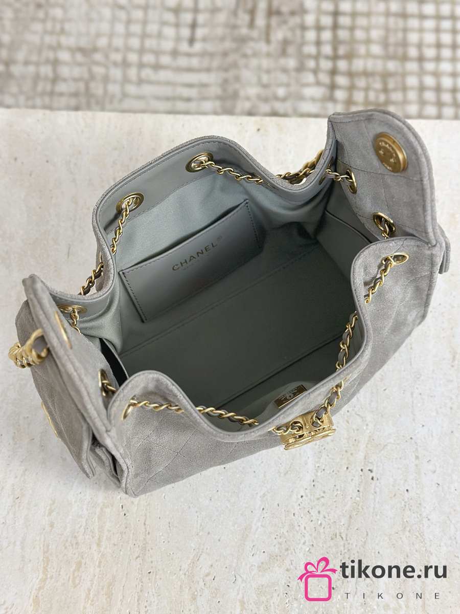Chanel 25 Mini Handbag Suede Calfskin & Gold Tone Metal Gray - 22x20x12.5cm
