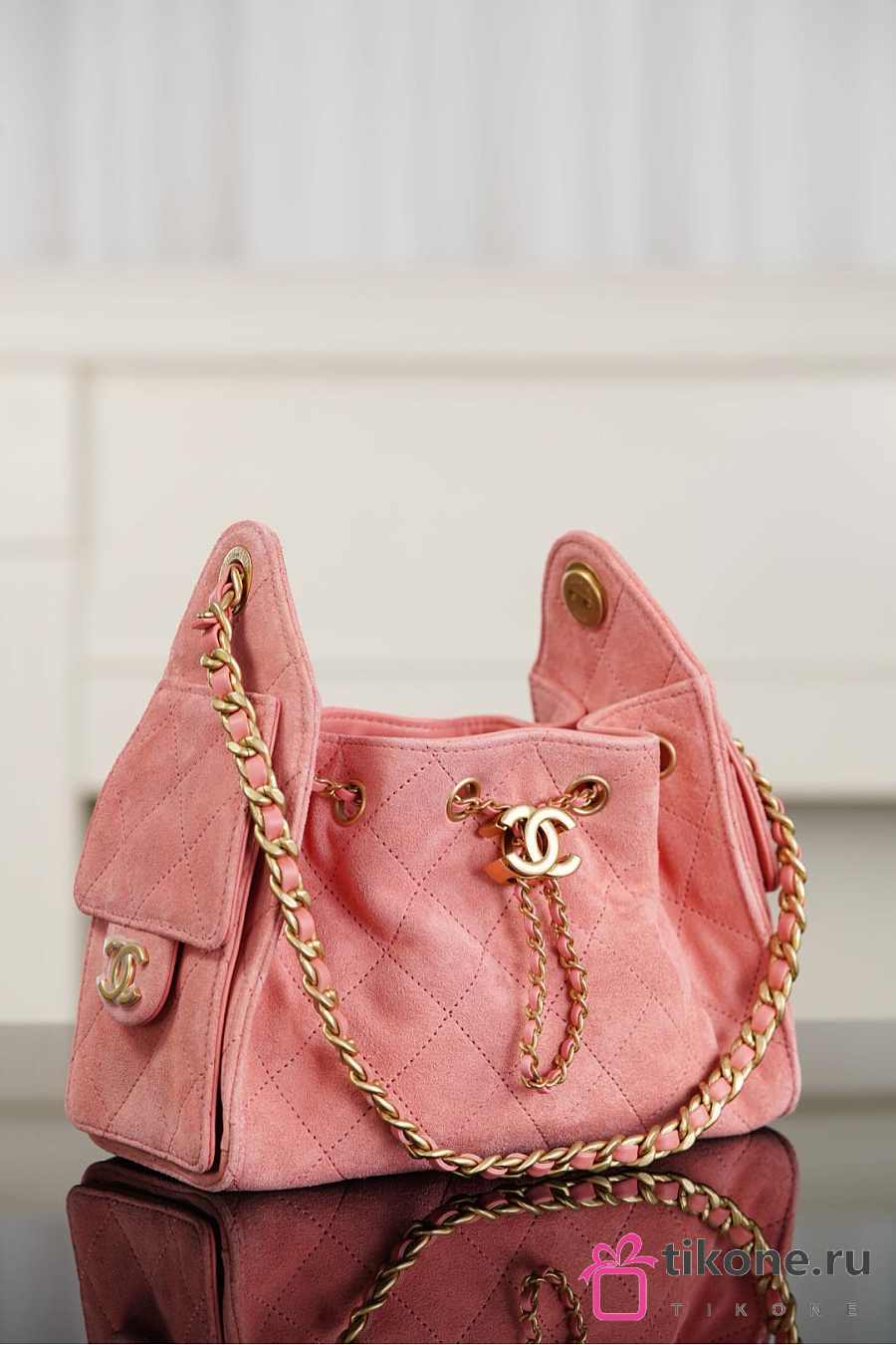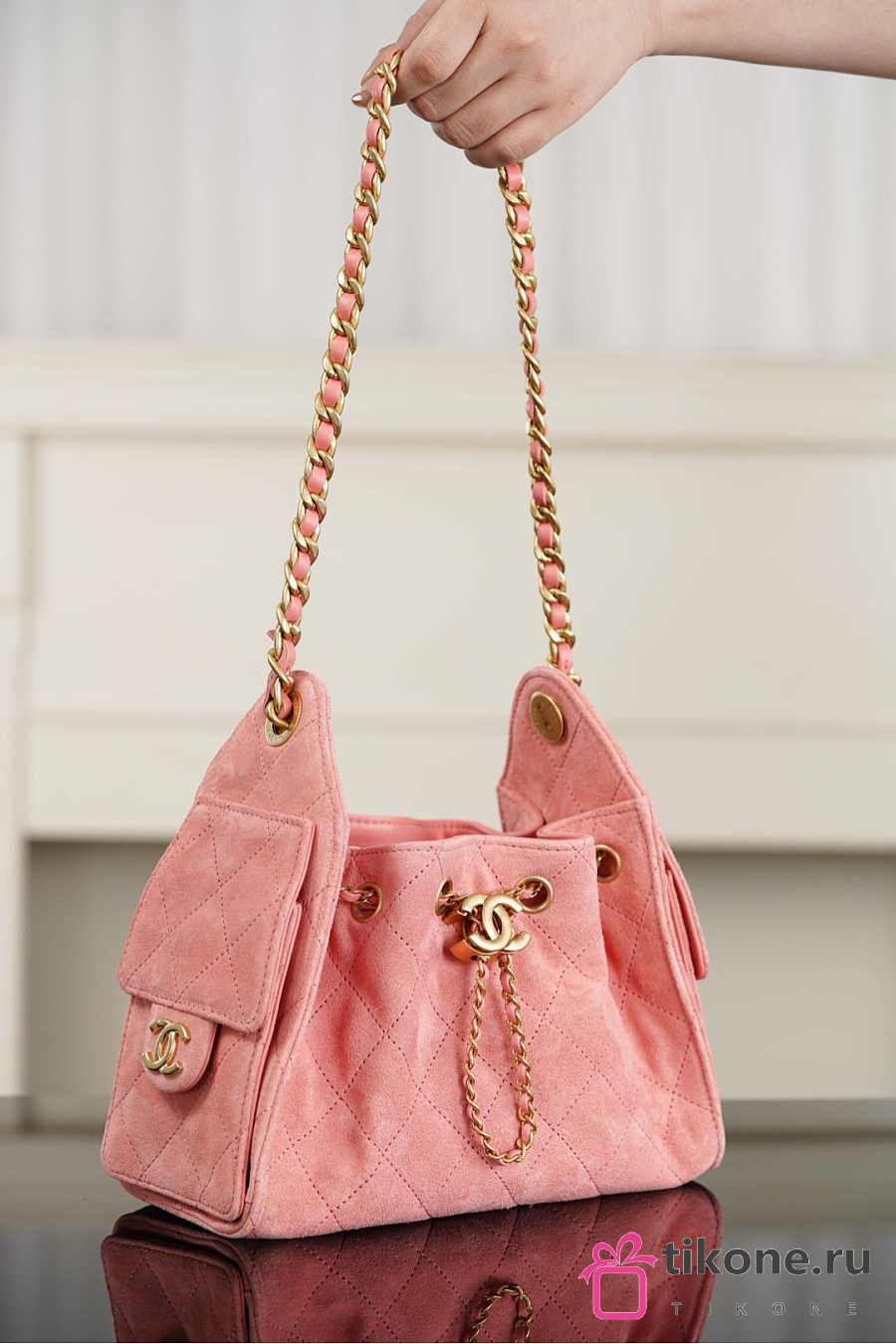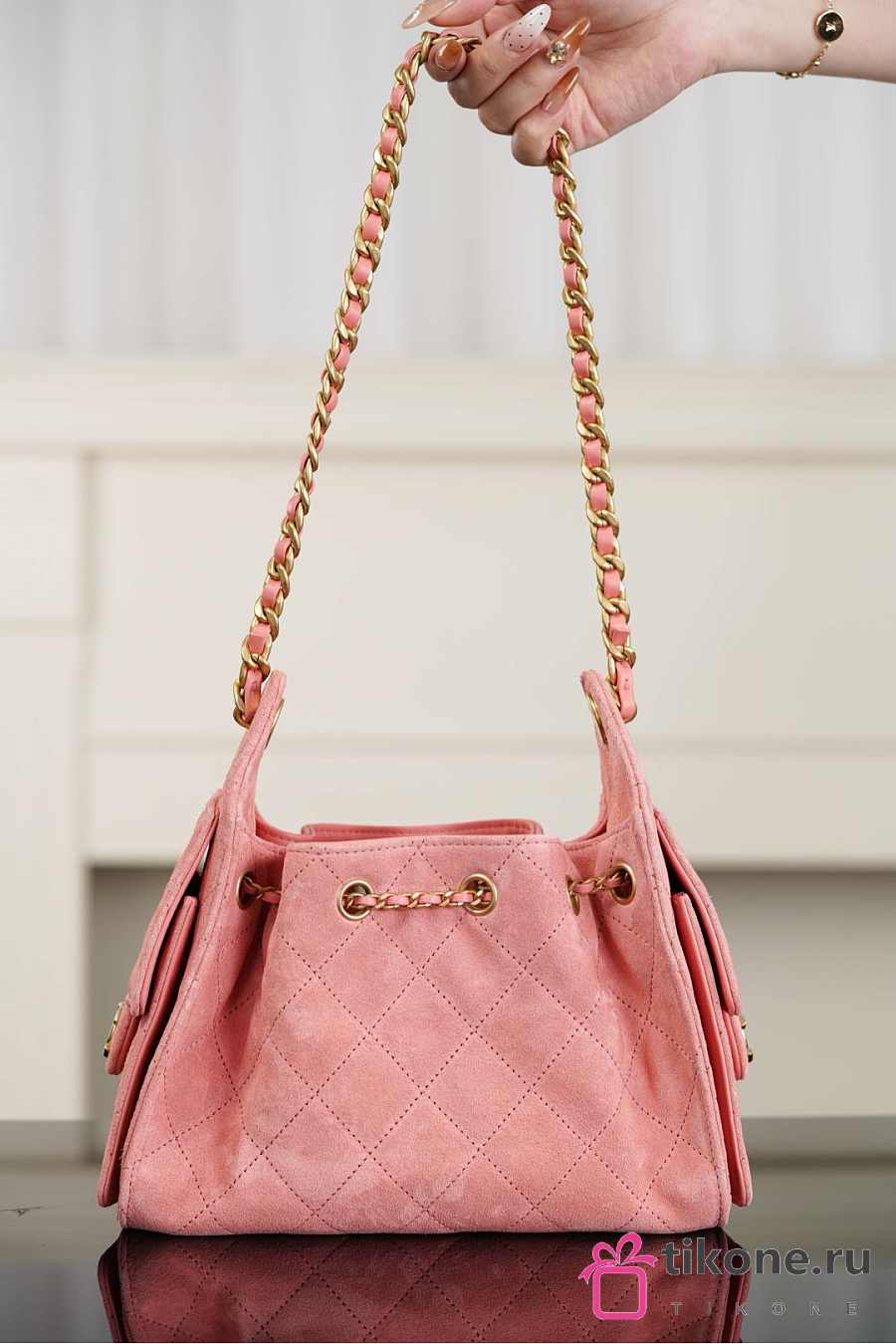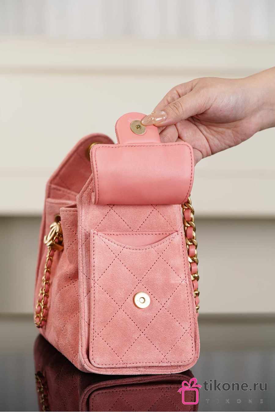Chanel 25 Mini Handbag Suede Calfskin & Gold Tone Metal Pink - 22x20x12.5cm