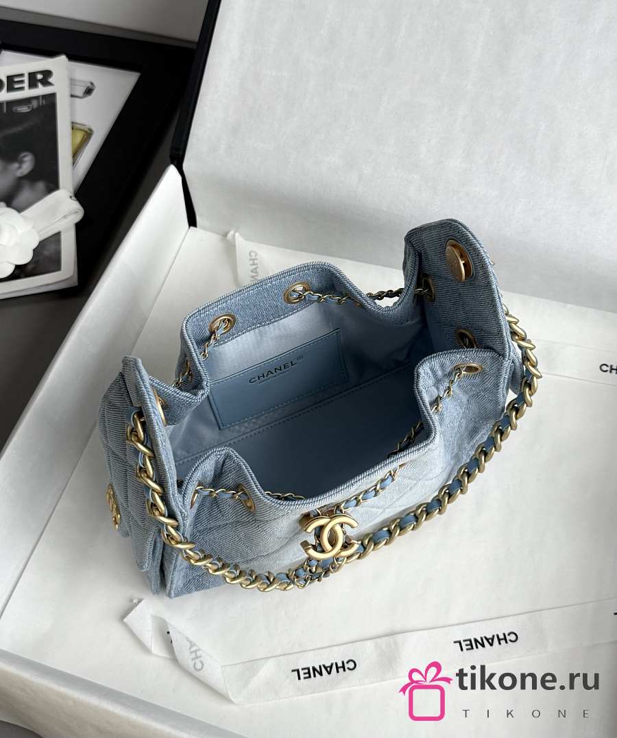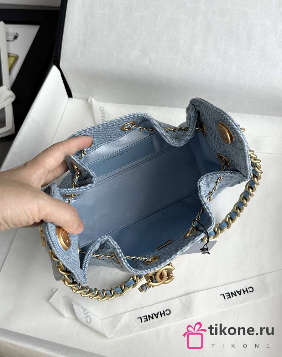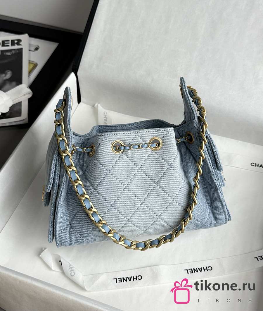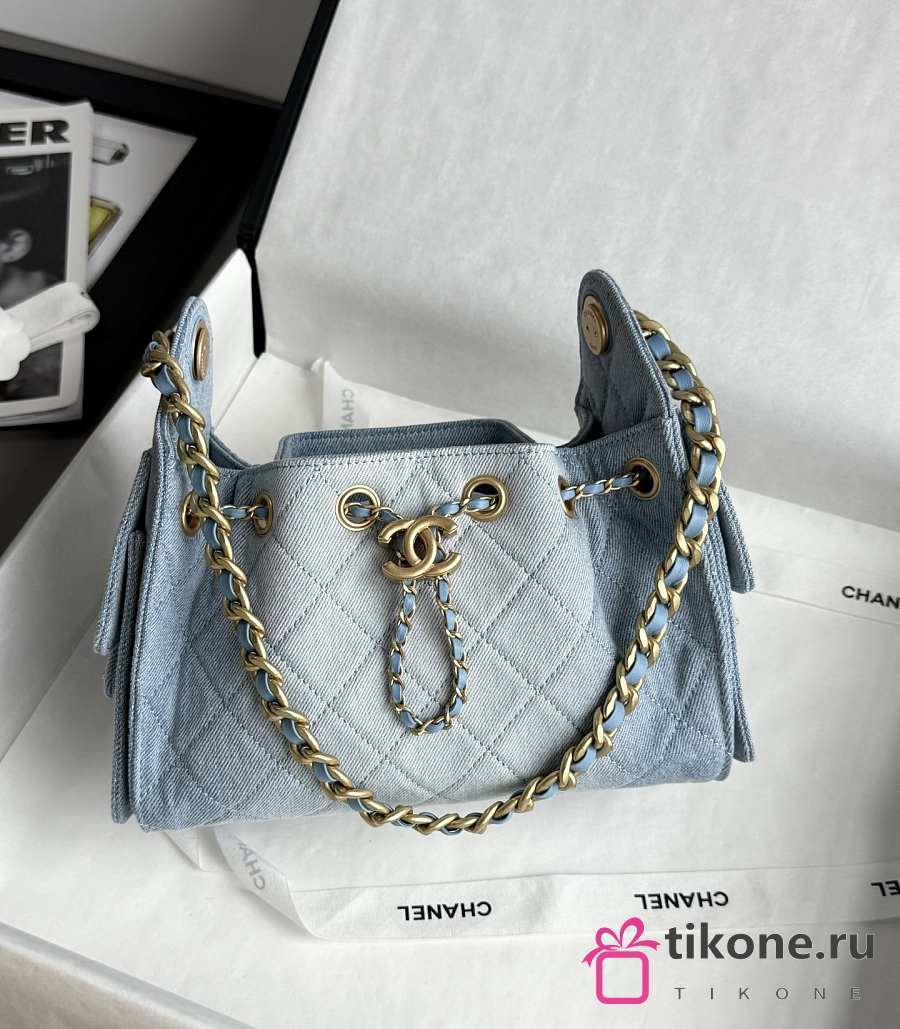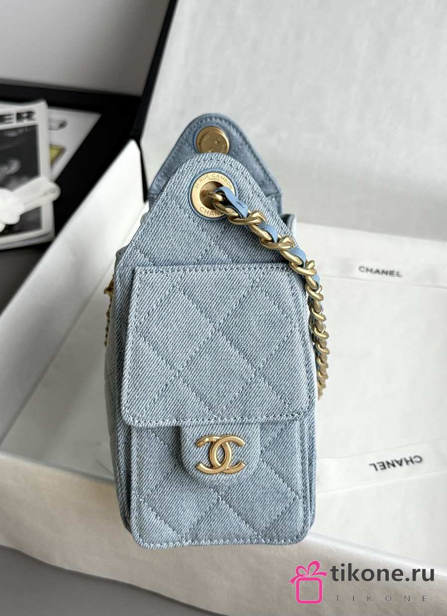 Chanel 25 Mini Handbag Washed Denim Gold-Tone Metal Blue - 22x20x12.5cm