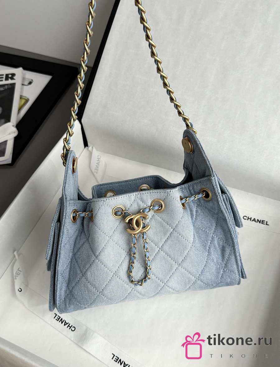 Chanel Vintage Blue Denim Hand Bag - 18x13x7cm