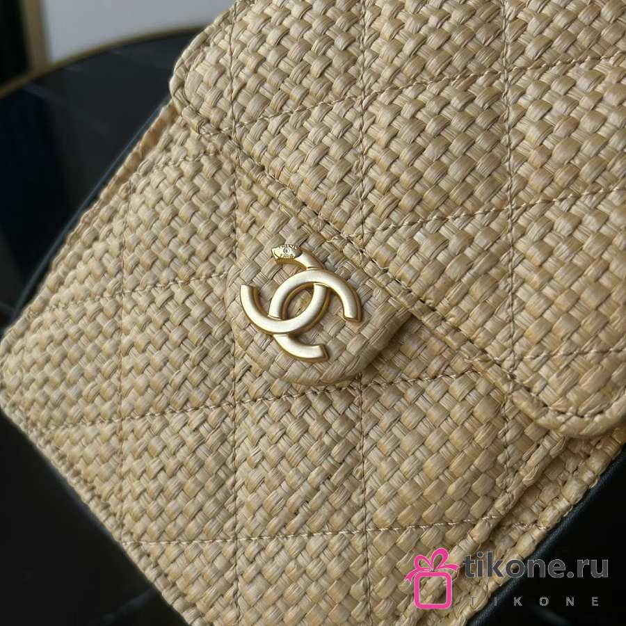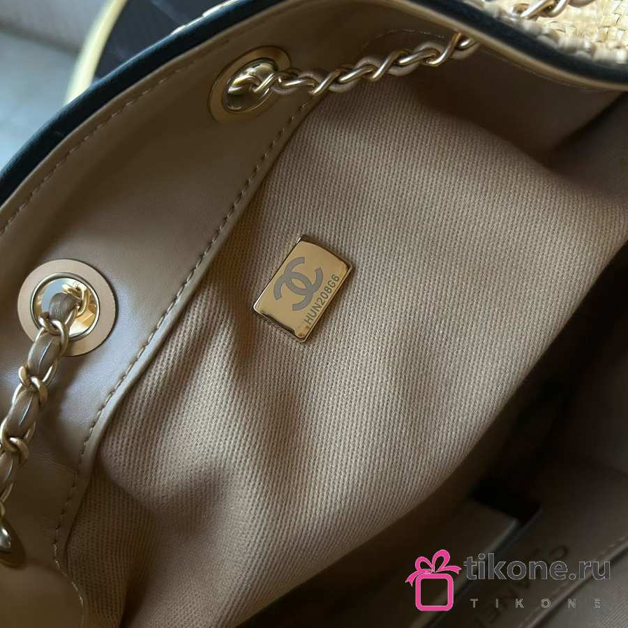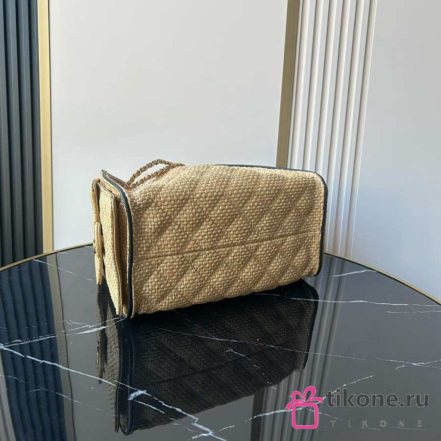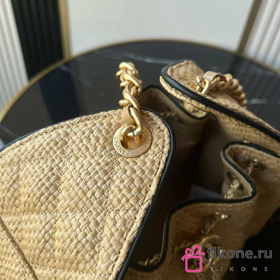 Chanel 25 Small Handbag Braided Raffia, Calfskin & Gold-Tone Metal Beige & Black - 30x26x14cm