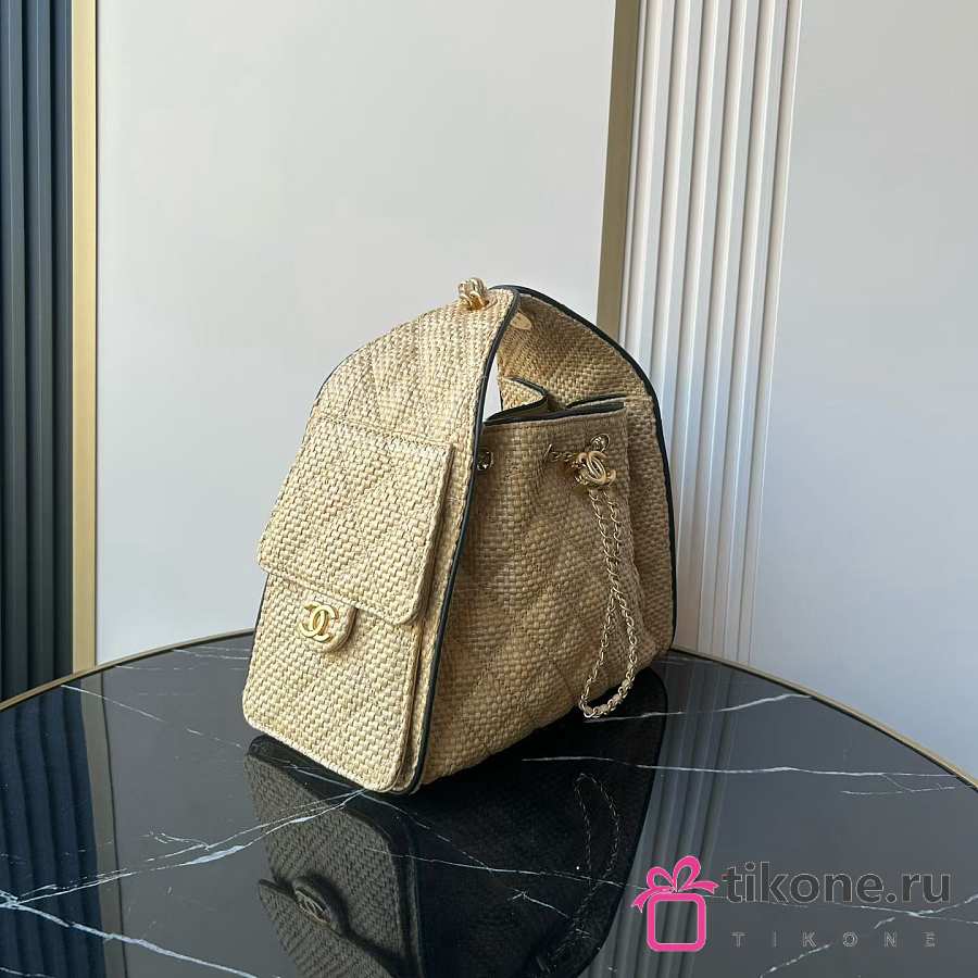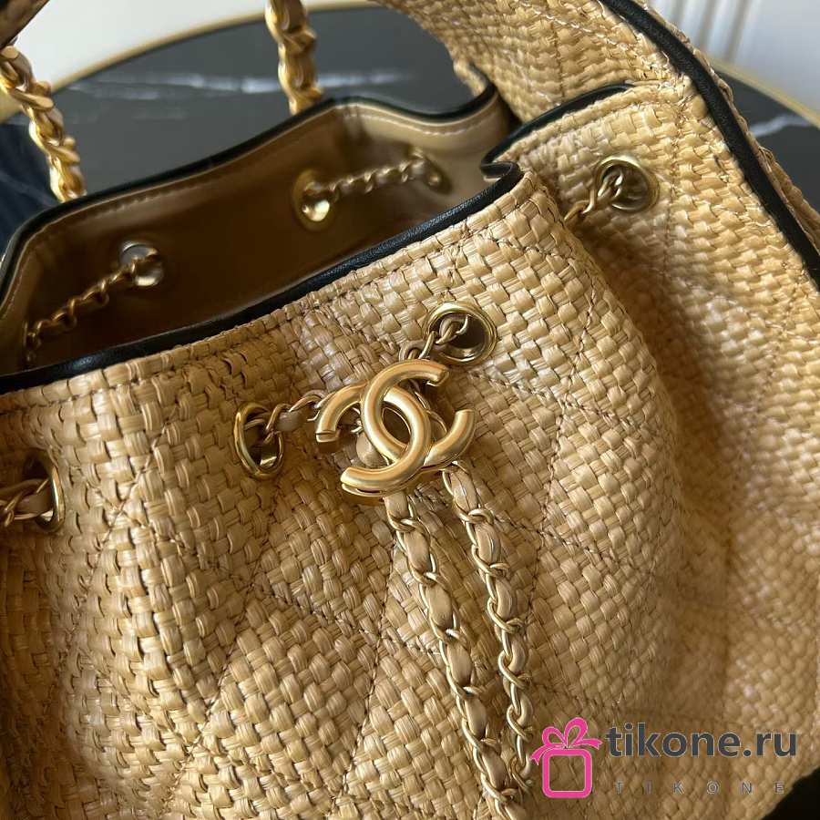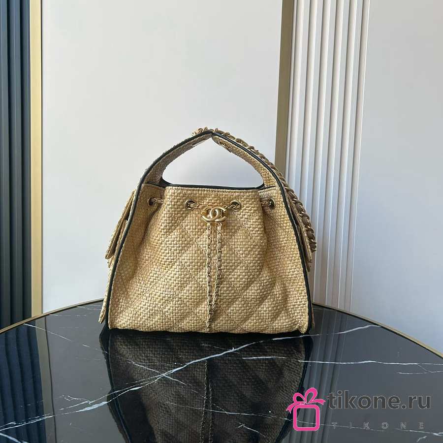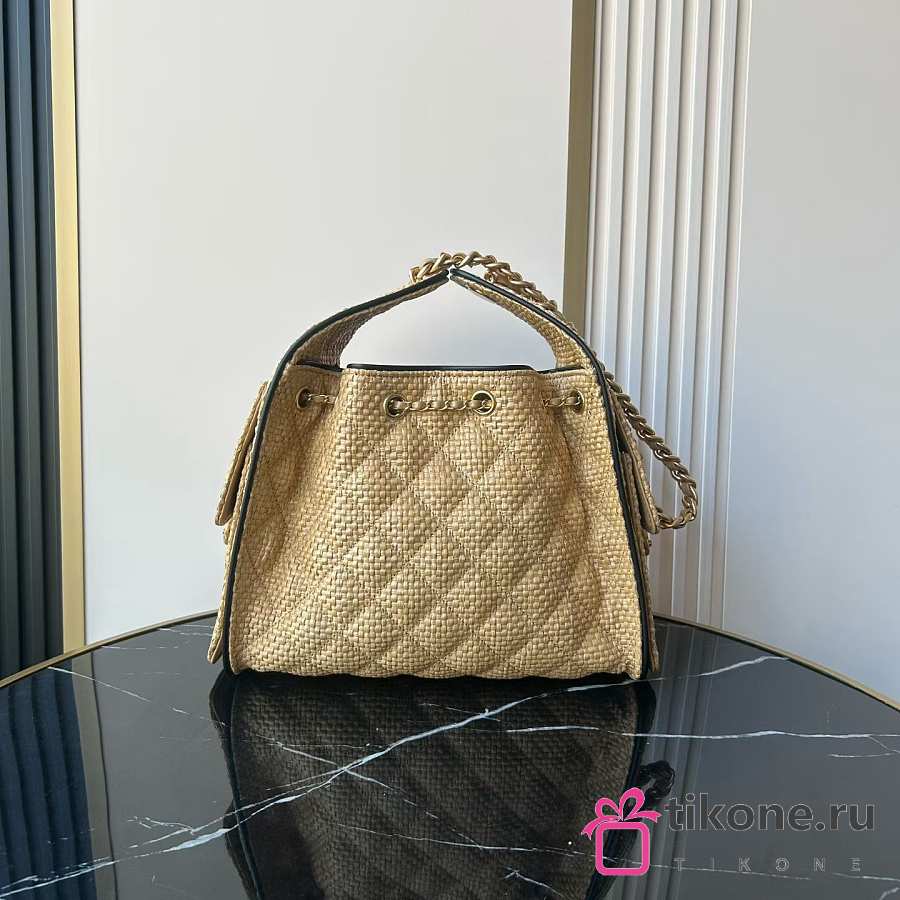 Chanel 25 Small Handbag Braided Raffia, Calfskin & Gold-Tone Metal Beige & Black - 30x26x14cm