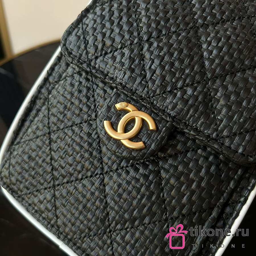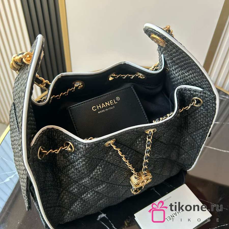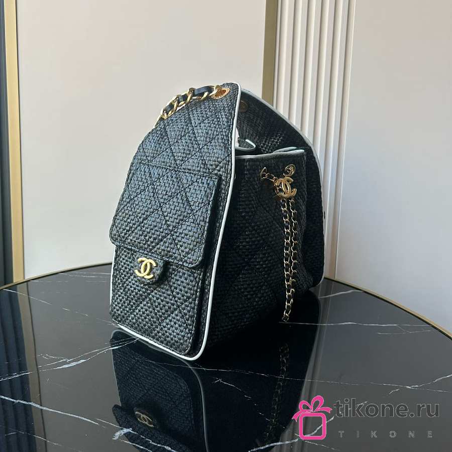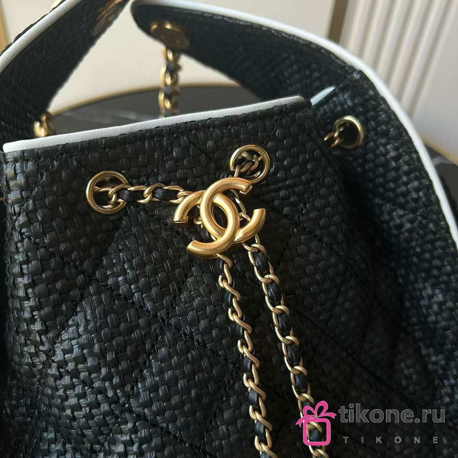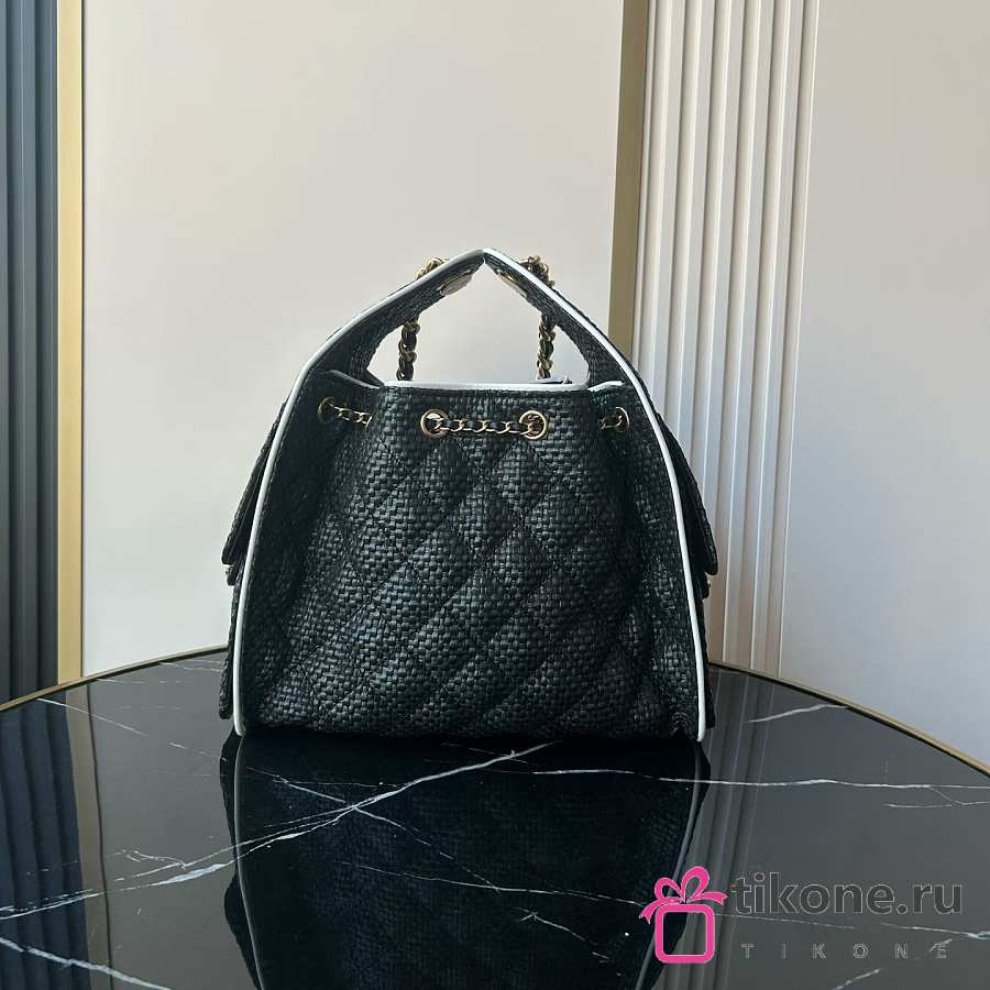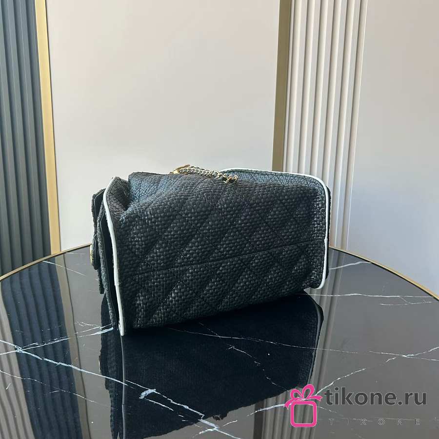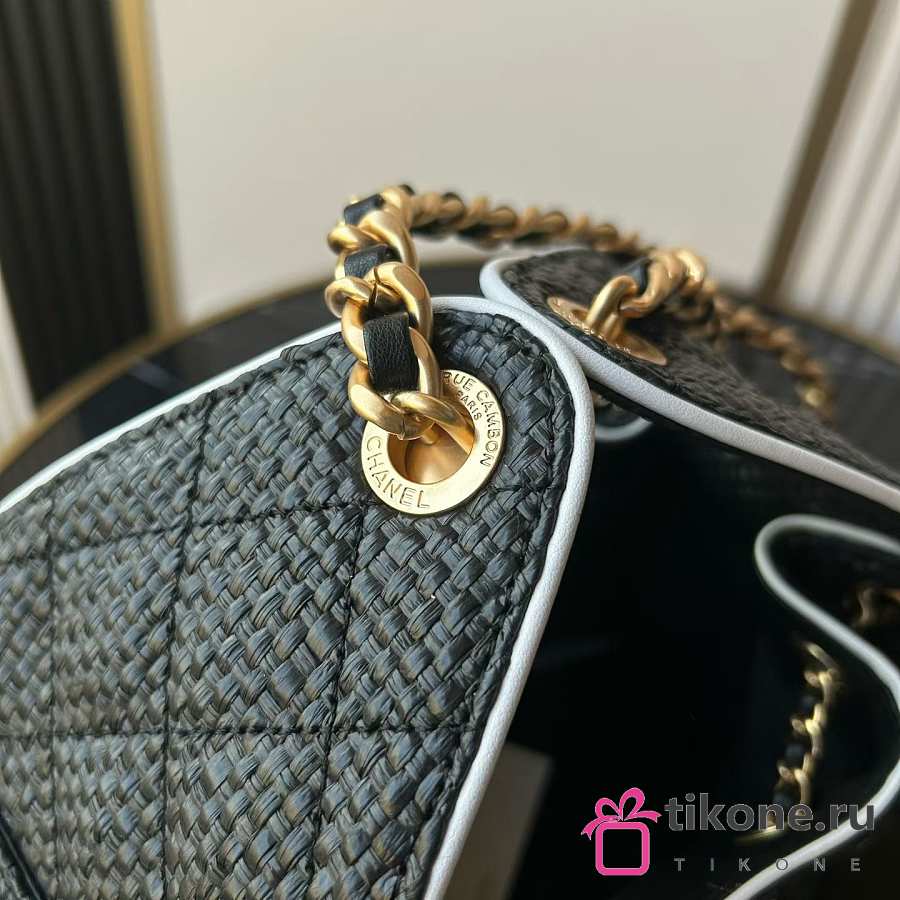 Chanel 25 Small Handbag Braided Raffia, Calfskin & Gold-Tone Metal Black & White - 30x26x14cm