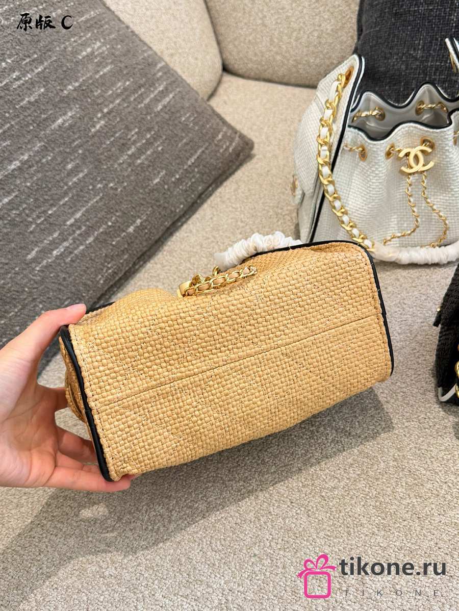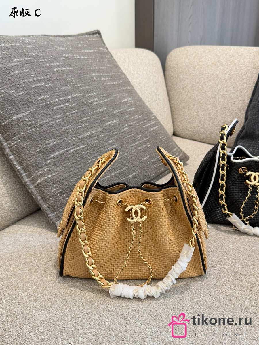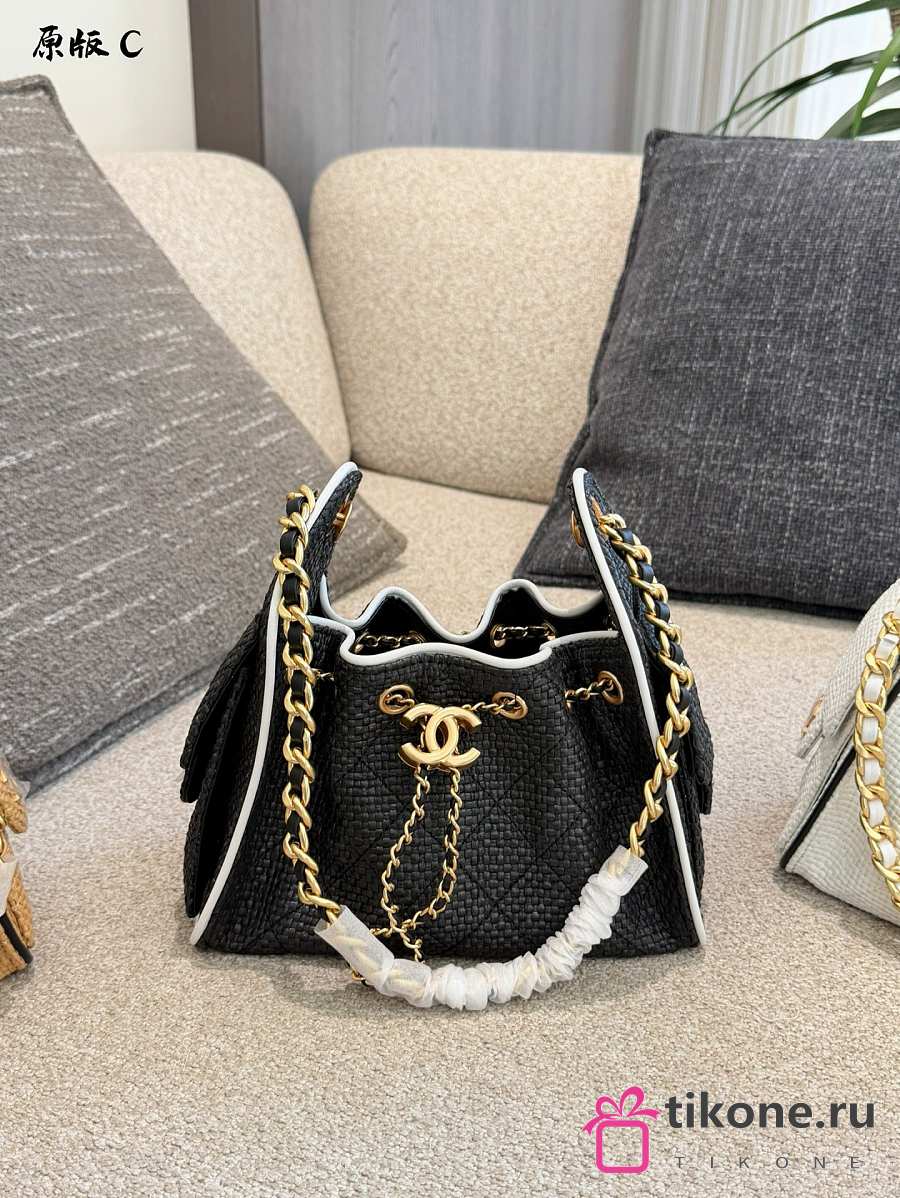 Chanel 25 Small Handbag Braided Raffia, Calfskin & Gold-Tone Metal Black/White/Beige- 22x20x12.5cm
