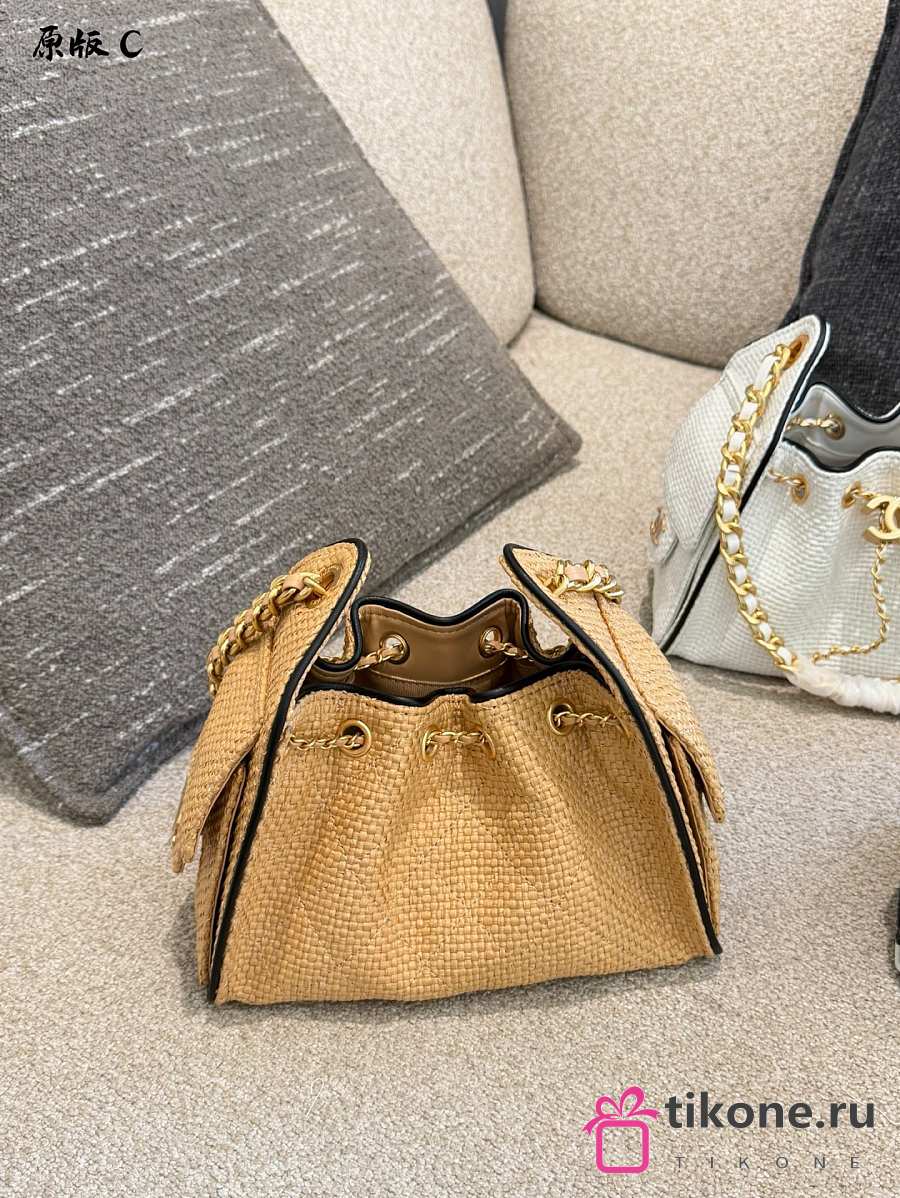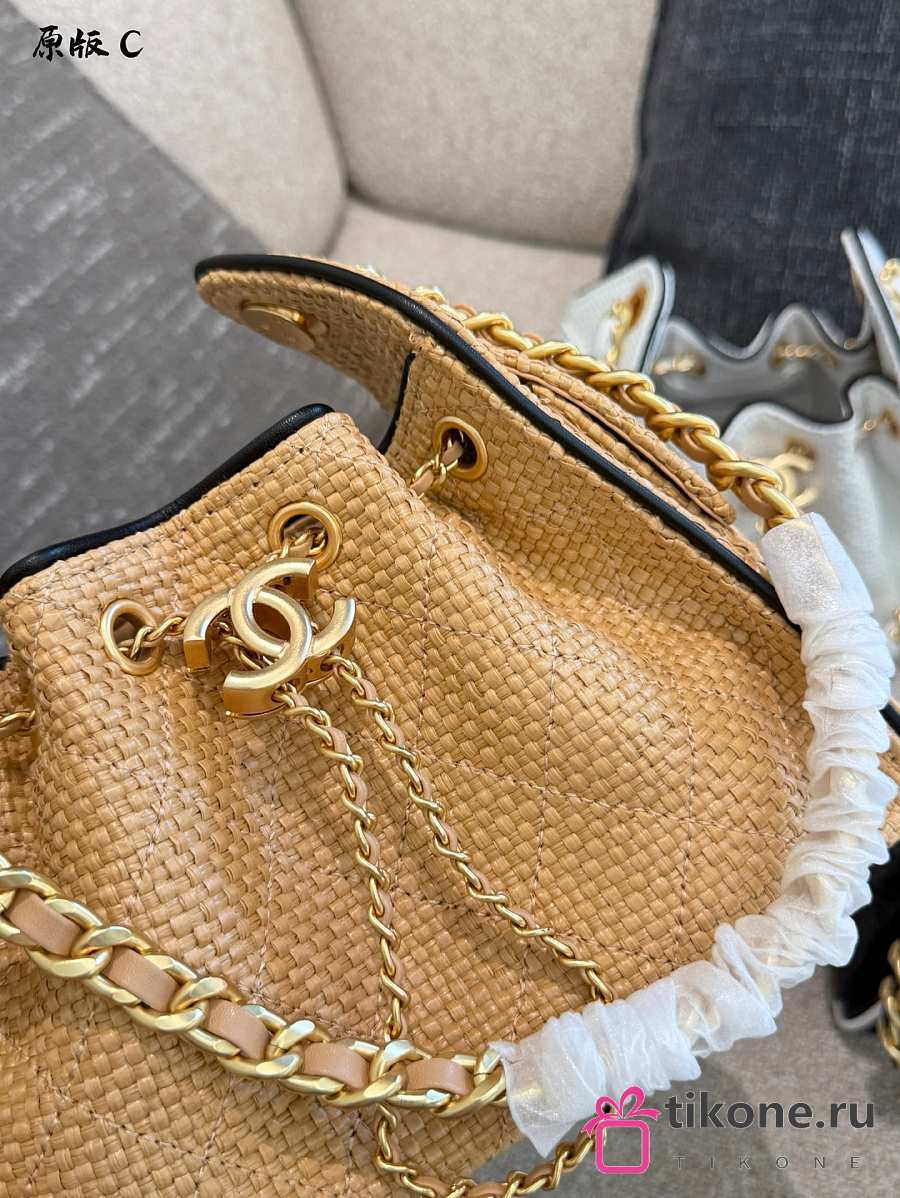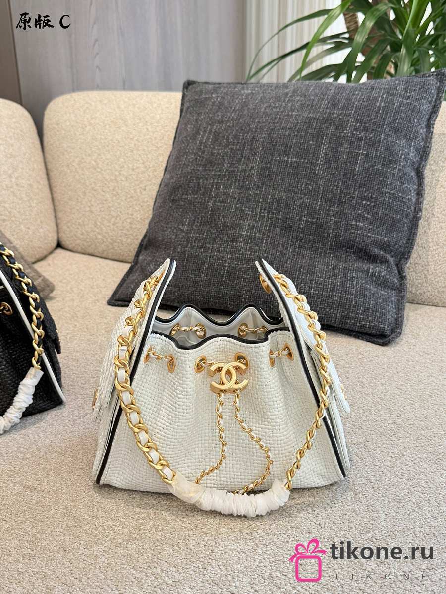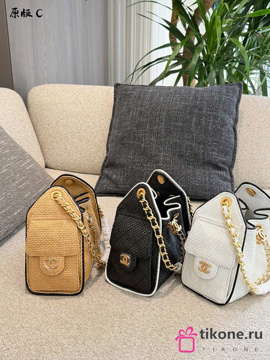 Chanel 25 Small Handbag Braided Raffia, Calfskin & Gold-Tone Metal Black/White/Beige- 22x20x12.5cm