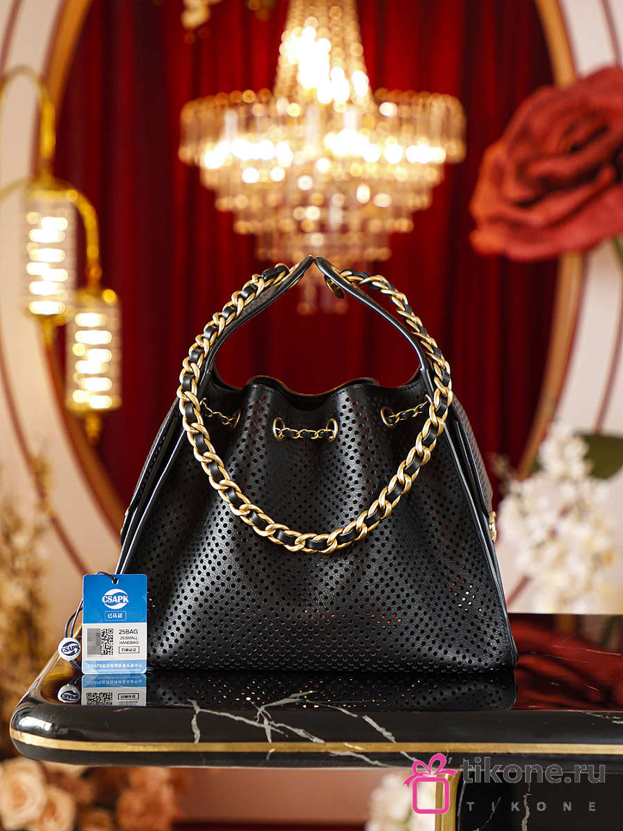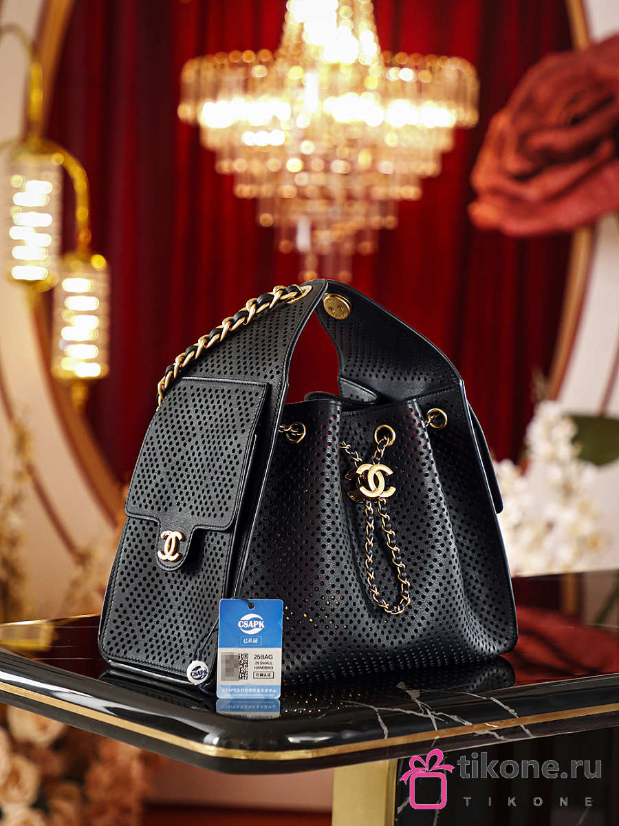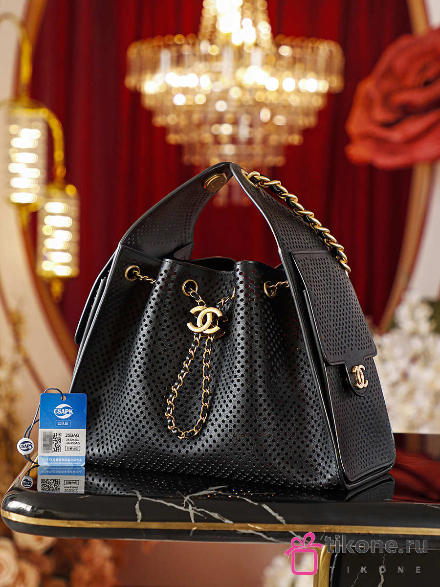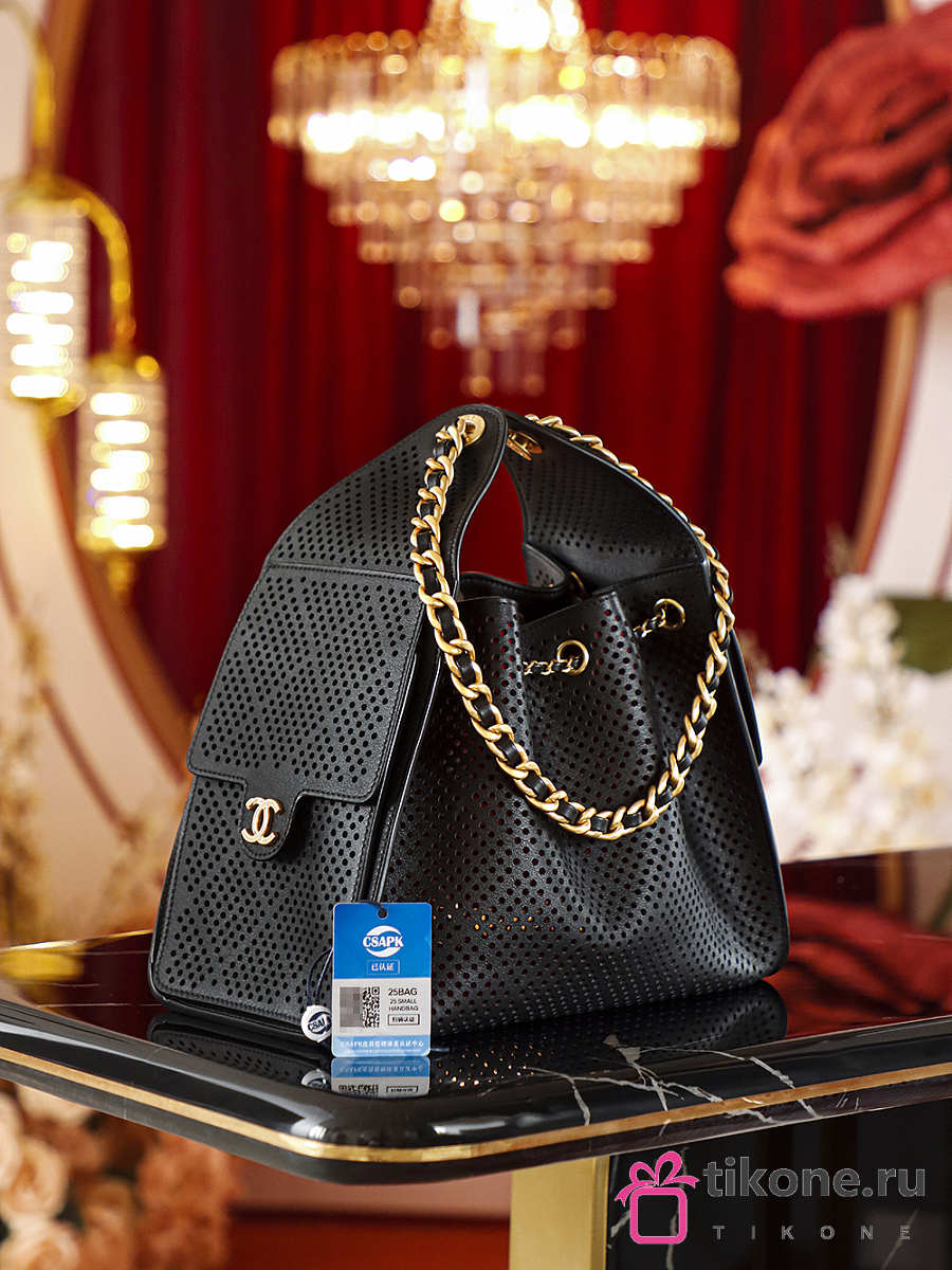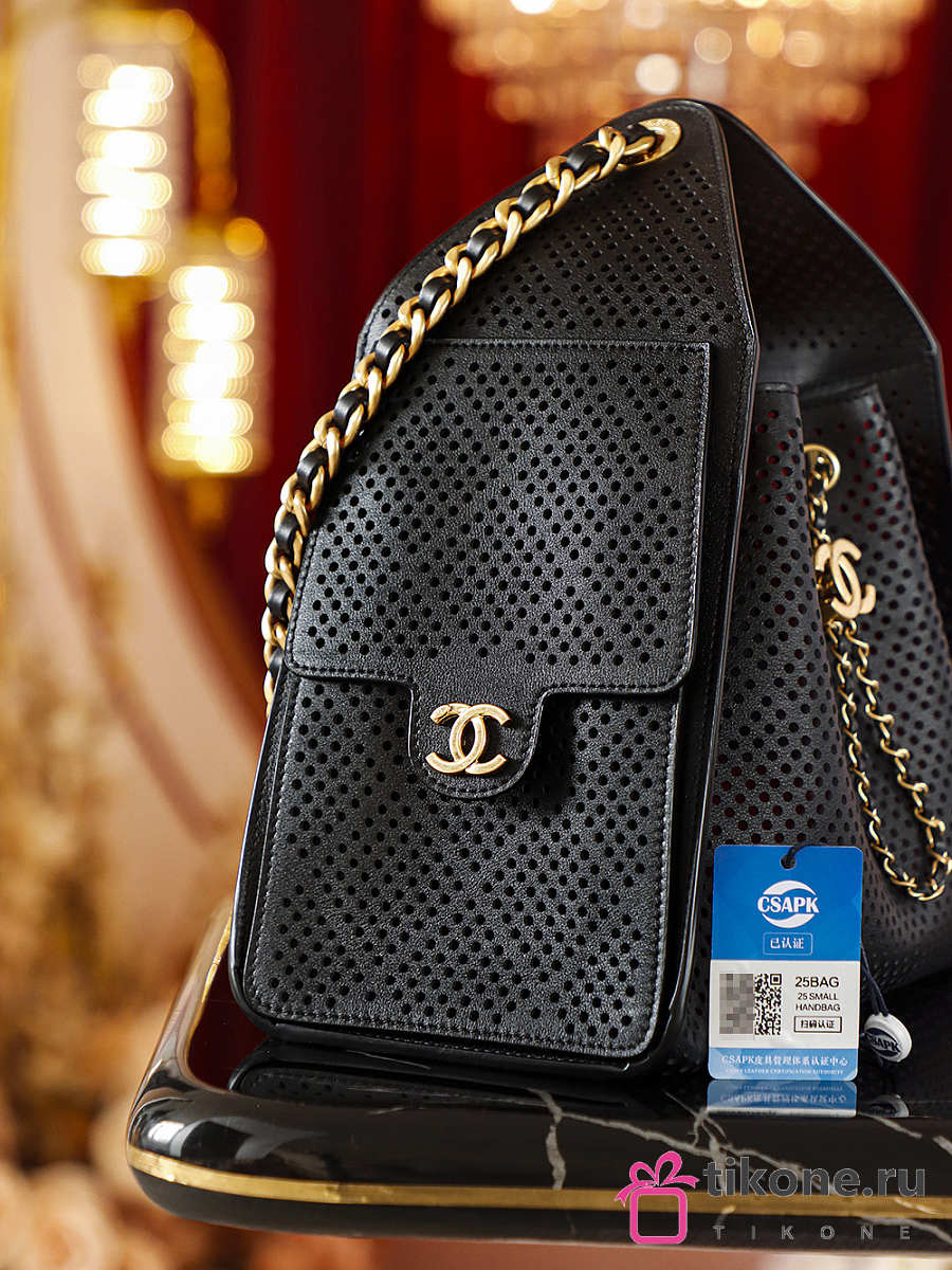 Chanel 25 Small Handbag Perforated Calfskin & Gold-Tone Metal Black - 30x26x14cm