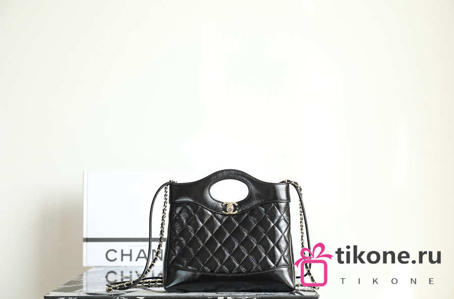 Chanel 31 Mini Shopping Bag Lambskin Gold Tone Metal Black - 23x22x5cm
