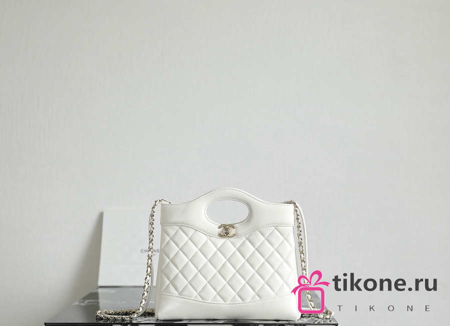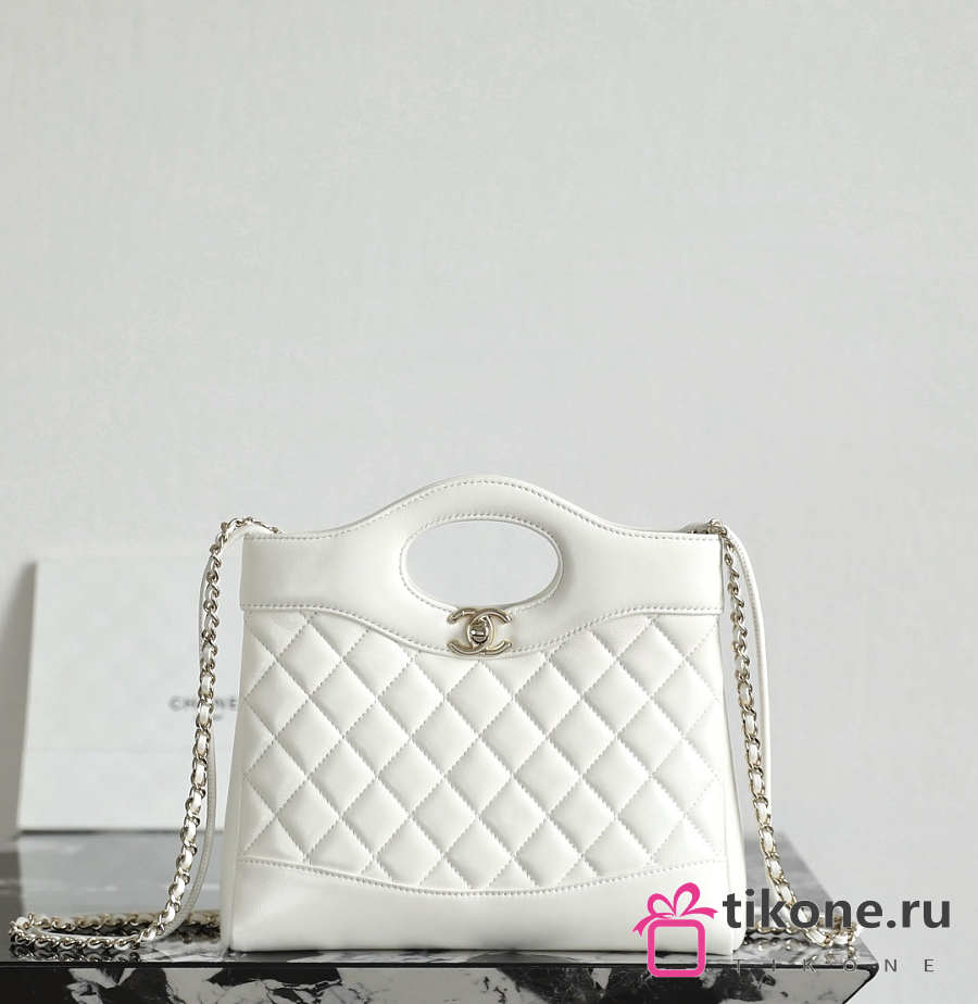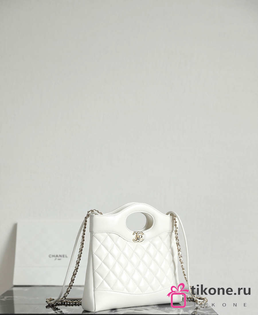 Chanel 31 Mini Shopping Bag Lambskin Gold Tone Metal White - 23x22x5cm