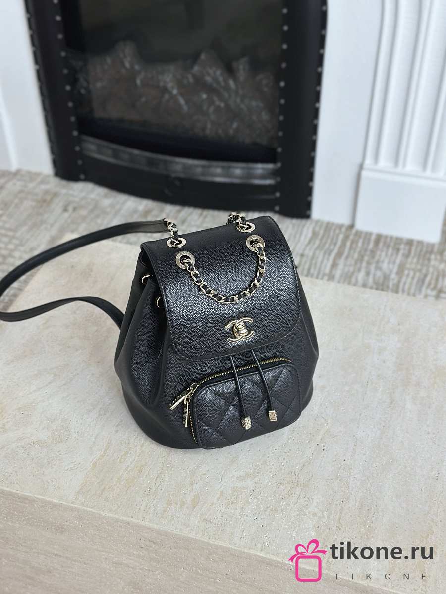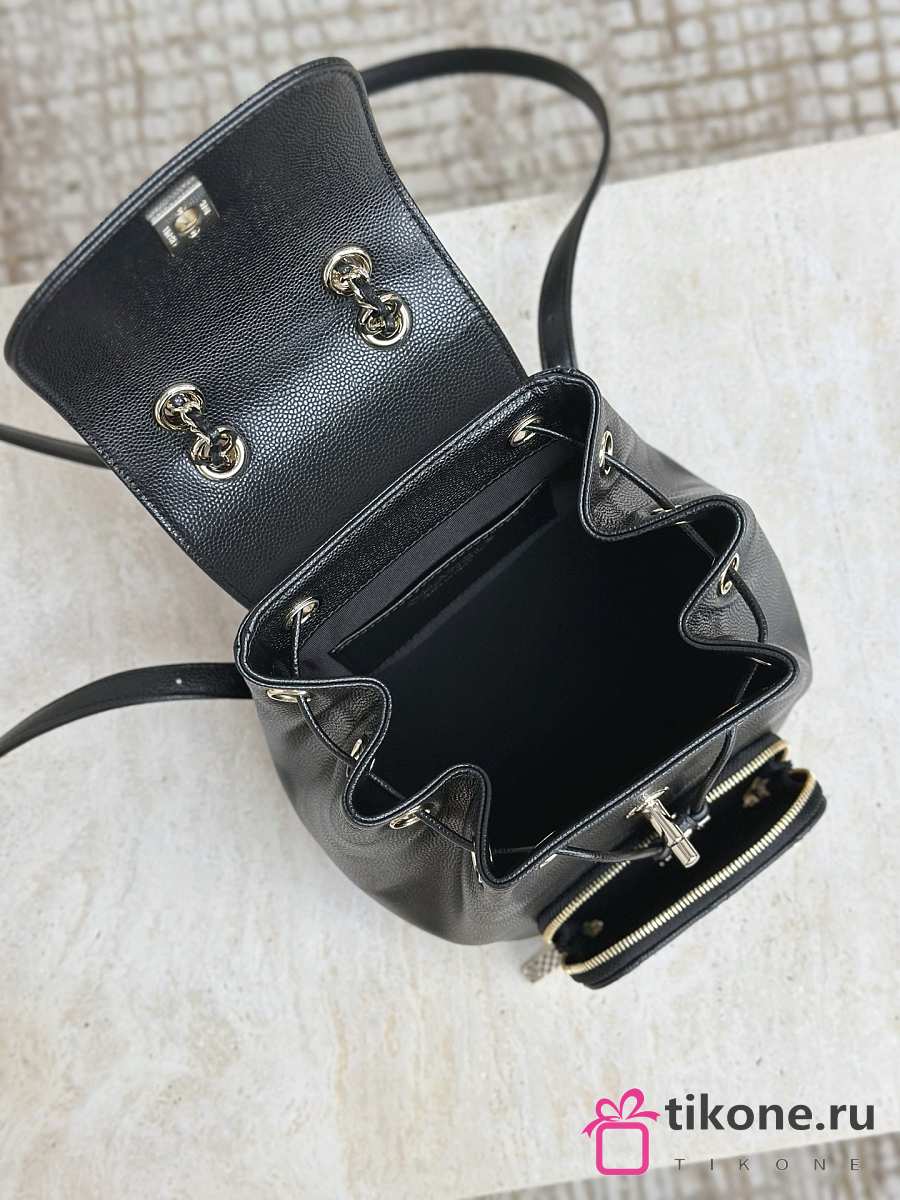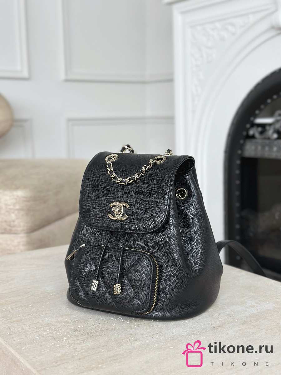 Chanel Backpack Grained Shiny Calfskin & Gold Tone Metal Black - 20x19x12cm