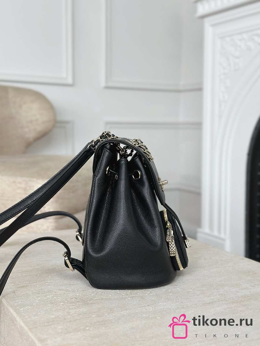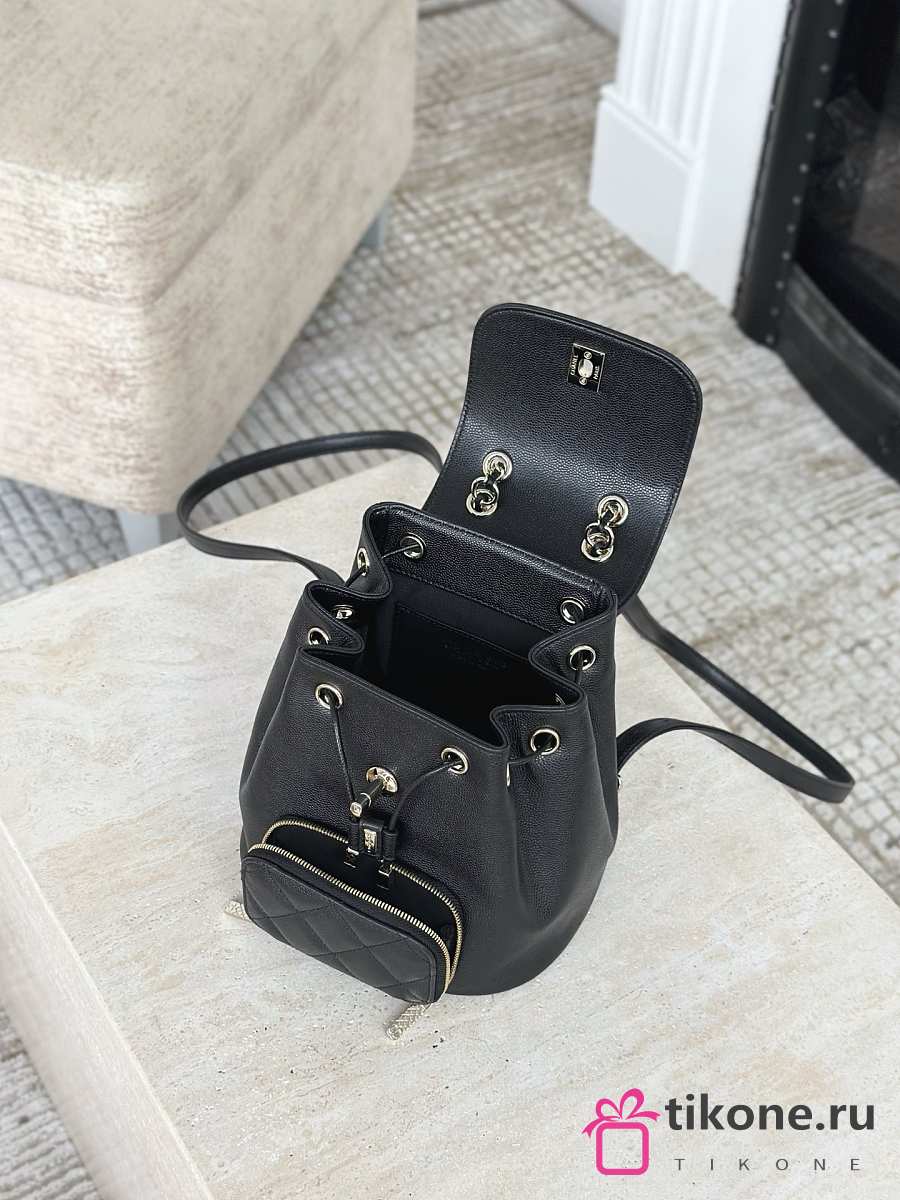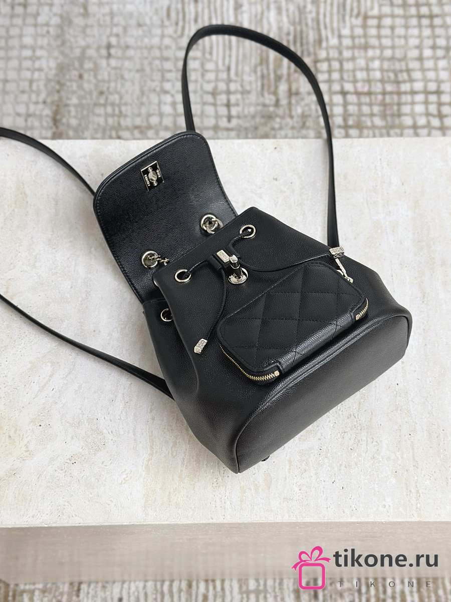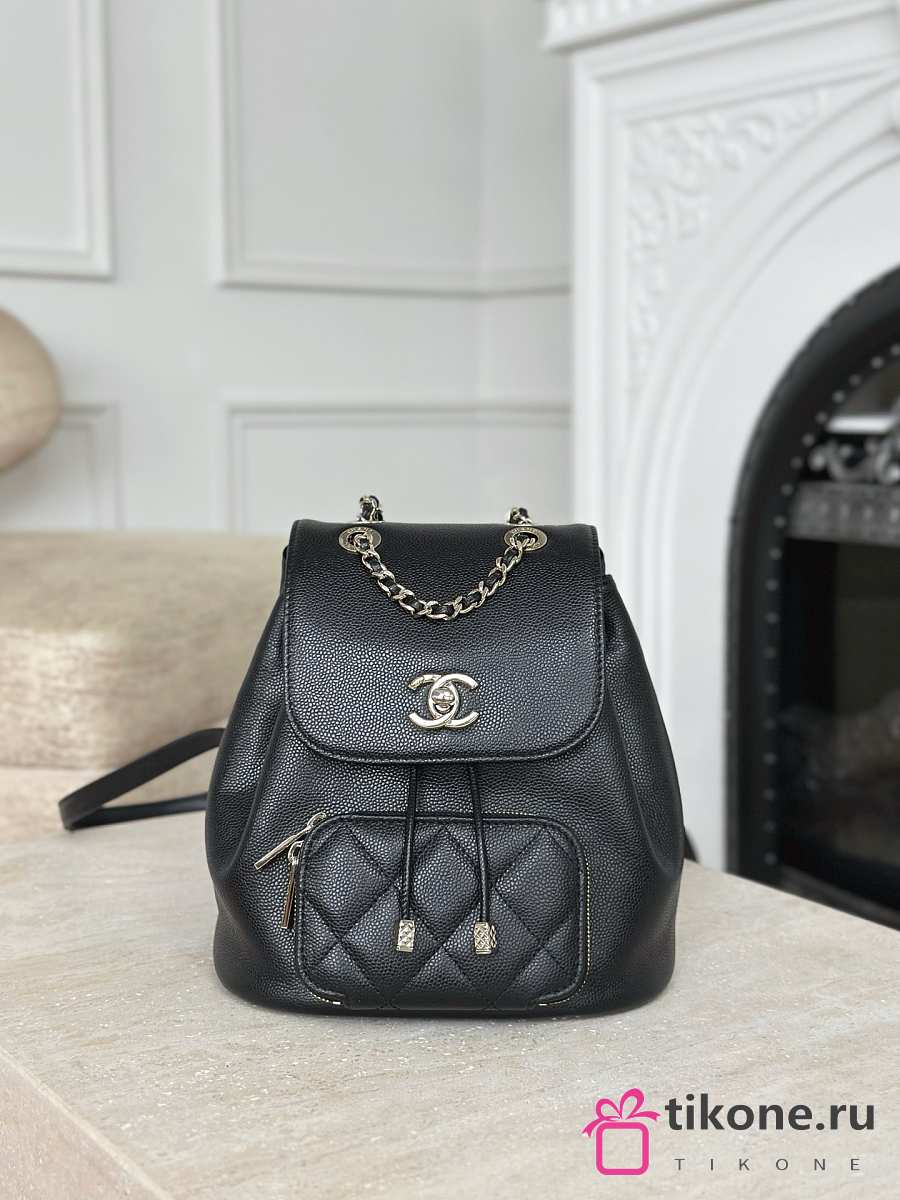 Chanel Backpack Grained Shiny Calfskin & Gold Tone Metal Black - 20x19x12cm