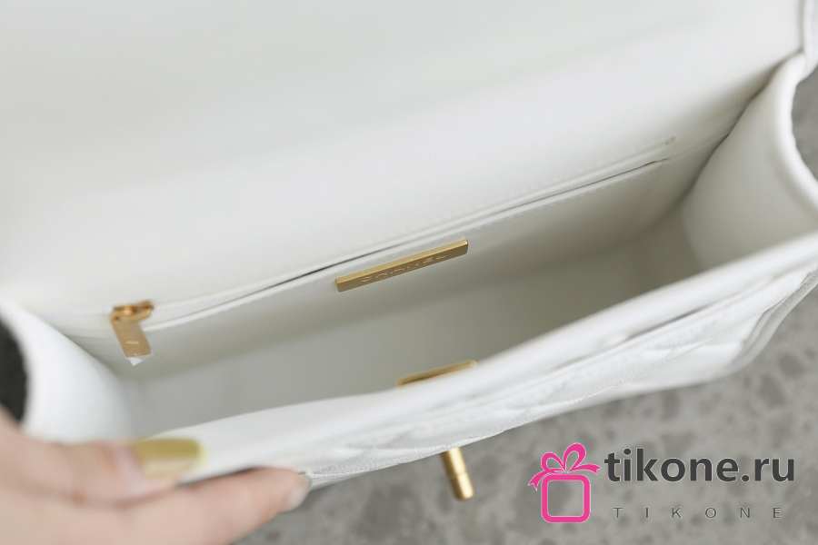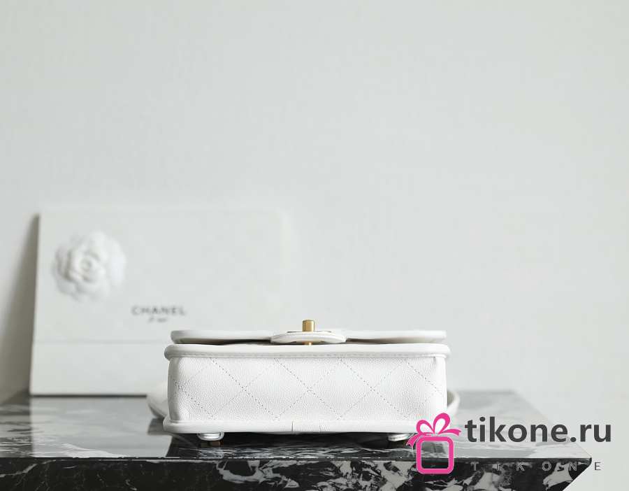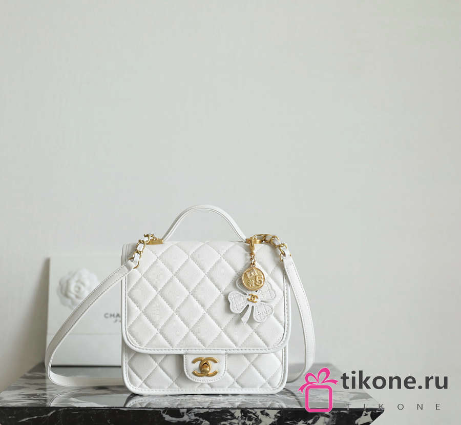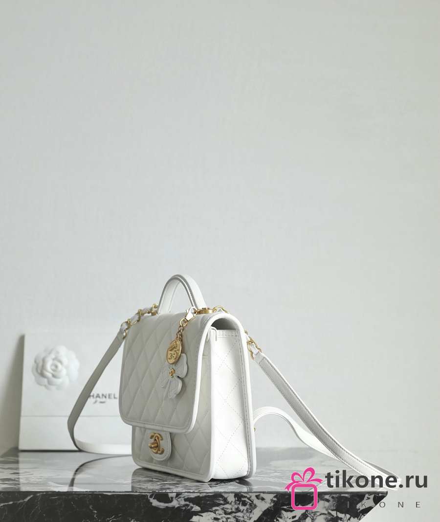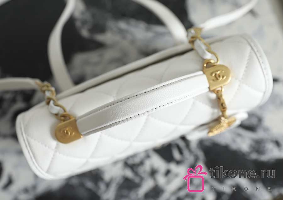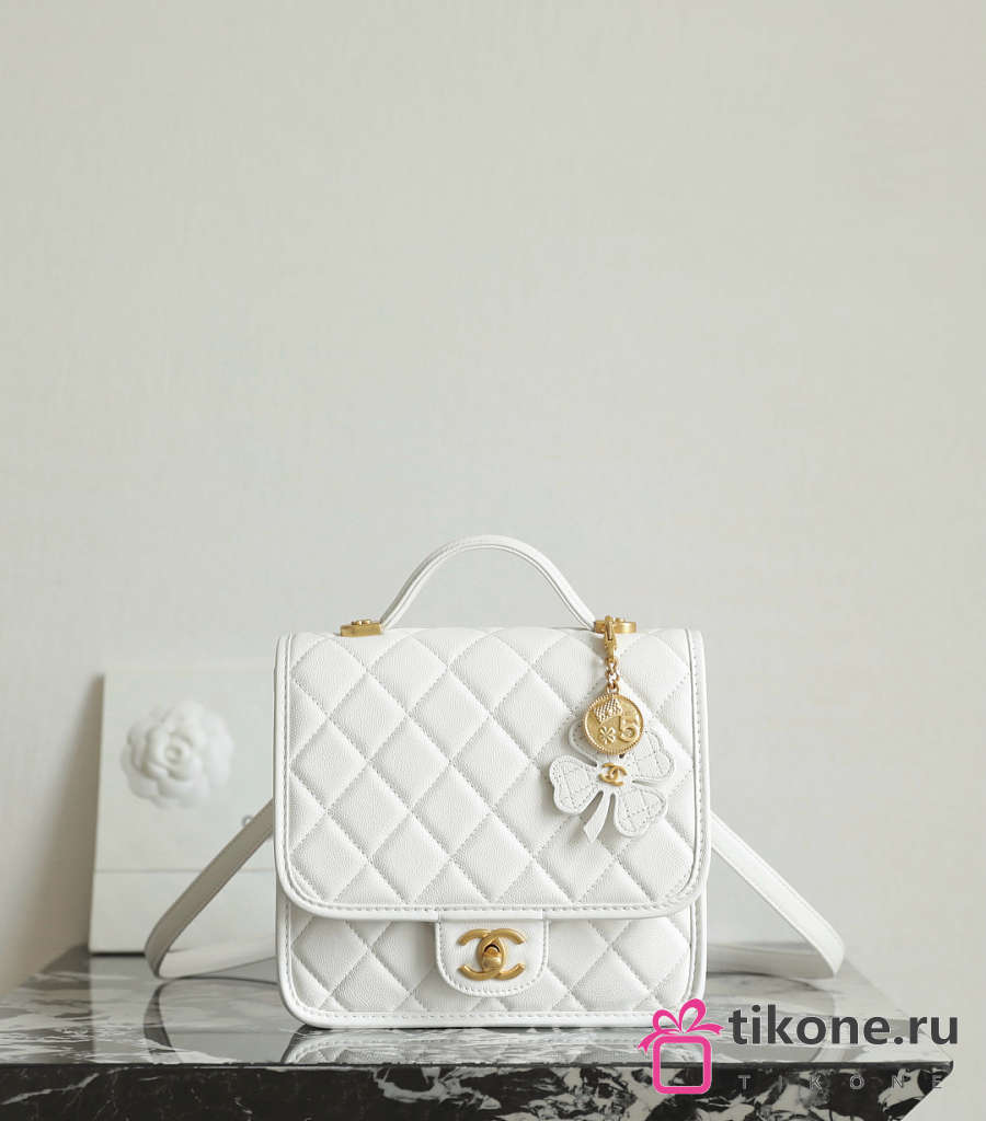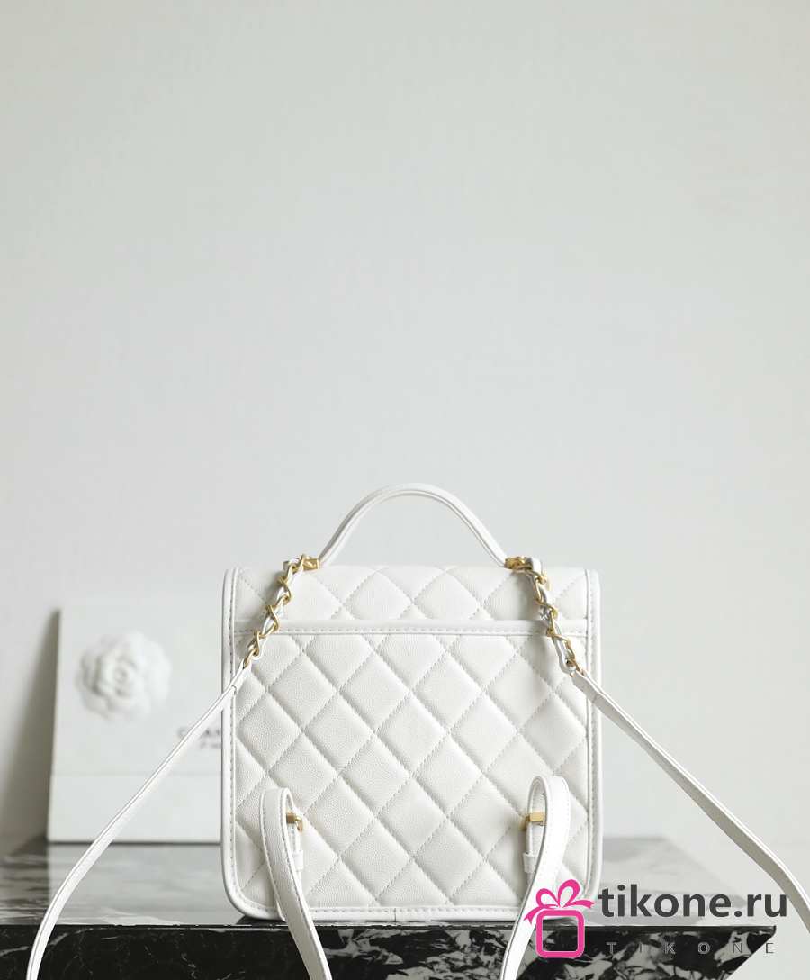 Chanel Backpack Grained Shiny Calfskin & Gold Tone Metal White - 19.5x22x7cm