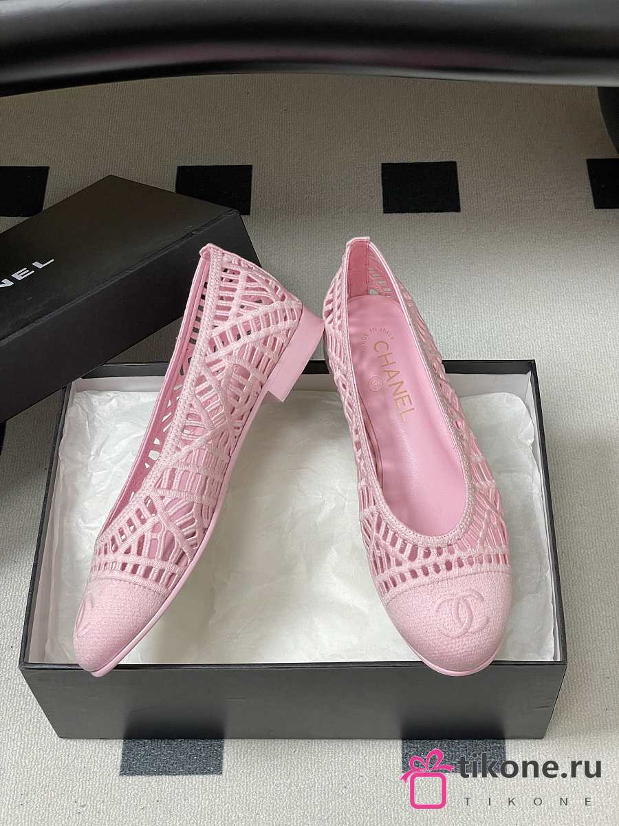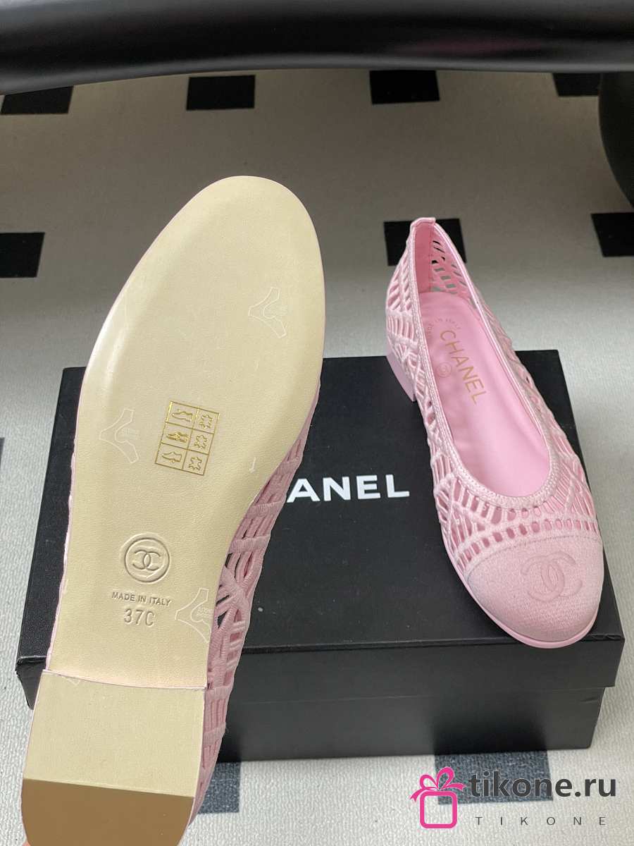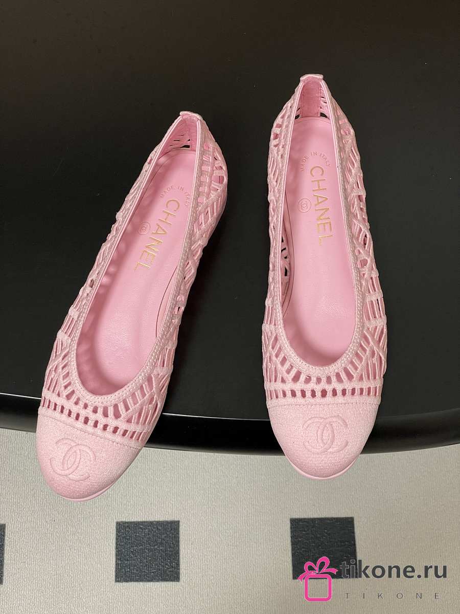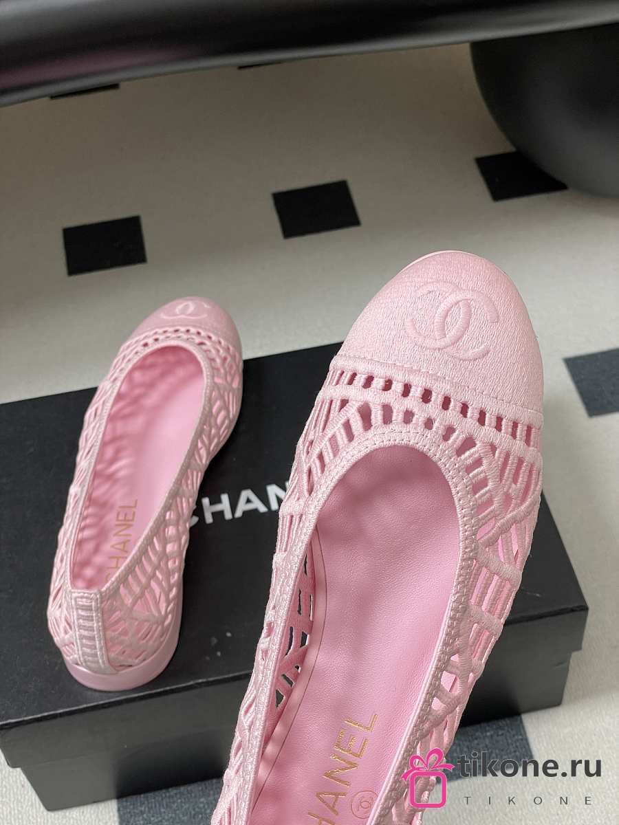 Chanel Ballet Flats Embroidered Cotton Pink