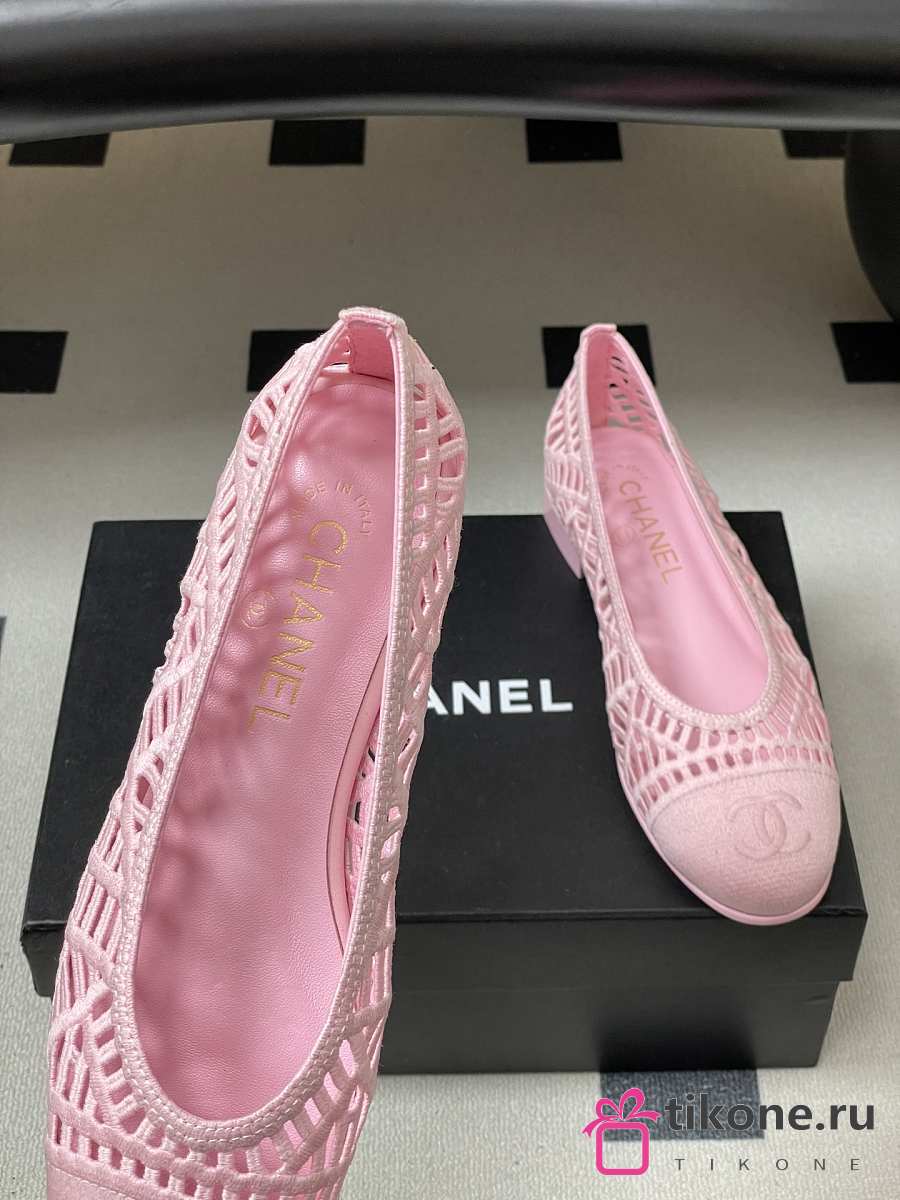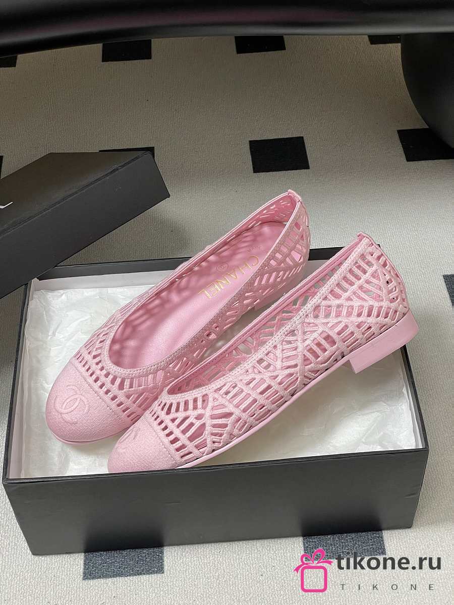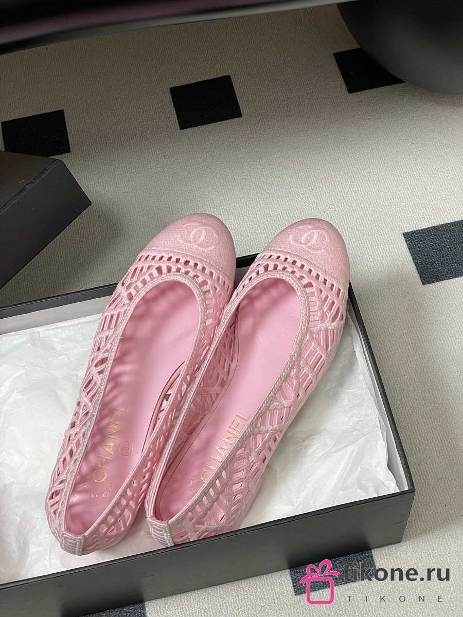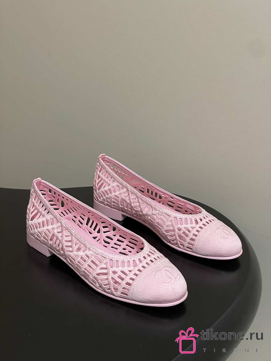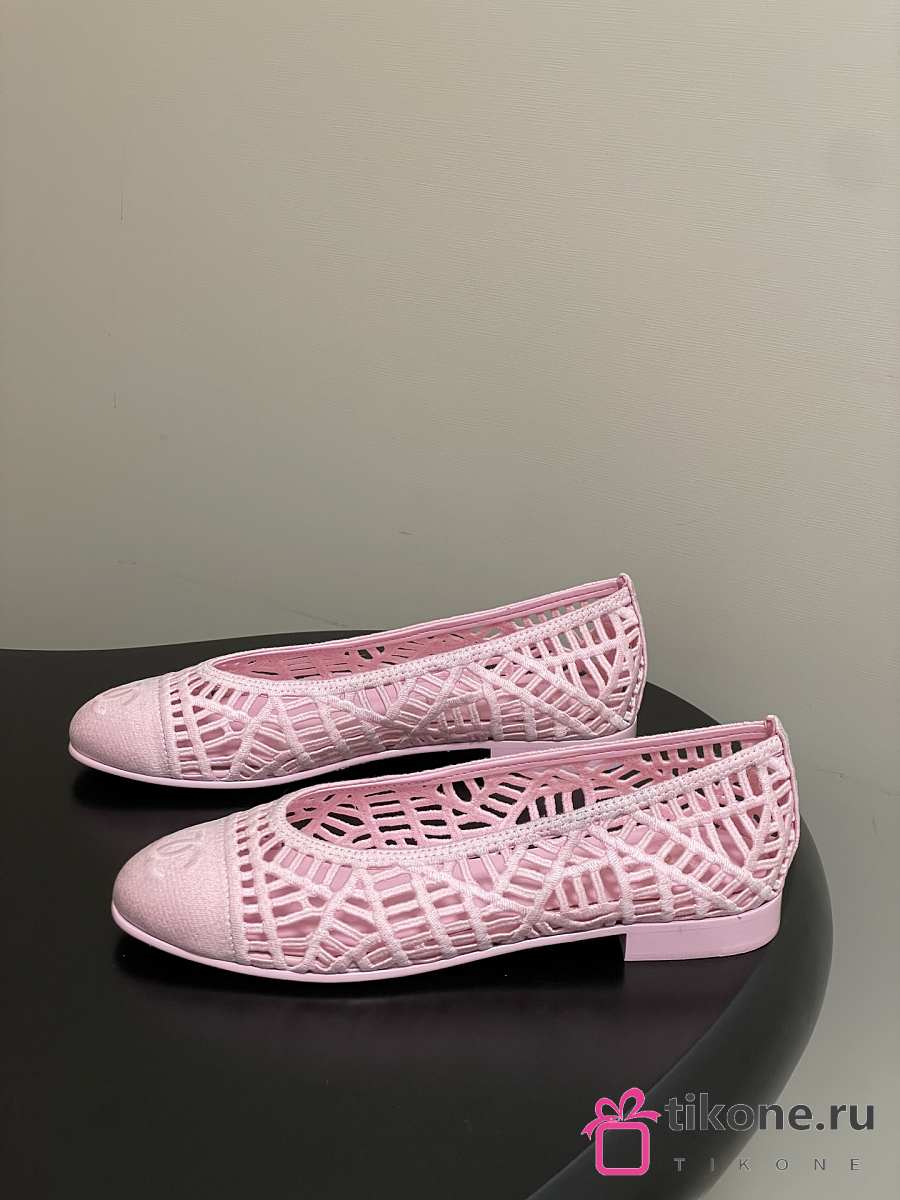 Chanel Ballet Flats Embroidered Cotton Pink