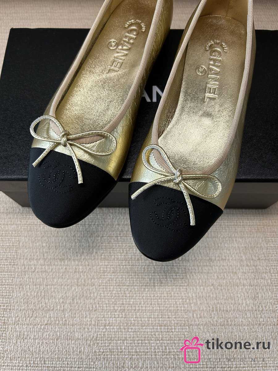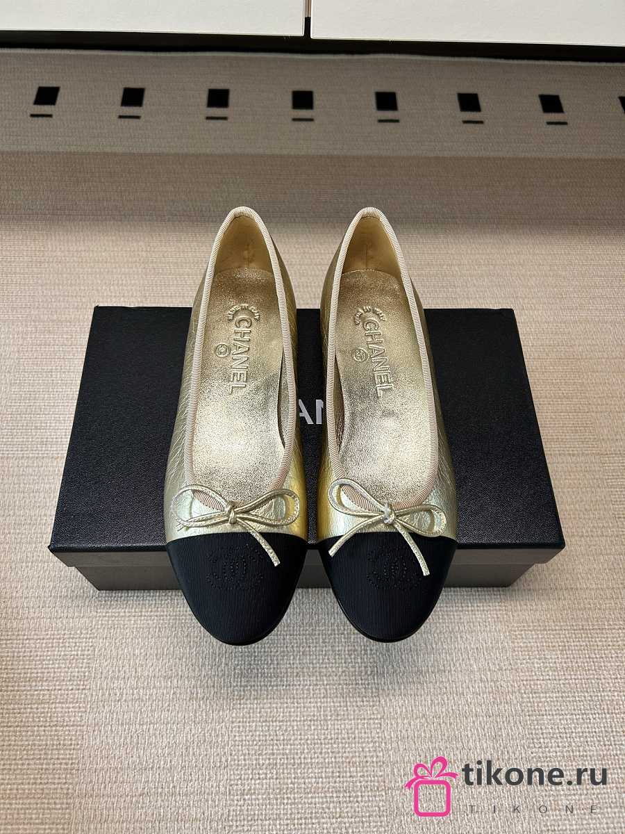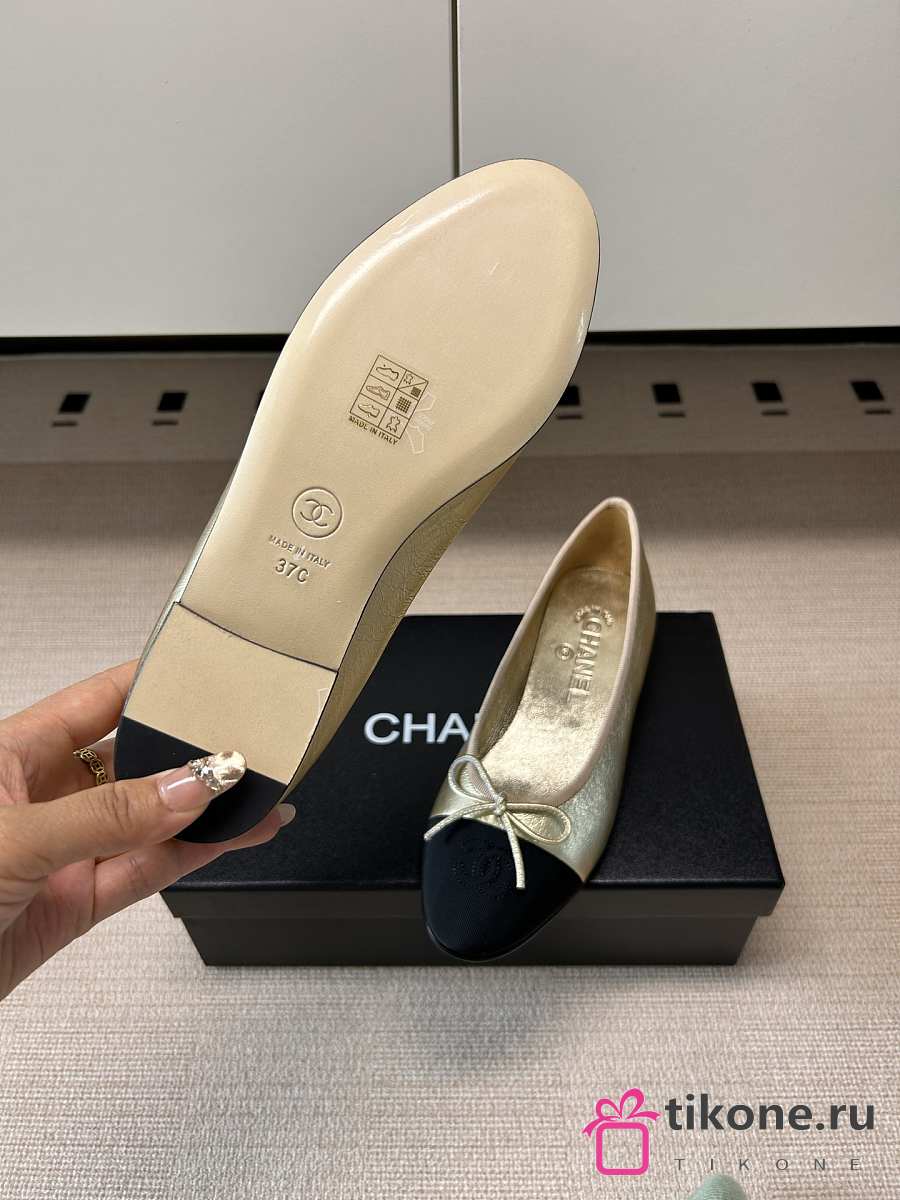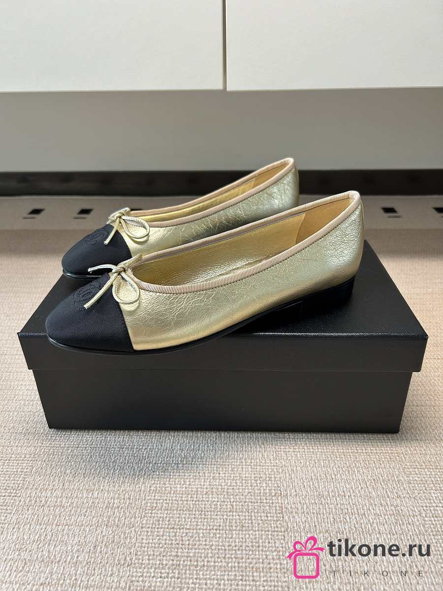 Chanel Ballet Flats Laminated Lambskin & Grosgrain Light Gold & Black G02819