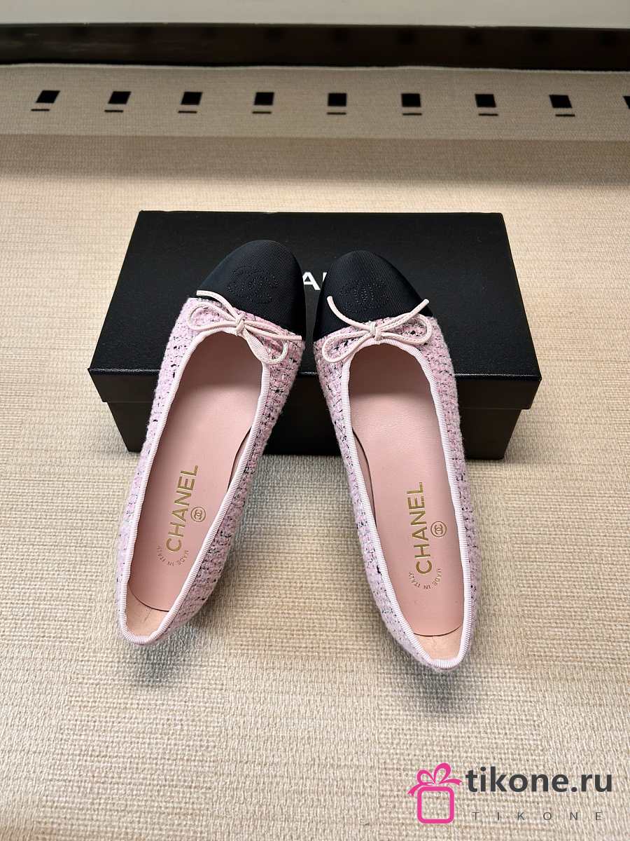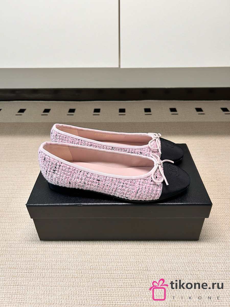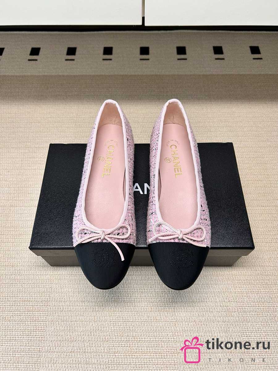 Chanel Ballet Flats Tweed & Grosgrain Pink Black & White G02819