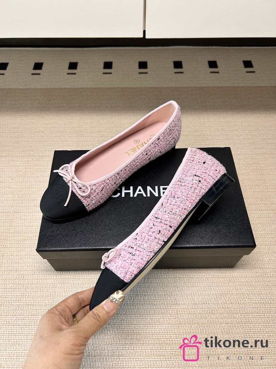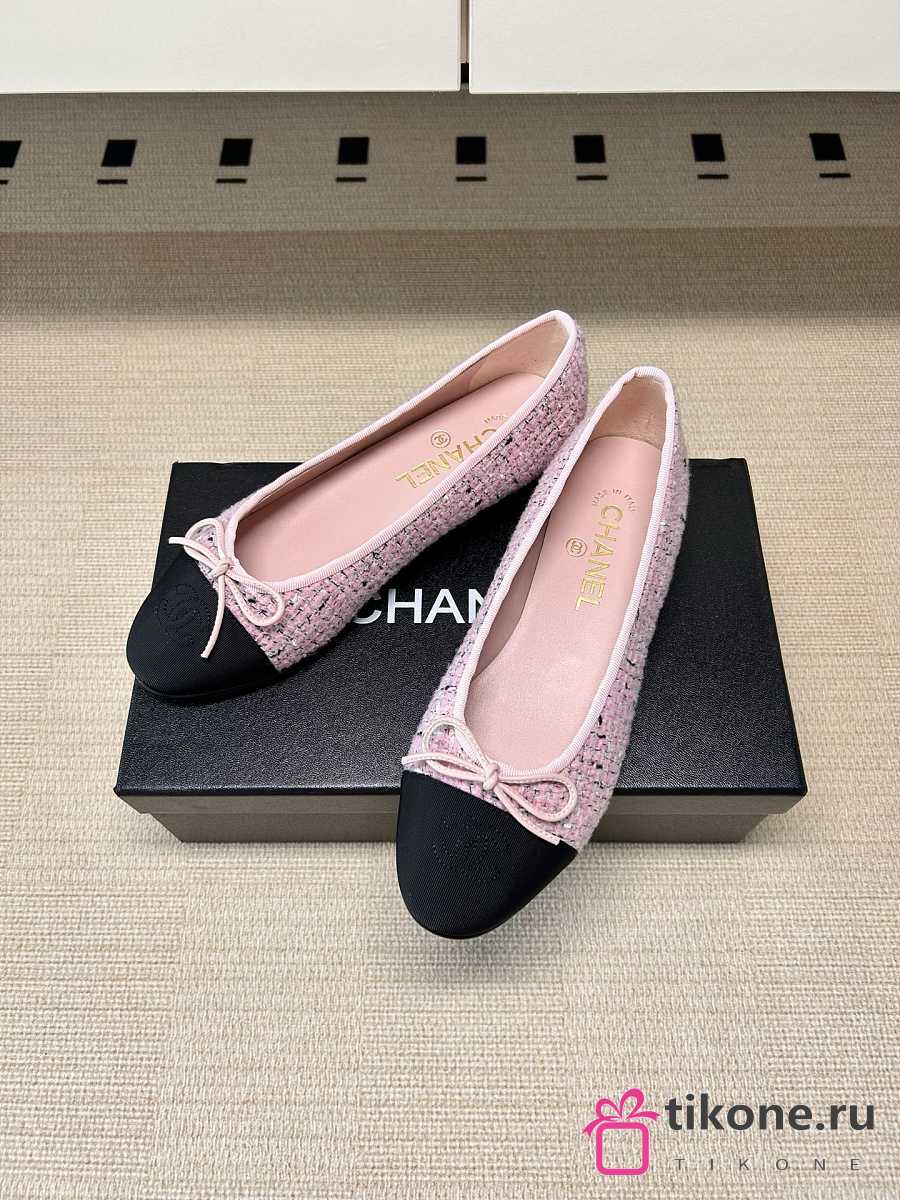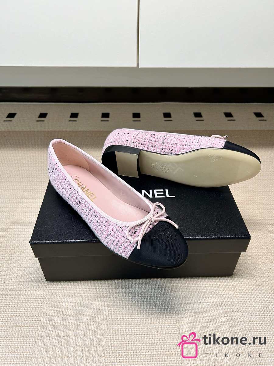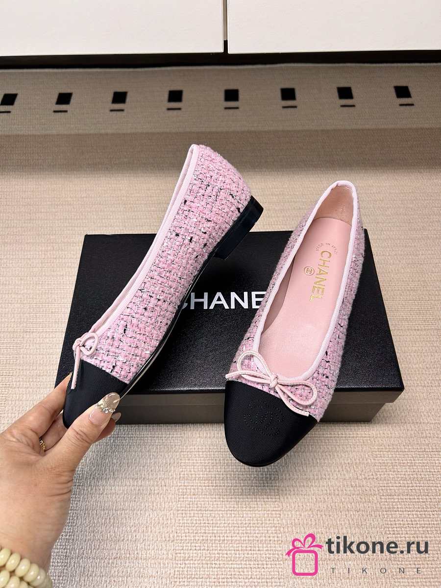 Chanel Ballet Flats Tweed & Grosgrain Pink Black & White G02819