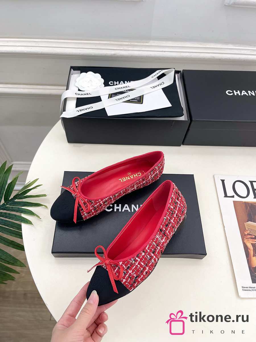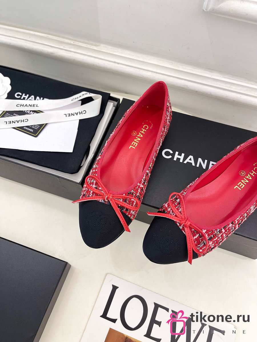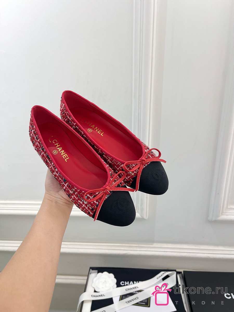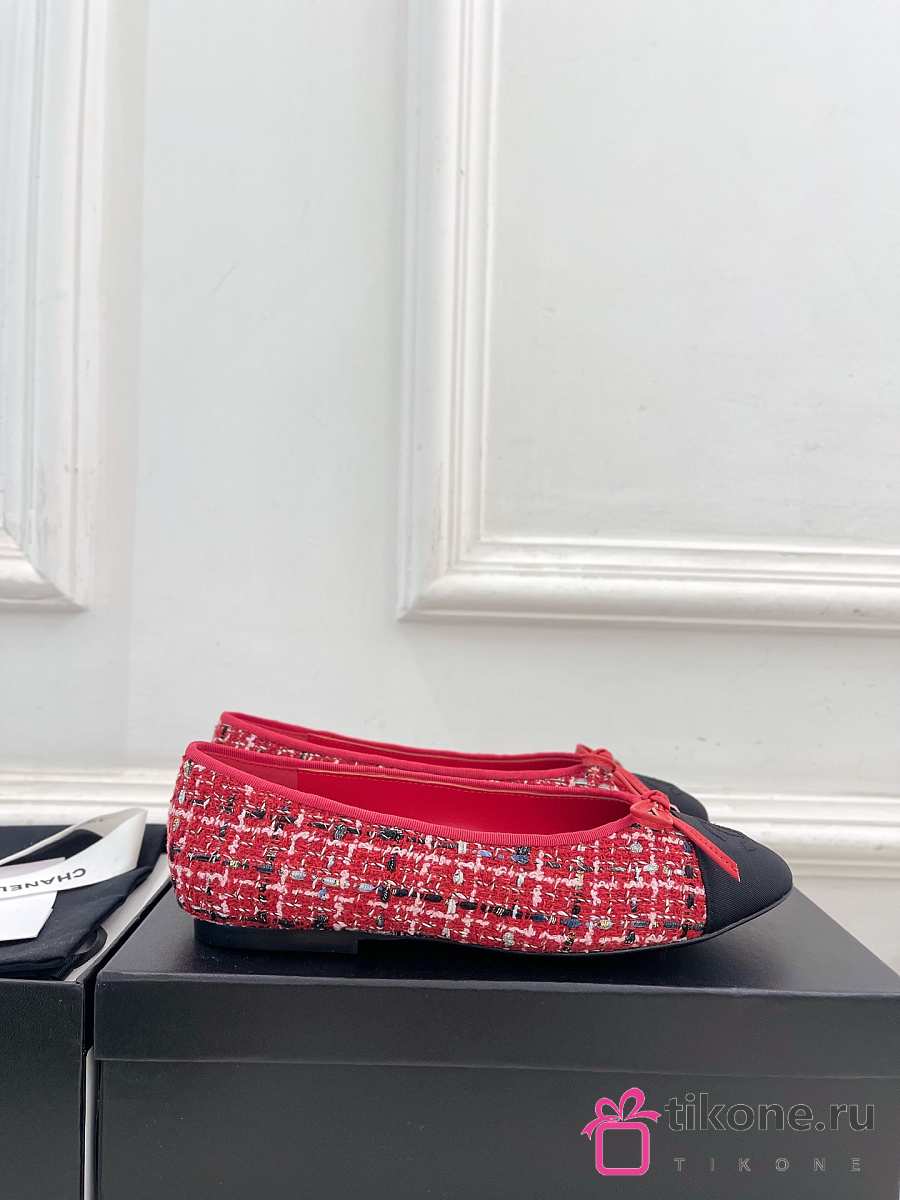 Chanel Ballet Flats Tweed & Grosgrain Red Black & White