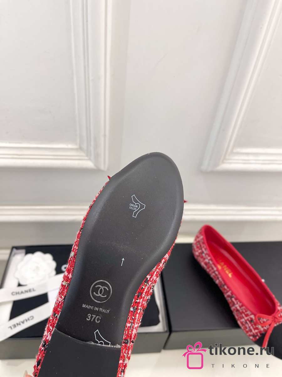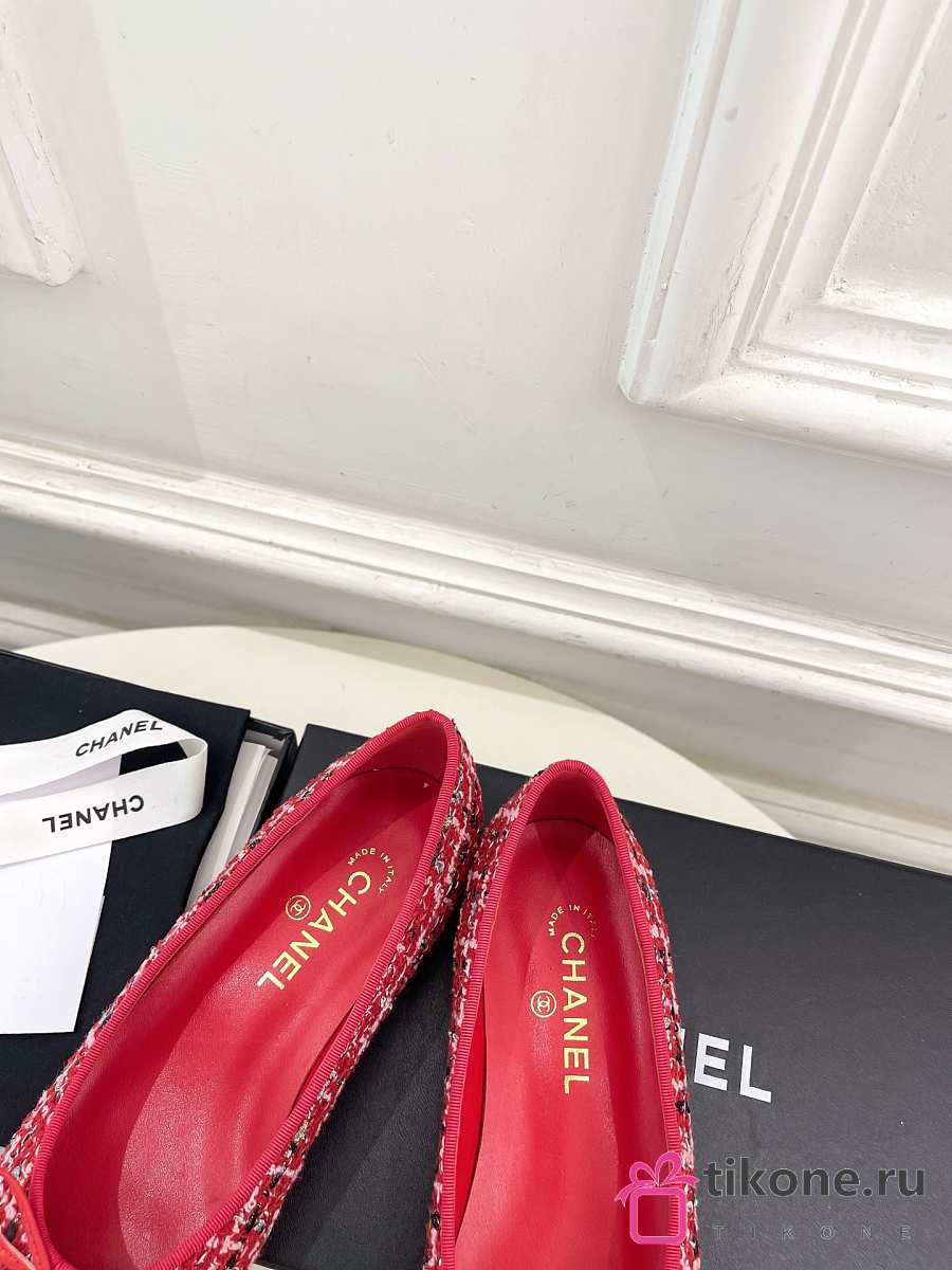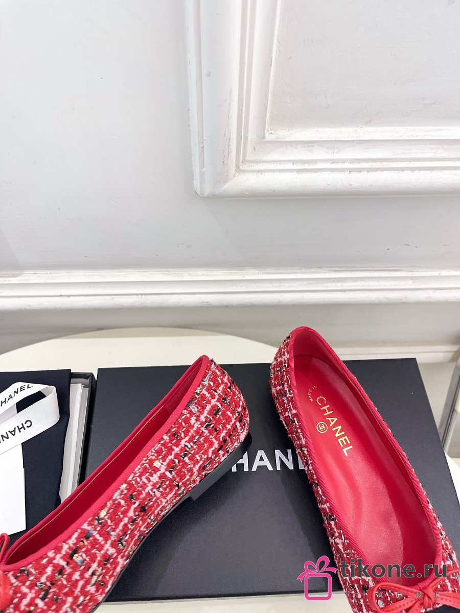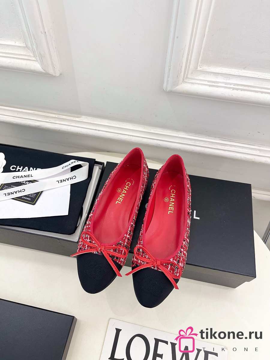 Chanel Ballet Flats Tweed & Grosgrain Red Black & White