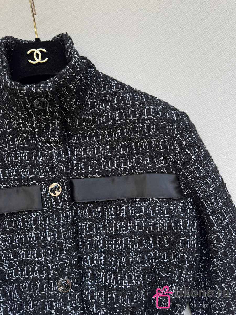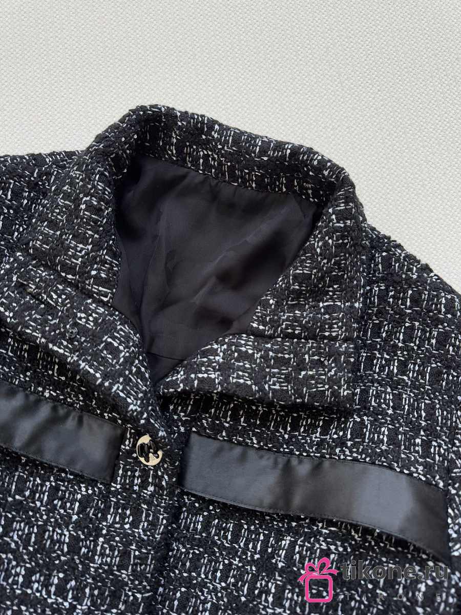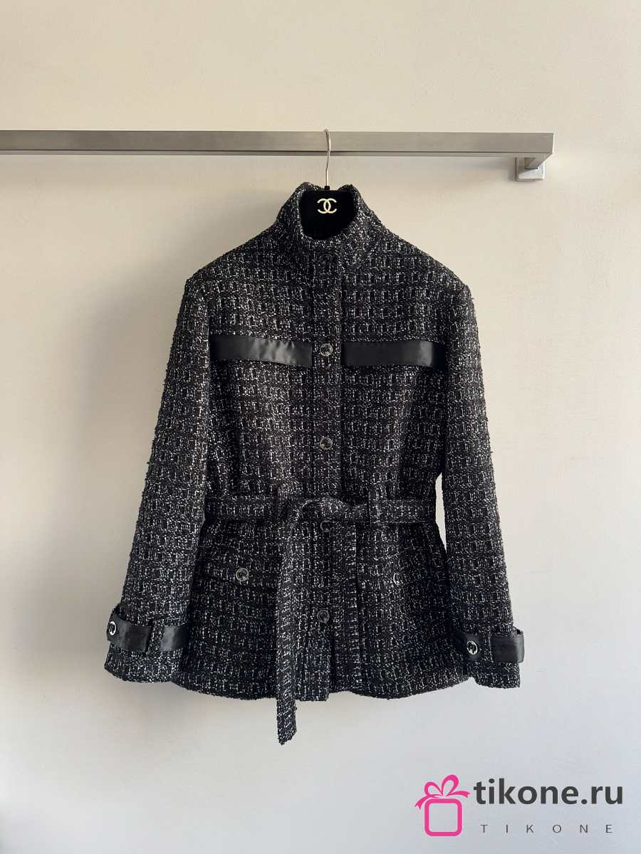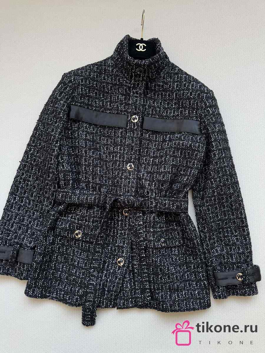 Chanel Belted Jacket Cashmere Tweed Black & White