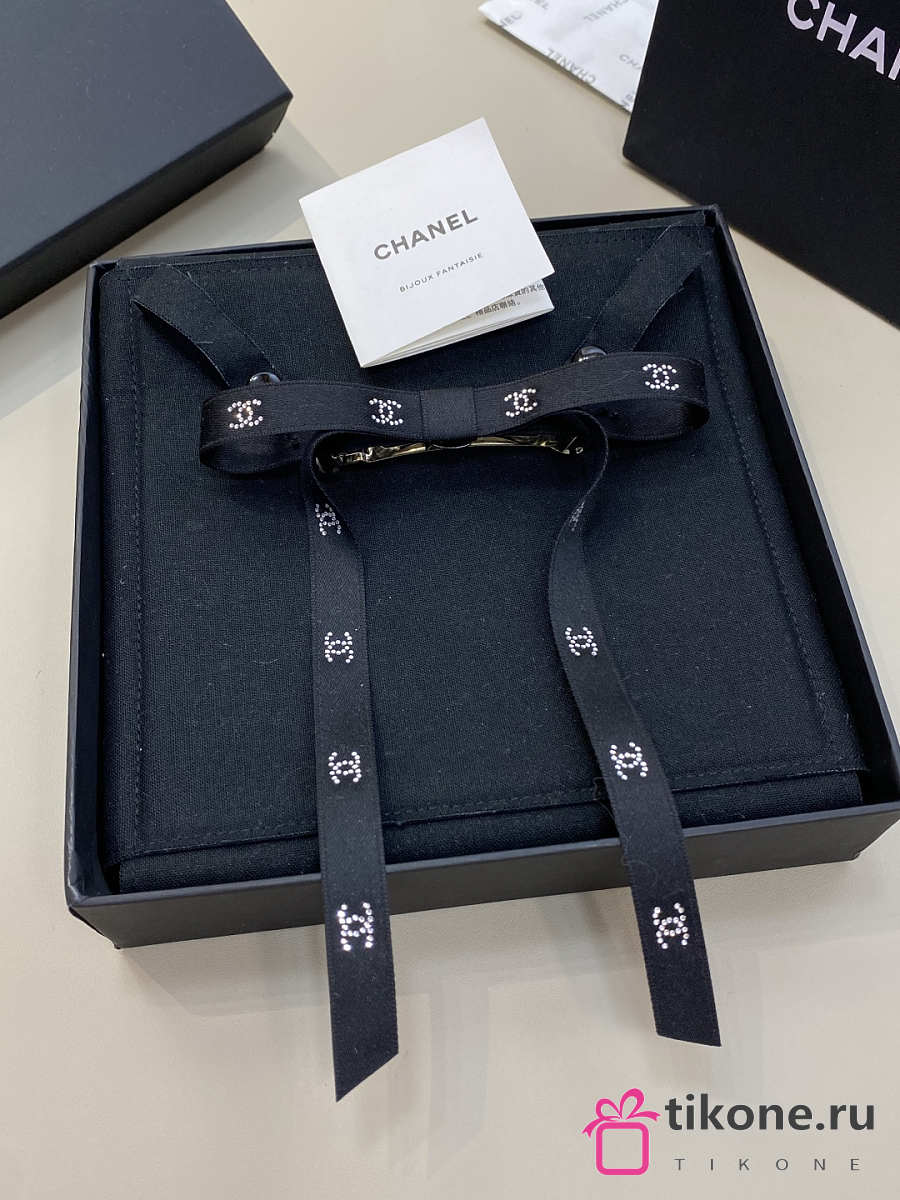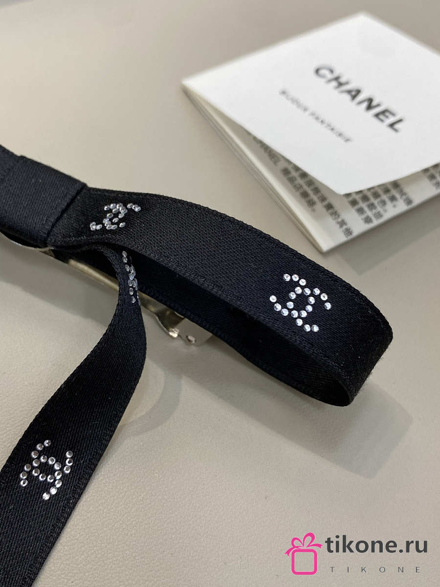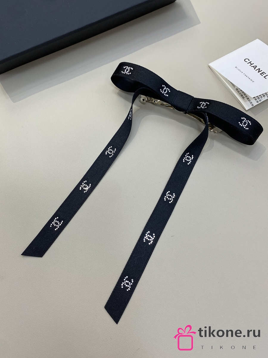 Chanel Bow Barrette Mixed Fibers Silk Satin & Strass Black & Crystal