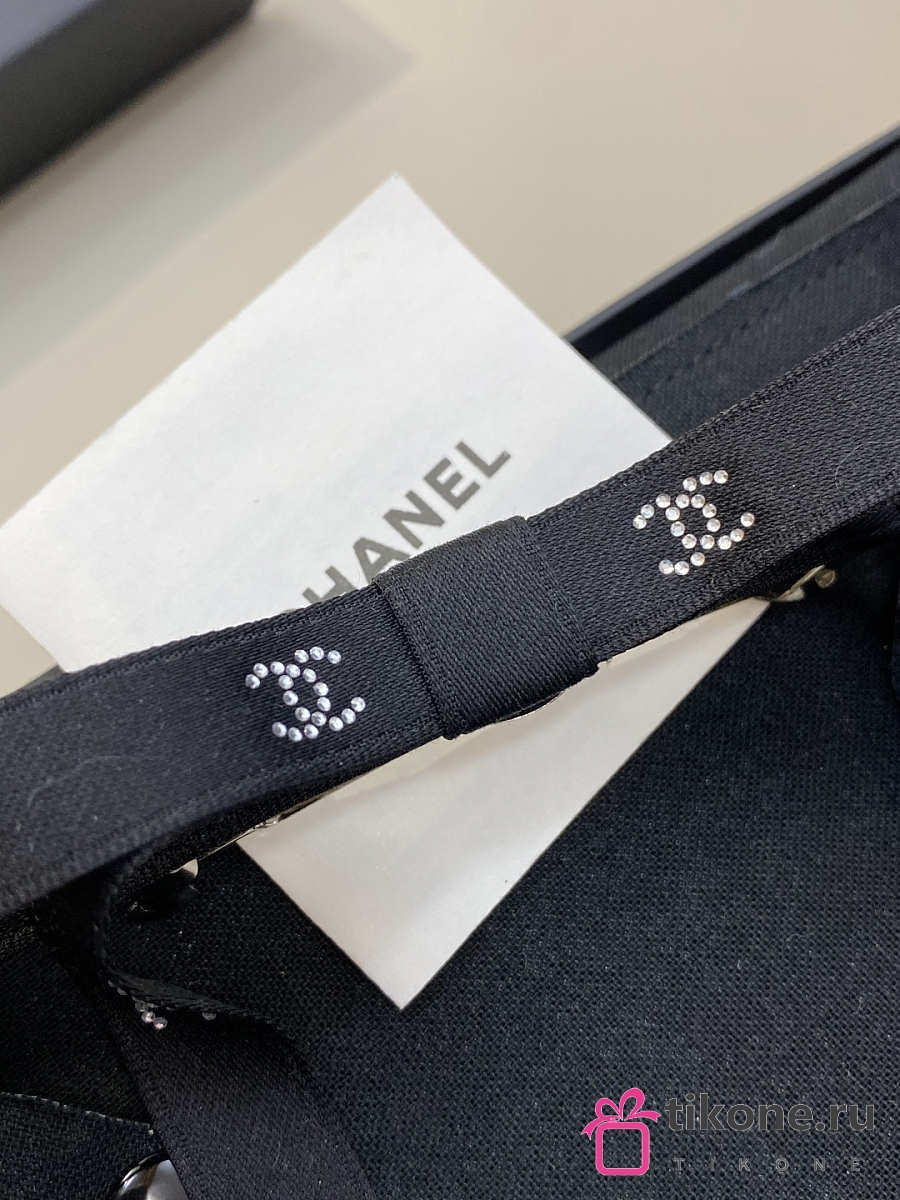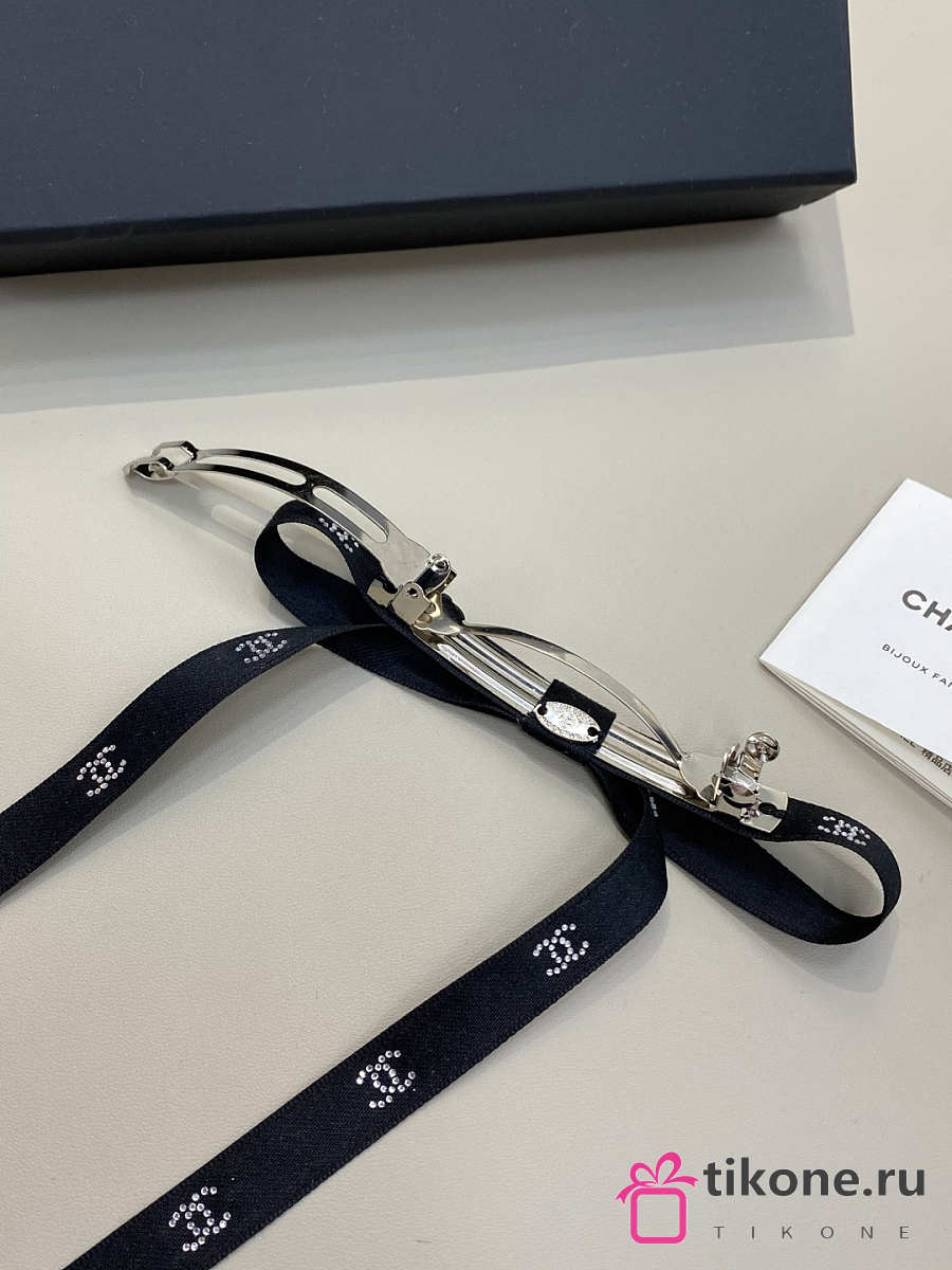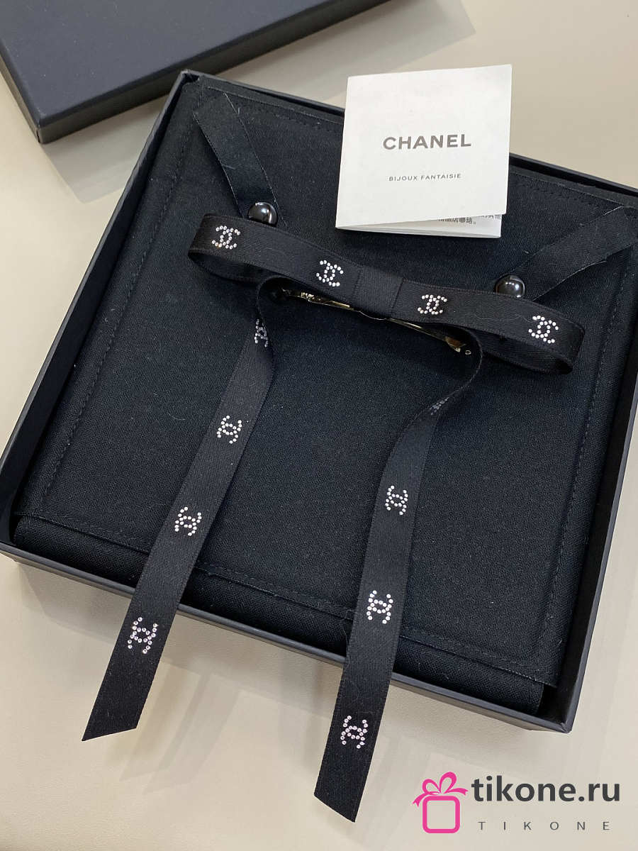 Chanel Bow Barrette Mixed Fibers Silk Satin & Strass Black & Crystal