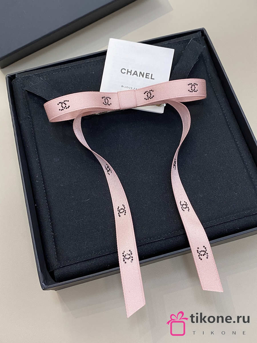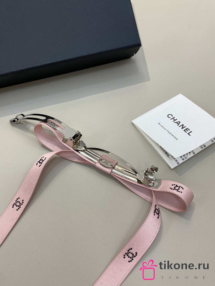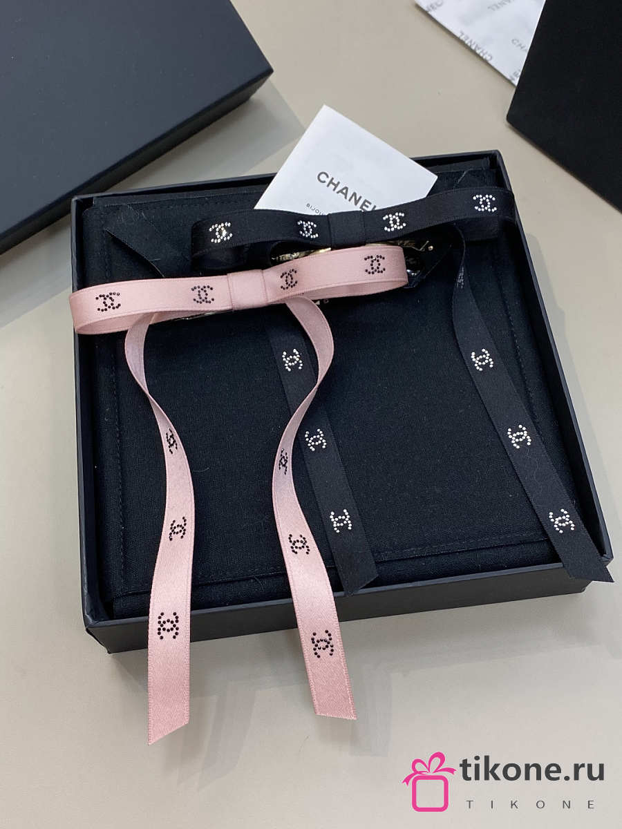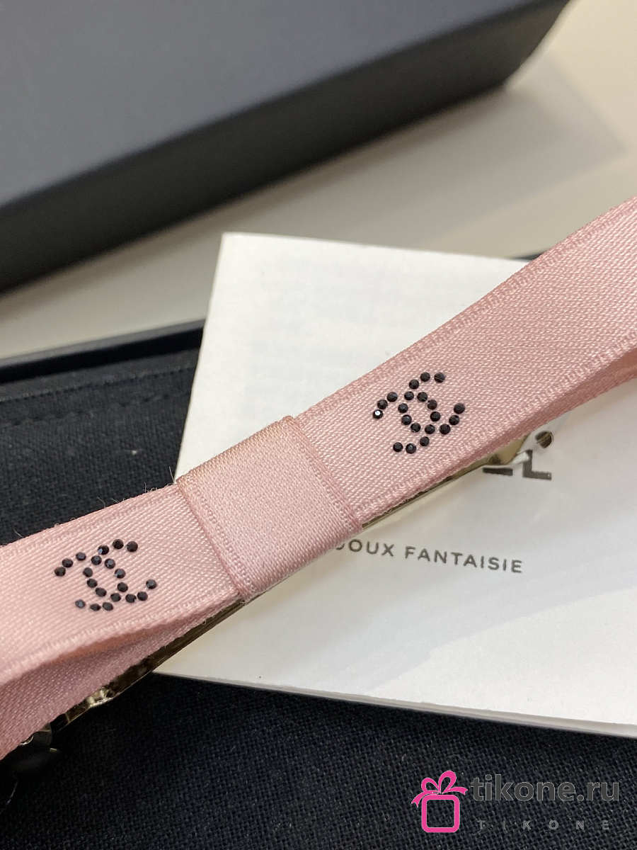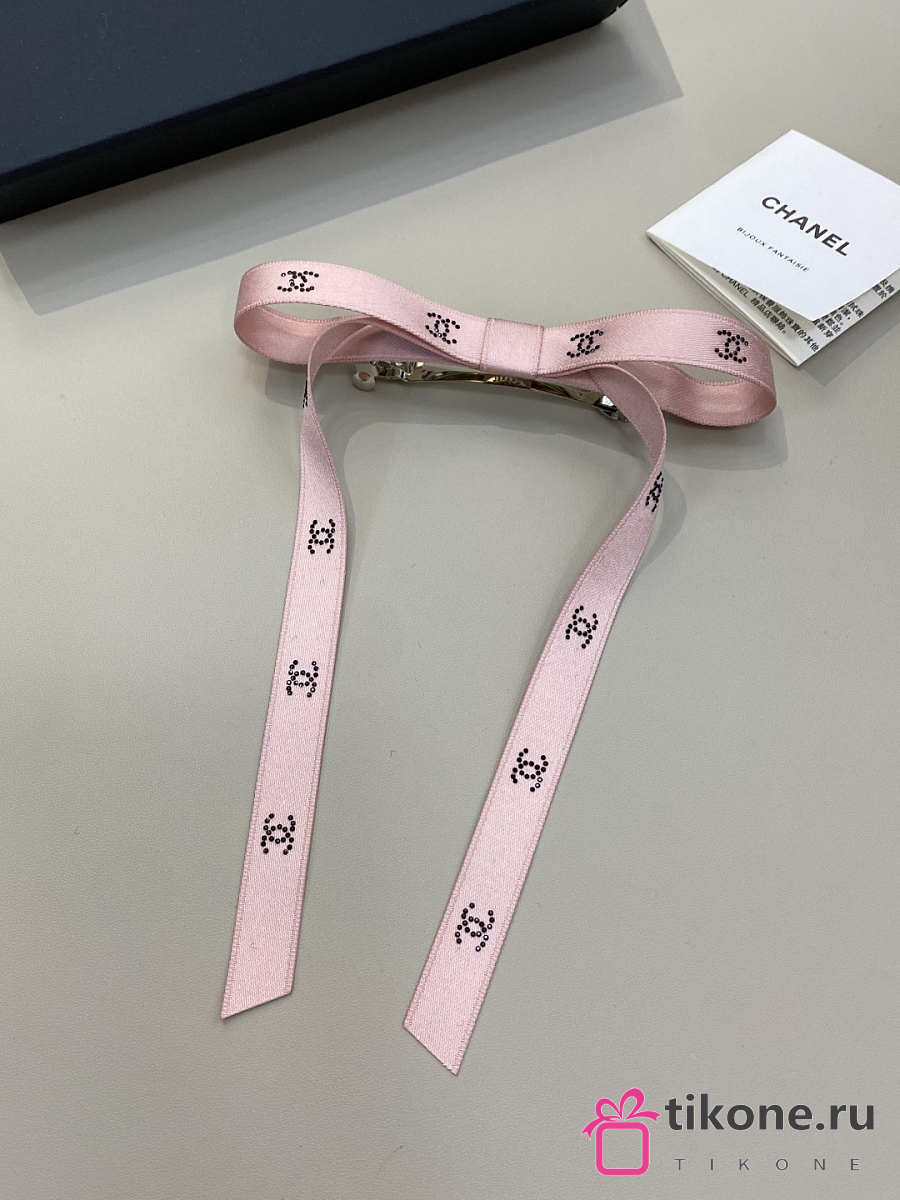 Chanel Bow Barrette Mixed Fibers Silk Satin & Strass Pink & Black