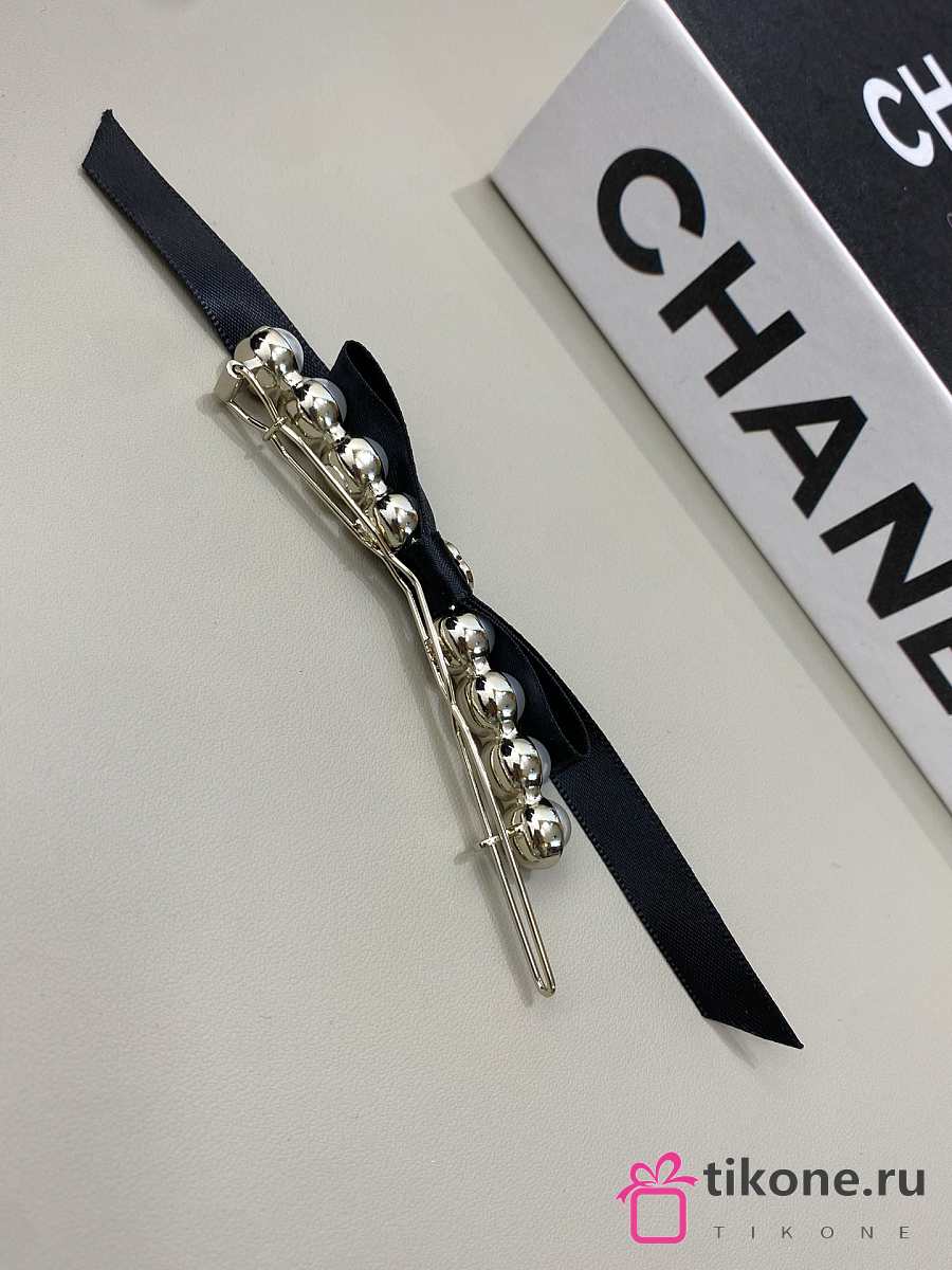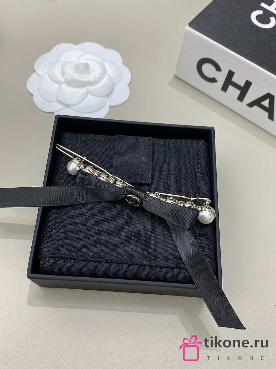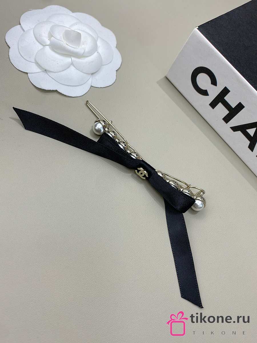Chanel Bow Hair Clips Faux Pearl Metal & Satin Pearl White Gold & Black