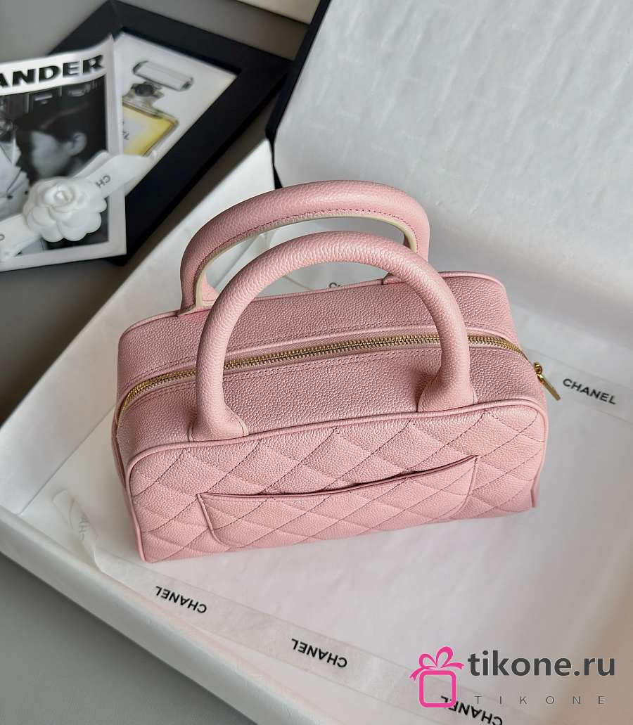 Chanel Bowling Bag Caviar & Gold Metal Pink - 27x16x9cm