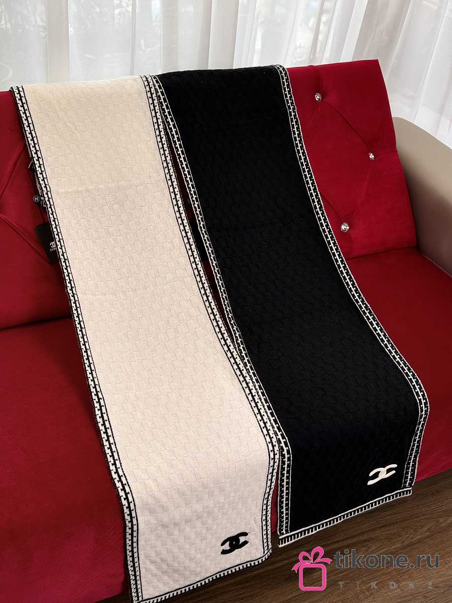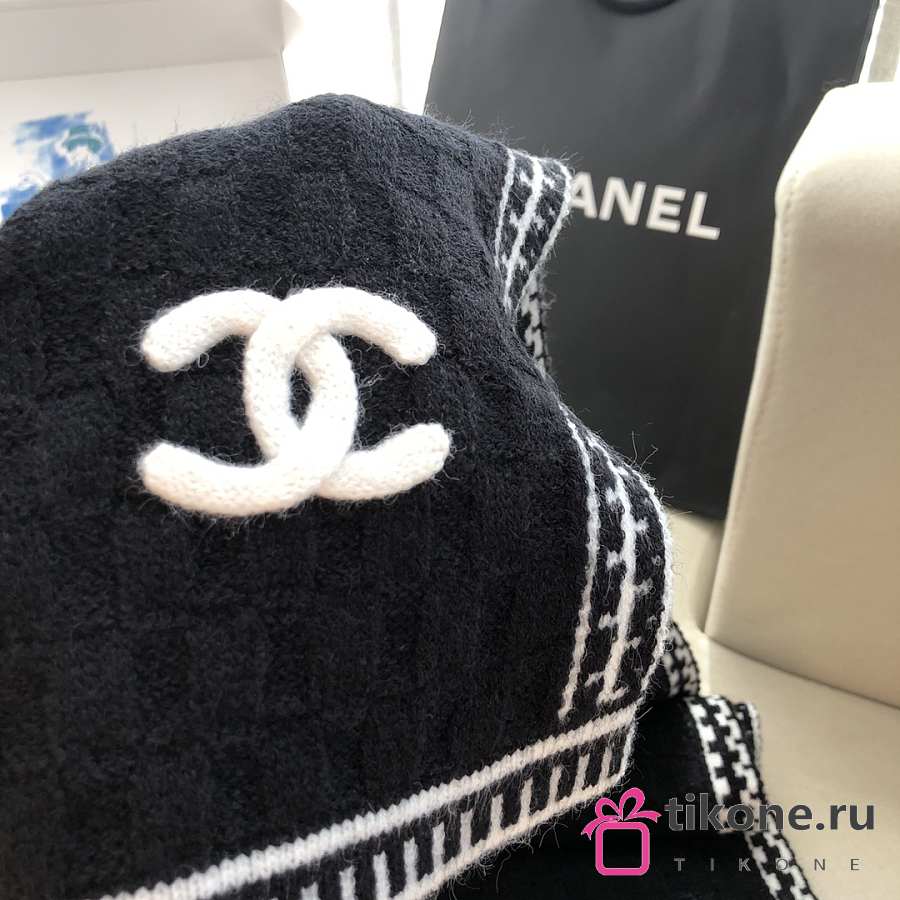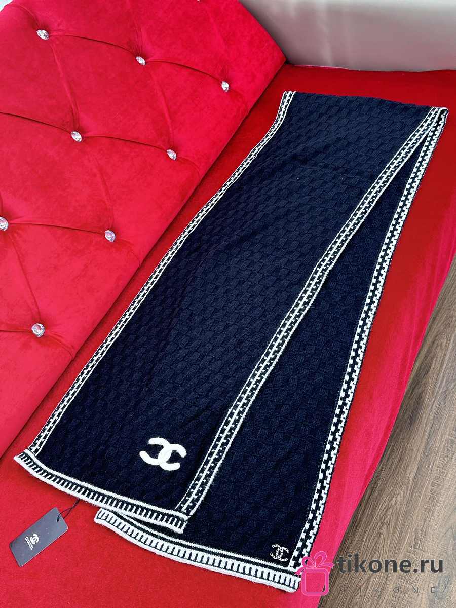 Chanel Cashmere Silk CC Knitted Scarf Black - 35x195cm